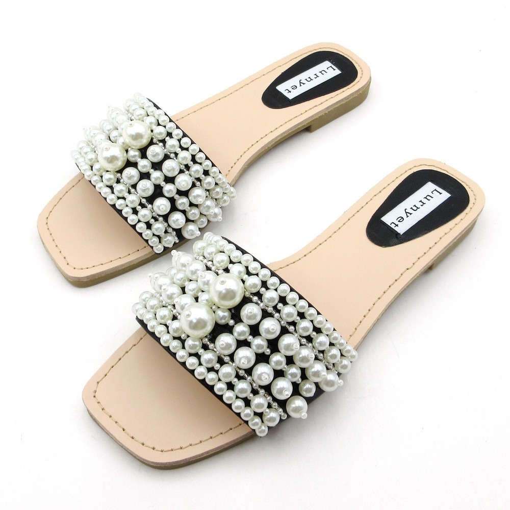 Description: Lurnyet Women's Pearl Embellished One Band Flat Sandal is a stylish and comfortable slip-on sandal designed for casual outdoor wear. The sandal features a synthetic upper material with pearl accents on the H-band. It has a flat heel height of under 1 inch, making it suitable for all-day wear. Perfect for women in US shoe sizes 6-10 looking for a fashionable yet practical footwear option. Payment Information: We Accept PayPal We Accept Credit Card via PayPal Shipping Information: We provide Same Day FREE SHIPPING domestically within the U.S.A USPS Priority (2-3 business days) & USPS Priority International (14 days with tracking) We reserve the right to charge additional shipping fee for reship items due to wrong shipping address provided during checkout. All orders before 5PM EST will ship out same day!, Monday - Friday Ships Same Day with TRACKING! Refund & Return Policy: We offer a 30 day return policy on all items purchased from us. Please contact us within 30 days after receipt of the item for a return. Do not ship the item back to us without contacting us first. Return shipping is responsibility of buyer.