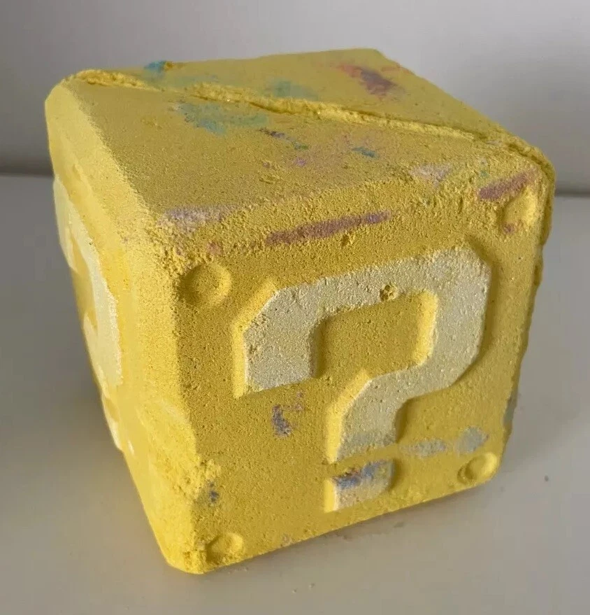 Lush x The Super Mario Bros Movie Mystery Question Block Bath Bomb + Body Soap.