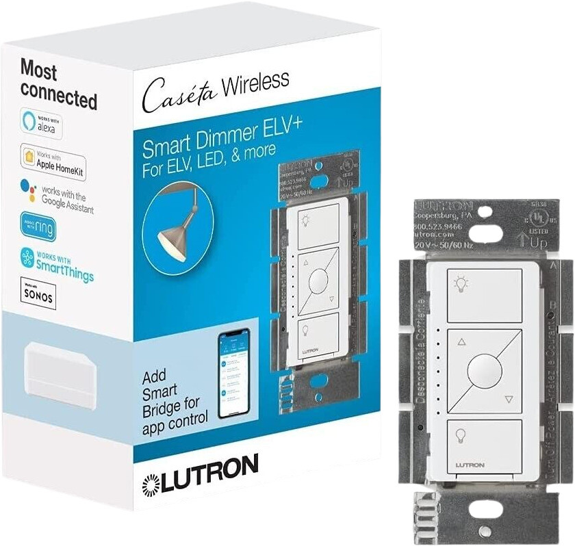 Works w/Alexa,Google Assistant,Ring and more(hub required) Neutral wire required; 10-Watt minimum load Pair w/a Pico remote for wireless control of your lights Bring Technology and style to your home w/the Lutron Caseta ELV+ dimmer. Caseta by Lutron allows you to control your lights from anywhere within your home w/the Pico remote control(sold separately)or from anywhere w/your mobile device via the free app and Lutron Caseta Smart Hub(also sold separately). The Caseta ELV+ Dimmer allows you to recall your favorite light level w/the new preset button for added convenience and is designed to control many loads types: 500-Watt of incandescent,halogen or electronic low-voltage,400-Watt of magnetic low-voltage and 250-Watt of dimmable LED or dimmable CFL(neutr... Simple life Caseta Smart Lighting Dimmer Switch for ELV Bulbs,250W LED Bulbs,White(PD-5NE-WH Works w/Alexa,Google Assistant,Ring and more(hub required) Neutral wire required; 10-Watt minimum load Pair w/a Pico remote for wireless control of your lights Bring Technology and style to your home w/the Lutron Caseta ELV+ dimmer. Caseta by Lutron allows you to control your lights from anywhere within your home w/the Pico remote control(sold separately)or from anywhere w/your mobile device via the free app and Lutron Caseta Smart Hub(also sold separately). The Caseta ELV+ Dimmer allows you to recall your favorite light level w/the new preset button for added convenience and is designed to control many loads types: 500-Watt of incandescent,halogen or electronic low-voltage,400-Watt of magnetic low-voltage and 250-Watt of dimmable LED or dimmable CFL(neutral wire connection and 10-Watt minimum load required for all load types). Out of the boxthe dimmer is set to control ELV,incandescent,halogen and many compatible LEDs,however is phase selective the dimmer output can be changed for MLV and certain LED bulbs w/simple button press programming. The Caseta ELV+ dimmer is a great solution for LED fixtures w/integrated,built-in drivers,ELV track lights and problem LEDs that may prefer an ELV dimmer. To use in a multi-location application,replace the existing switch w/a Pico remote control and wall plate adapter(both sold separately). Please note,wall plate for dimmer is also sold separately. EASY INSTALL: Easily replaces your existing switch in as little as 15 minutes; NEUTRAL WIRE REQUIRED Smart ELV Dimming: Gain smart dimming control of your track lighting,recessed lighting,or any other application involving electronic low voltage(ELV)fixtures(smart hub,L-BDG2-WH,required for smart control) PEACE OF MIND: Set lights to automatically adjust w/seasons so your family always comes back to a well-lit home; enable smart away to randomly turn your lights on/off to look like you're home even if you're away(Caseta Smart Hub,L-BDG2-WH,required) MOST CONNECTED: Caseta connects w/more leading smart home devices-including Amazon Alexa,Apple Home,the Google Assistant,Ring,Serena shades and Sonos-than any other smart lighting control brand(Caseta Smart Hub required) PEACE OF MIND: Set lights to automatically adjust w/seasons so your family always comes back to a well-lit home; enable smart away to randomly turn your lights on/off to look like you're home even if you're away(Caseta Smart Hub,L-BDG2-WH,required)(Caseta Smart Hub,L-BDG2-WH,required) GET MORE,SPEND LESS: One Caseta smart switch can control many bulbs at once; make many bulbs smart,even your existing bulbs. Get smart control of multiple styles of dimmable LED,incandescent,and halogen bulbs WIRELESS REMOTE CONTROL: For added convenience,use w/wireless Pico remote(PJ2-3BRL-GXX-L01)to turn your lights on,off,or dim and brighten w/the touch of a button from anywhere in the home EASY 3-WAY SETUP: Create a 3-way by mounting Pico to almost any wall surface-no cutting holes or pulling wire,w/a wall mount bracket(PICO-WBX-ADAPT sold separately). Replace existing 3-way switches by mounting the bracket and Pico over the backbox TECHNICAL DETAILS: Works w/up to 250W of dimmable LED/CFL,500W of incandescent/halogen or ELV,or 400W MLV; 10W minimum load required INCLUDES:(1)Caseta smart dimmer switch for ELV; coordinating wall plate sold separately INCLUDES:(1)Caseta smart dimmer switch for ELV; coordinating wall plate sold separately coordinating wall plate sold separately Need installation help? Click here for an interactive step by step wiring guide. Click here for more information on Electronic Recycling Programs Amperage(A):3.3 A|Color Family:White|Color/Finish:White|Commercial/Residential:Residential|Compatible Bulb Type:CFL,Halogen,Incandescent,LED|Device Style Type:Dimmer w/o Wall Plate|Dimmable Capability:Dimmable|Dimmer Type:Tap|Durability:Not Applicable|Electrical Features:No Additional Features|Finish Type:Gloss|Function Type:Single Pole|Included:No Additional Items Included|Indoor/Outdoor:Indoor|Material:Resin|Maximum Amperage(A):3.3 A|Mounting Type:In-Wall|Number of Poles:1|Number of Switches:One|Package Quantity:1|Rating:General Purpose|Switch Depth(in.):1.56 in|Switch Height(in.):4.69 in|Switch Style:Push Button|Switch Width(in.):2.93 in|Voltage:120 volt|Voltage(V):120 V|Wall Plate Configuration:Decorator/Rocker|Wattage(W):500 W|Wattage Equivalence:500|Certifications and Listings:UL Listed|Manufacturer Warranty:1 Year Item Specifics UPC 784276217699 MPN PD-5NE-WH Type Dimmers Brand Lutron Payment If you do not have a PayPal account, to get started and buy your first item with us is very easy. Simply click on the 'Buy It Now' button and follow the eBay checkout steps. Select PayPal as the payment method you then will be given the chance to enter your card details in to PayPal's secure checkout in order to pay for your order. Shipping 1. Normally all of parcels would be shipped within 3days(From Monday to Saturday). 2. We provide three kinds of shipping for choice. Shipping way depend on delivery address. Returns If an unit is received defective, of course we take it back or replace it. If the unit 