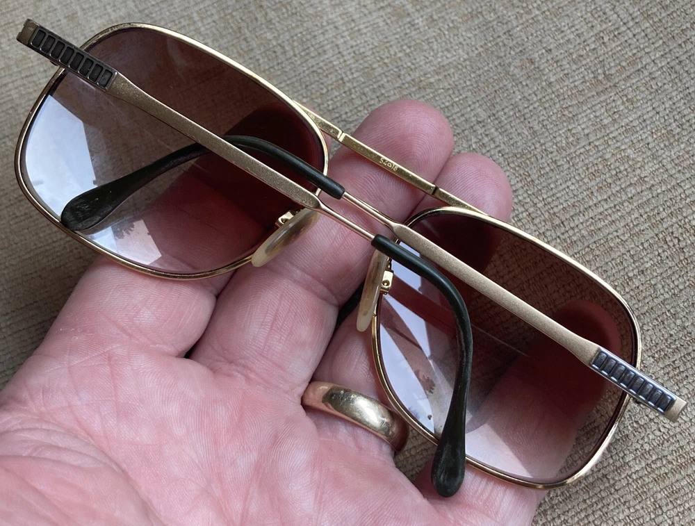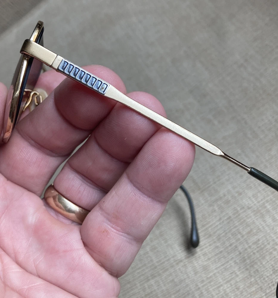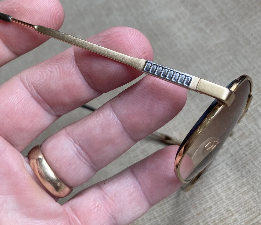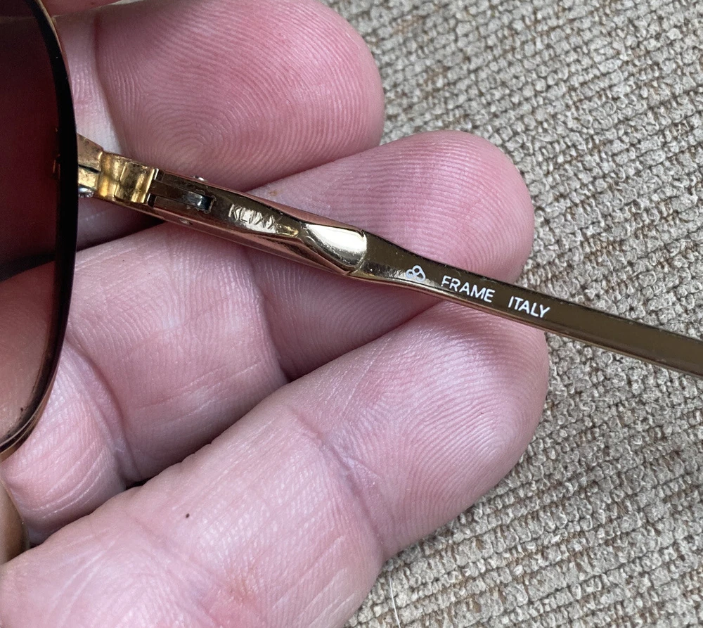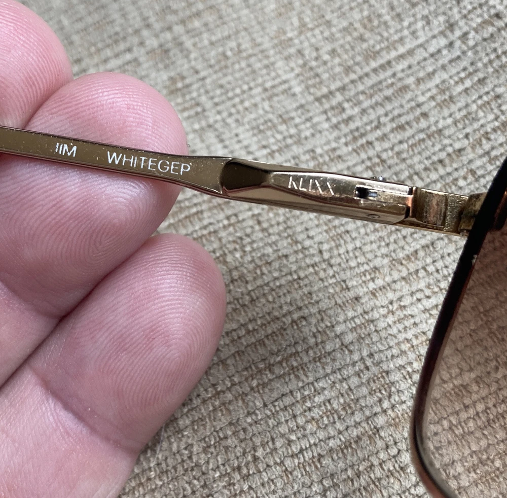 **RX PRESCRIPTION LENSES** Luxottica Jim Whitegep 54▫️18 140 RX Eyeglasses Eyewear Full Gold Frame Klixx Flex Spring Hinges Aviator Pilot. These vintage eyeglasses have prescription lenses that will need to be replaced. The plastic temple ends have some minor wear, but overall the frame itself is in excellent shape and comes from a smoke free home! 12 detailed pictures provided. Thanks for looking!