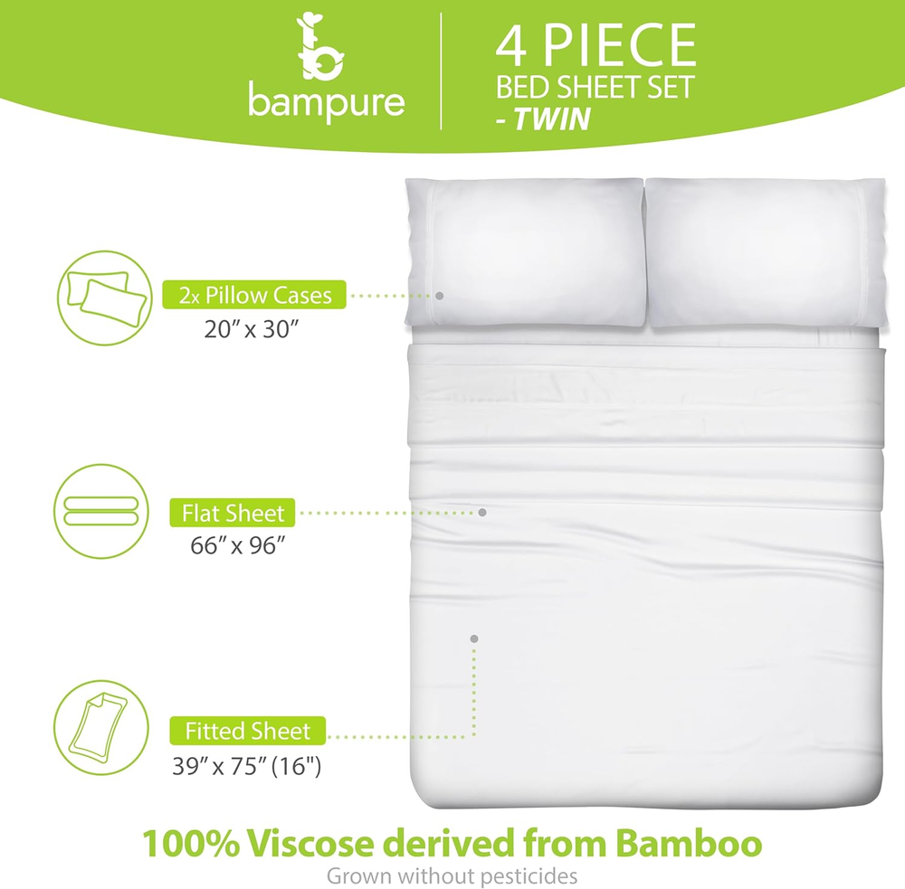 Store New Arrivals Add to Favorite View Feedback Contact Luxury Series 100% Pure Viscose Derived from Bamboo Sheets Twin Sheets Set - Super Soft Viscose Bamboo Cooling Sheets for Hot Sleepers -Up to 16’’ Deep Pocket Twin Bed Sheets (White) Description Item model number 4 Pc Bamboo Sheets Twin Size Style Contemporary Weave Type Sateen Pattern Solid Country of Origin China Theme winter Number of Pieces 4 Unit Count 1 Count Pillowcase Quantity 2 Material Viscose Derived from Bamboo Item Display Dimensions 13.38 x 2.56 x 9.44 inches Age Range (Description) Adult Seasons All Is Discontinued By Manufacturer No Included Components 1 Fitted Sheet, 2 Pillowcases, 1 Flat Sheet Closure Type Envelope Item dimensions L x W x H 13.38 x 2.56 x 9.44 inches Item Weight 3.78 pounds Sham Quantity 2 Special Feature Deep Pocket, Wrinkle Resi, Breathable Color White Product Dimensions 13.38 x 2.56 x 9.44 inches Product Care Instructions Machine Wash, Hand Wash Only Size Twin - 4 Pieces set Pure 100% VISCOSE DERIVED FROM BAMBOO: Experience the pure luxury of 100% viscose derived from bamboo Twin size sheets set. COMPLETE 4-PIECE Twin SHEETS: Experience a touch of luxury every night with our complete 4-piece Twin bed sheets. This set includes 1 luxuriously soft flat sheet (102"x105"), 1 fully elasticized fitted sheet (78"x80") for a secure fit on mattresses up to 16 inches deep, and 2 envelope-style colling pillow cases (20"x40") with overlapping closures for added comfort. Our Twin bed set is machine washable for easy care and gets softer with every wash. ULTIMATE COOLING COMFORT & BREATHABLE BLISS: Experience the unparalleled softness and natural breathability of 100% viscose derived from bamboo cooling sheets Twin size. These cooling bed sheets are thermo-regulating, keeping you cool and relaxed all night long, perfect for hot sleepers or those with sensitive skin. The moisture-wicTwin properties ensure year-round comfort, allowing you to indulge in luxurious softness with every wash. DEEP POCKETS ,SILKY SMOOTH SATEEN WEAVE: Woven in a luxurious sateen weave, these 100% viscose derived from bamboo sheets offer an incredibly soft and smooth feel that gets even softer with every wash. Indulge in hotel-like comfort every night. Our deep pocket Twin size bed sheets features a fully elasticized fitted sheet with a deep pocket (fits mattresses up to 16 inches) for a secure, stay-put fit. OEKO-TEX STANDARD 100 CERTIFIED: Responsibly sourced and Crafted from 100% viscose derived from bamboo bed sheets, a sustainable resource. These OEKO-TEX sheets are free from harmful substances for a healthy sleep environment. Unlike most, our bed sheets Twin size offer a luxurious, sustainable sleep experience you won't find anywhere else. Upgrade your sleep tonight! Product Description One Of A Kind Bamboo Sheets An average person spends around 26 years asleep in a lifetime. That reason only was enough of an inspiration for us to design our game- changing & luxurious Bampure viscose made from bamboo bed sheets that will help you sleep like a baby every single night. Top Of The Line Experience Bampure viscose made from bamboo bed sheet set has been carefully manufactured to bring you next level comfort. No more looking for a "cold spot" on your pillow, no more sweating at night, No more harmful synthetics - just pure relaxation. Corner Strap Included Every Bampure viscose bamboo bed sheet set comes with a fitted sheet. Not just any fitted sheet - ours features corner straps that keep the fitted sheet in place at all times. Available In Multiple Colors Choose between a wide array of colors & decorate your bedroom like never before. 2 Pillowcases Every set comes with 2 envelope style pillowcases that not only look good, but also feel good. There's More To Viscose derived from Bamboo Bed Sheets Than You'd Think Bampure bed sheets are as close to nature as it gets - they're crafted from 100% Viscose made from Bamboo. Viscose bamboo sheets are also softer than any cotton sheets available. Combine all that with durability & breathability - it's a perfect recipe for a truly dreamy experience. Bring Nature To Your Bedroom Being in close touch with nature is beneficial in all areas of life. Then why wouldn't you bring it to the bedroom? The team at Bampure is here to provide our customers natural, organic & comfortable bedding. Discover our selection of nature-driven bedroom accessories! ABOUT US We offer the best prices around on high quality products. Our E-store includes media such as books, movies, music and games while offering electronics, toys, sporting apparel, clothing, tools, general home, garden items and more. SHIPPING We are always working hard to ensure your package arrives as soon as possible. Please understand that some factors like weather, high postal traffic, and the performance of shipping companies are outside of our control. We offer free shipping to the lower 48 states and ship within 2 business days of payment, usually sooner. We do not accept P.O. Boxes. Please provide a physical address. For shipping outside of the continental USA, we only use eBay's Global Shipping Program.The item is shipped to KY and then sent to the rest of the world. International customers are responsible for all duties and taxes. Continue to check out in order to calculate costs for shipping the item to your country. Messages regarding eBay's Global Shipping Program MUST be directed at eBay EXCLUSIVELY. RETURNS We offer a 30-Day Return Policy on items which you are not completely satisfied with. You have the option for a full-refund or an exchange of the item. No returns are available on items shipped outside of the USA. PAYMENT We accept PayPal. CONTACT US This page content is yet to come Please ad us to your favorite seller and visit again later Thank You CUSTOMER SATISFACTION We try our very best to make sure every customer is completely satisfied. If there's a problem, message us! We're happy to help.