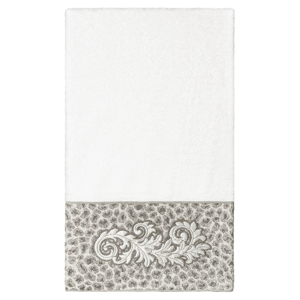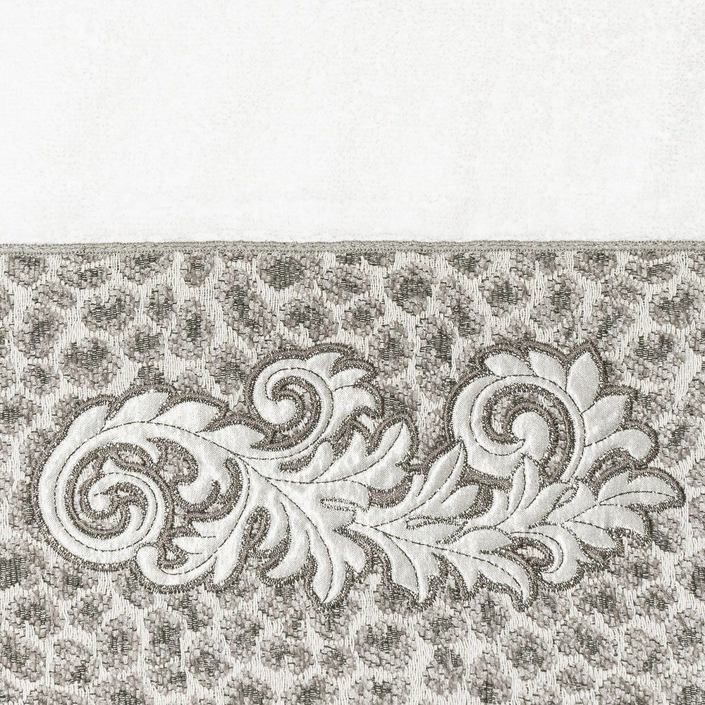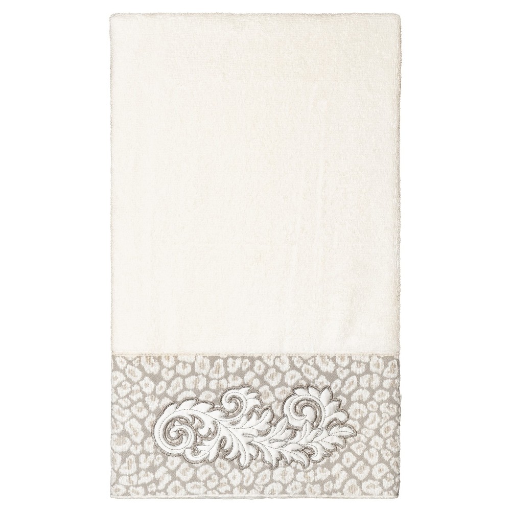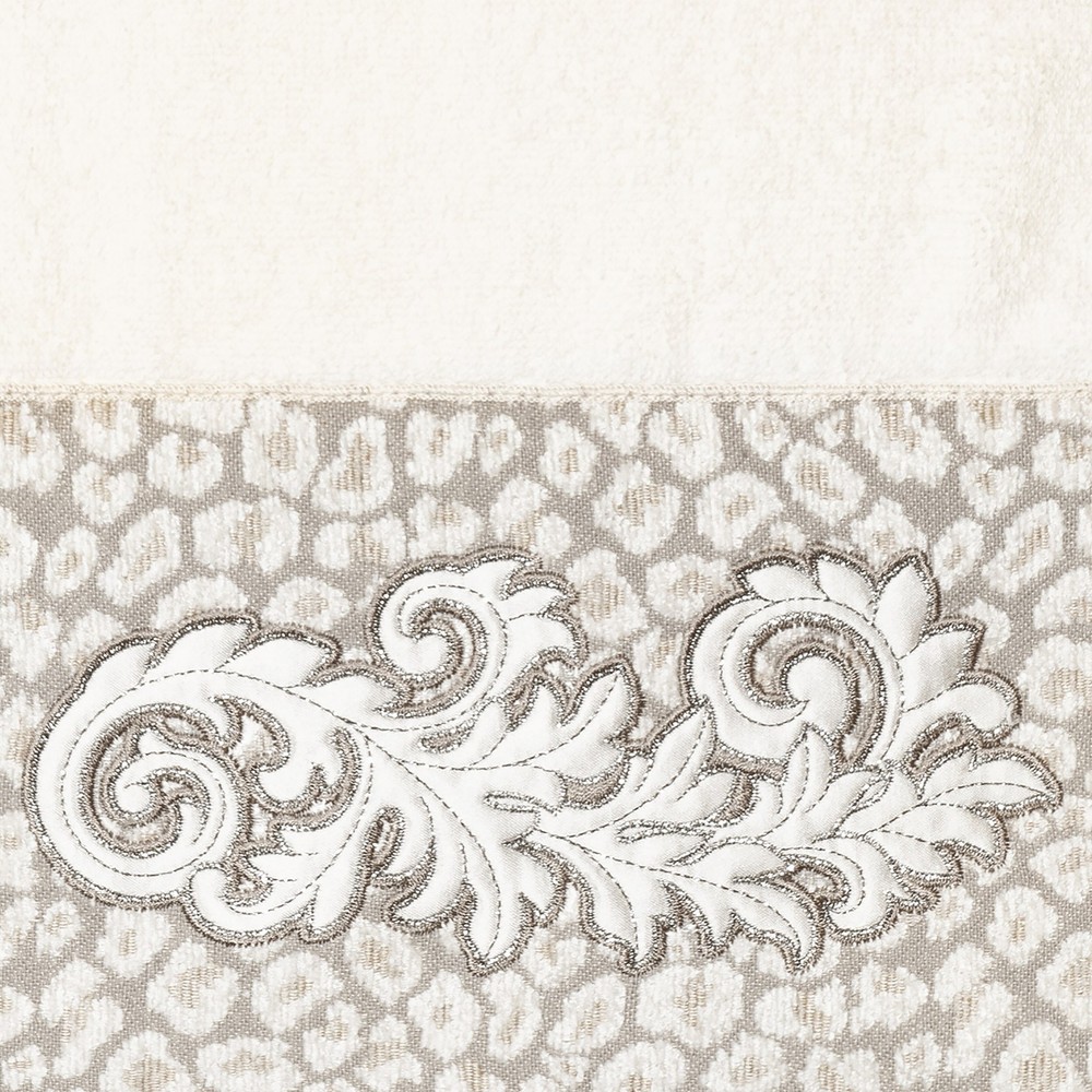 The April Embellished Towel Collection features an elegant lustrous appliqué scroll motif, embroidered on a plush cheetah patterned border. These soft and luxurious towels are made of 100% premium Turkish Cotton and offer lasting absorbency and superior durability.100% Premium Turkish CottonSuperbly absorbent and quick dryingAvailable in a range of lovely towel colorsMachine wash cold, No bleach, line dry or dry cleanIncludes 1 bath towel (27" x 54")Embellished in USAMade in Turkey Free Shipping Over $49.99* Details Authentic Hotel and Spa 100% Turkish Cotton April Embellished Bath Towel Product Description: The April Embellished Towel Collection features an elegant lustrous appliqué scroll motif, embroidered on a plush cheetah patterned border. These soft and luxurious towels are made of 100% premium Turkish Cotton and offer lasting absorbency and superior durability. 100% Premium Turkish Cotton Superbly absorbent and quick drying Available in a range of lovely towel colors Machine wash cold, No bleach, line dry or dry clean Includes 1 bath towel (27" x 54") Embellished in USA Made in Turkey