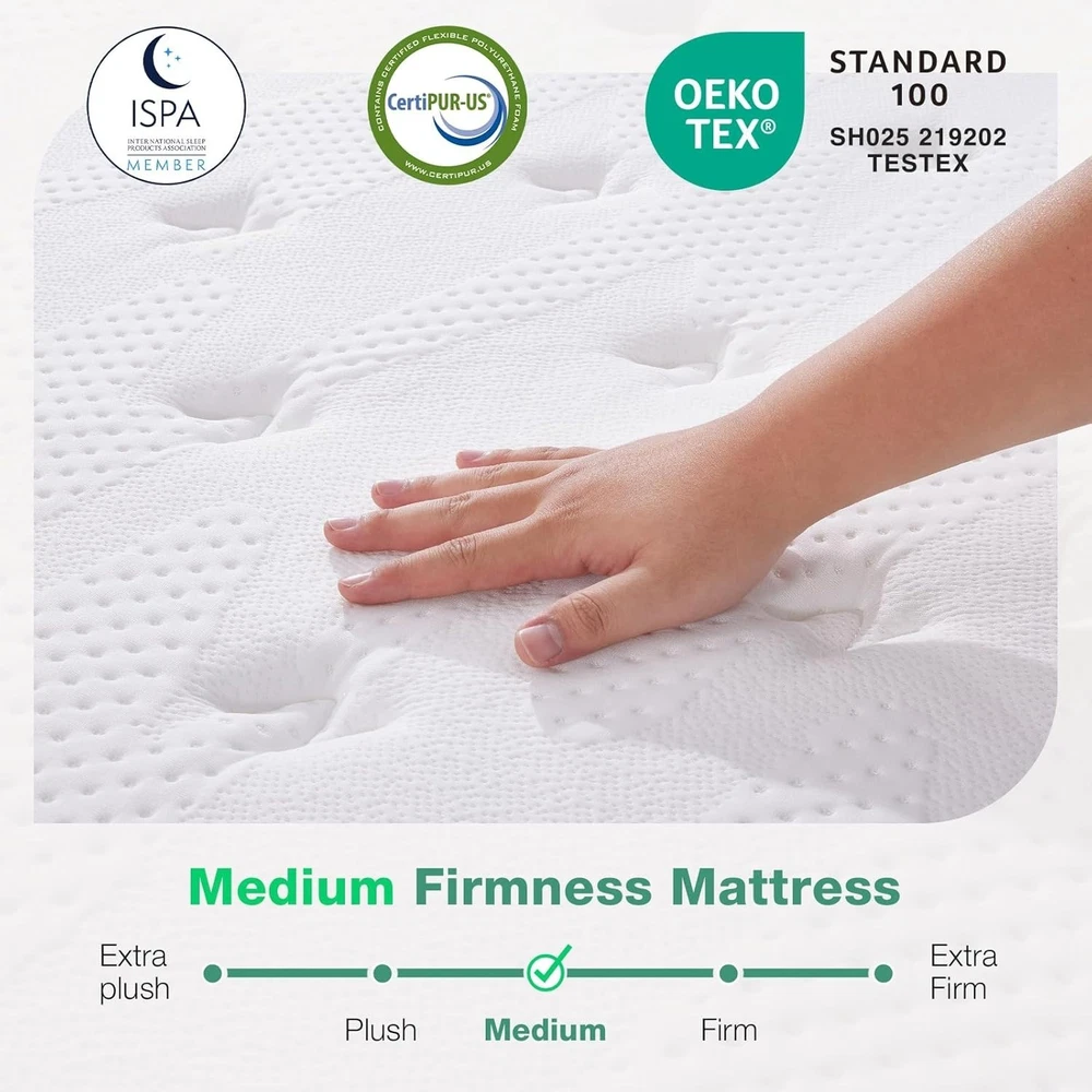 Luxury 14-Inch Queen Hybrid Mattress - Gel Memory Foam & Pocket Springs ‹ › ‹ › ‹ › ‹ › ‹ › ‹ › ‹ › ‹ › ‹ › Luxury 14-Inch Queen Hybrid Mattress - Gel Memory Foam & Pocket Springs Features: MOTION ISOLATION & REDUCED INTERFERENCE: Individual pocket coil spring system with silent design reduces tossing and turning, ensuring restful sleep for you and your partner. FITS THE HUMAN BODY CURVE: Designed to relieve body pressure and improve sleep quality for any sleeping position - back, side, or stomach. PRESSURE RELIEF: Two-layer foam design with gel memory foam and comfort foam promotes proper spinal alignment and reduces pressure on shoulders and hips. CERTIPUR-US CERTIFIED FOAM: Considered a safe choice for health-conscious sleepers; the quilted and knitted cover is OEKO-TEX certified for breathability. SUITABLE FOR MOST BASES AND FRAMES: The medium firm design comes compressed in a box and is compatible with various bed frames, including platform beds and adjustable bases. Benefits: Ensures uninterrupted sleep with advanced motion isolation. Offers personalized support tailored to your sleeping position. Relieves pressure points for a comfort-rich experience. Crafted with certified materials for a healthier sleep environment. Conveniently packaged for easy transport and setup. Why Choose the Luxury 14-Inch Queen Hybrid Mattress? Experience the pinnacle of comfort with our Luxury 14-Inch Queen Hybrid Mattress, combining state-of-the-art gel memory foam with an innovative pocket spring system. This hybrid mattress not only provides exquisite comfort but also promotes proper spinal alignment and alleviates pressure, ensuring you enjoy restful nights and refreshed mornings. Don't compromise on your sleep quality; indulge in the luxury of a mattress designed for the discerning sleeper. Transform your bedroom into a serene sanctuary with our hybrid mattress – the perfect investment in your well-being. Order yours today! Shipping Free & Fast Shipping - We offer free shipping to most of the USA with a normal delivery time of 3-7 days. However, due to the current situation, additional delivery time (up to 3 weeks) may be required for some items. Alternative Carriers - We may use alternative carriers (e.g. USPS, FedEx, UPS, etc.) to ensure your package arrives safely and on time. Due to the use of multiple carriers, we are unable to provide a tracking number automatically. Handling Time - Orders are processed and shipped within 1-2 business days of receiving cleared payment. Shipping Restrictions - Shipping to Alaska, Hawaii, Puerto Rico, Guam, and other US territories may incur shipping charges or delivery restrictions. Please contact us before ordering, or your order can be refunded/cancelled. State Restrictions - There may be restrictions based on your state of purchase. For example, certain items may not be shipped to California due to state regulations. Contact for Tracking Updates - If you require tracking updates or have any concerns about the delivery of your order, please feel free to contact us, and we will be happy to assist you. Return 30-Day Hassle-Free Returns - We want you to be completely satisfied with your purchase. If you are not, you can return the item within 30 days of receiving it for a full refund or exchange. Easy Return Process - To start a return, simply contact us and we will provide you with a prepaid return shipping label and detailed instructions. Restocking Fee - There are no restocking fees for returns. However, the buyer is responsible for return shipping costs if the return is not due to a seller's error. Refund Processing Time - Refunds will be processed within 5 business days of receiving the returned item in its condition. Payment We accept all major credit cards, PayPal, and Apple Pay for your convenience. Your payment information is secure and encrypted to ensure a safe and seamless transaction. Please complete your payment within 3 days of purchase to avoid any delays in shipping. Feedback Your feedback is extremely important to us. We strive to provide the best products and customer service possible. If you are satisfied with your purchase, please take a moment to leave us a positive review. If you have any concerns or issues with your order, please contact us before leaving negative feedback. We are committed to resolving any problems and ensuring your satisfaction. Contact Us If you have any questions or concerns, please feel free to out to our customer support team. You can contact us through the eBay messaging system. We are available Monday to Friday, 9:00 am to 5:00 pm EST, and we will do our best to respond to your inquiry within 24 hours. Buy it now and enjoy a pleasant shopping experience! Unit Quantity: Queen Features: Motion Isolation,Pressure Relief,Temperature Regulating,Low Motion Transfer Cover Material: Polyester Labels & Certifications: Queen Mattress Firmness: Medium Firm Size: Queen Type: Hybrid Mattress Color: White Thickness: 14 in Mattress Breathability: High Style: 14 inch Room: Bedroom Shape: Rectangle Number of Springs: 550 Item Weight: 76.32 lb Care Instructions: Wipe with dry cloth