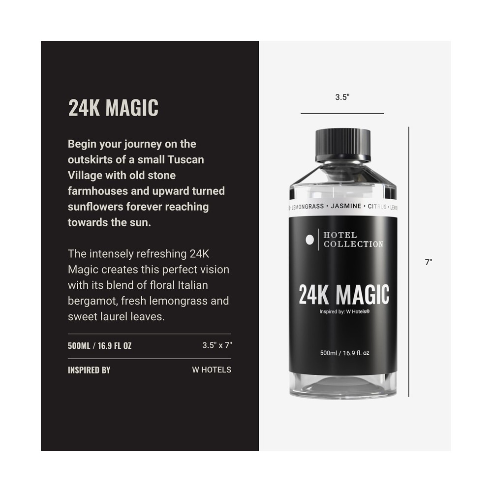 Hotel Collection - 24K Magic Essential Oil Scent - Luxury Hotel Inspired Arom... Hotel Collection - 24K Magic Essential Oil Scent - Luxury Hotel Inspired Aromatherapy Scent Diffuser Oil - Hints of Zesty Citrus, Floral Jasmine, & Delicate Lily - for Essential Oil Diffusers - 500mL Description Features: Luxurious Scent Experience: Begin your journey on the outskirts of a small Tuscan Village. One with old stone farmhouses & upward-turned sunflowers forever reaching towards the sun. 24K Magic creates this perfect vision with its blend of floral Italian bergamot, fresh lemongrass & sweet laurel leaves. 500 mL / 16.9 fl oz. Discover The Gold Standard Of Scent Oil: With a long-lasting scent that's as friendly as it is bubbly, 24K Magic aroma diffuser oils by Hotel Collection bring home the vivid olfactory sensations that define the vibrant, eclectic atmosphere of W Hotel. Quality You Can Smell: Pair Hotel Collection's signature scents with your favorite aromatherapy essential oil scent diffuser. Enjoy long-lasting fragrant aromas with a home scent transformation that welcomes any bedroom, bathroom, kitchen, or office to top-tier scenting. Weeks Of Air Customization: When used with our popular line of small and sleek aromatherapy oil diffusers, a 500mL bottle of Hotel Collection scented oil lasts up to 4 months, granting complete control over your home's smell for even the longest stay. Make Every Day A Luxury Stay: Rewrite the story of your home's hospitality experience with scents found in the world's luxury 5-star hotels. From exotic island essence to timeless urban opulence, Hotel Collection will provide it for anywhere you call home. Product Details: Brand: Aroma360 Scent: 24K Magic Special Feature: Scented, Aromatherapy Product Benefits: Soothing Seasons: All Seasons Product Dimensions : 3.5 x 7 x 3.5 inches; 1.15 Pounds Date First Available : March 9, 2022 Manufacturer : Aroma360 Country of Origin : USA Delivery We Do Not Ship Outside of the Continental US. Return Policy All items qualify for returns within 30 days of receipt. Buyer is responsible for return shipping on any item that is not damaged. Feedback We take our reputation seriously, we buy and sell online, so we understand the value of trust. If you are unsatisfied with your order, please contact us and we will work with you to resolve it to your satisfaction. ABOUT US We offer the best prices around on high quality products. Our E-store includes media such as books, movies, music and games while offering electronics, toys, sporting apparel, clothing, tools, general home, garden items and more. SHIPPING We are always working hard to ensure your package arrives as soon as possible. Please understand that some factors like weather, high postal traffic, and the performance of shipping companies are outside of our control. For shipping outside of the continental USA, we only use eBay's Global Shipping Program.The item is shipped to KY and then sent to the rest of the world. International customers are responsible for all duties and taxes. Continue to check out in order to calculate costs for shipping the item to your country. Messages regarding eBay's Global Shipping Program MUST be directed at eBay EXCLUSIVELY. RETURNS We offer a 30-Day Return Policy on items which you are not completely satisfied with. You have the option for a full-refund or an exchange of the item. No returns are available on items shipped outside of the USA. CUSTOMER SATISFACTION We try our very best to make sure every customer is completely satisfied. If there's a problem, message us! We're happy to help.