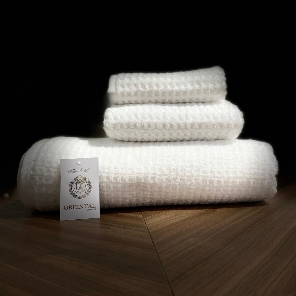 Absolutely love this towel set! The 100% Turkish cotton is luxuriously soft and super absorbent—perfect for everyday use. The bath, hand, and washcloth sizes are ideal, and they feel gentle against my skin. The elegant oriental design adds a touch of luxury to my bathroom. Highly recommend for anyone looking for both quality and style!