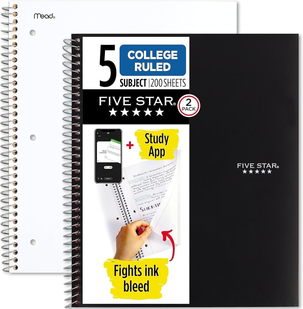 Luxury 5 Subject Spiral Notebooks with Study App, 200 Sheets, Black & White Pack ‹ › ‹ › ‹ › ‹ › ‹ › ‹ › ‹ › ‹ › ‹ › ‹ › Luxury 5 Subject Spiral Notebooks with Study App Experience elegance and functionality with our luxury 5 Subject Spiral Notebooks, designed to enhance your study experience while ensuring durability throughout the . Key Features: 200 double-sided, college ruled sheets that combat ink bleed. Perforated sheets for easy tear-out, measuring 8-1/2" x 11". Includes Tough pockets to hold 8-1/2" x 11" loose sheets and handouts, preventing tears. Four 2-pocket dividers maintain organization across subjects. Water-resistant covers safeguard your notes against spills and damage. Spiral Lock wire design prevents snagging on clothing and backpacks. Made with SFI certified paper and fully recyclable — simply remove the reinforcement tape on the pocket. Available in a sophisticated Black & White pack. Exclusive Study App Integration: Transform the way you study with the App, allowing you to scan, study, and organize your notes effortlessly. Create instant digital flashcards to facilitate effective learning. Sync notes to Google Drive for seamless access across devices. : All notebooks are guaranteed to last the entire , ensuring that your investment in education is secure—valid for one from purchase, excluding misuse. Why Choose Our Luxury 5 Subject Notebooks? Indulge in the world of superior note-taking with a notebook that combines elegance and practicality. Whether you are a student, a professional, or someone who appreciates the finer things in life, this notebook is designed to exceed your expectations. Its advanced features, stunning design, and commitment to sustainability make it an essential tool for your academic and creative pursuits. Elevate your study sessions and ensure your notes are always protected and organized—purchase your Luxury 5 Subject Spiral Notebook today! Shipping Free & Fast Shipping - We offer free shipping to most of the USA with a normal delivery time of 3-7 days. However, due to the current situation, additional delivery time (up to 3 weeks) may be required for some items. Alternative Carriers - We may use alternative carriers (e.g. USPS, FedEx, UPS, etc.) to ensure your package arrives safely and on time. Due to the use of multiple carriers, we are unable to provide a tracking number automatically. Handling Time - Orders are processed and shipped within 1-2 business days of receiving cleared payment. Shipping Restrictions - Shipping to Alaska, Hawaii, Puerto Rico, Guam, and other US territories may incur shipping charges or delivery restrictions. Please contact us before ordering, or your order can be refunded/cancelled. State Restrictions - There may be restrictions based on your state of purchase. For example, certain items may not be shipped to California due to state regulations. Contact for Tracking Updates - If you require tracking updates or have any concerns about the delivery of your order, please feel free to contact us, and we will be happy to assist you. Return 30-Day Hassle-Free Returns - We want you to be completely satisfied with your purchase. If you are not, you can return the item within 30 days of receiving it for a full refund or exchange. Easy Return Process - To start a return, simply contact us and we will provide you with a prepaid return shipping label and detailed instructions. Restocking Fee - There are no restocking fees for returns. However, the buyer is responsible for return shipping costs if the return is not due to a seller's error. Refund Processing Time - Refunds will be processed within 5 business days of receiving the returned item in its condition. Payment We accept all major credit cards, PayPal, and Apple Pay for your convenience. Your payment information is secure and encrypted to ensure a safe and seamless transaction. Please complete your payment within 3 days of purchase to avoid any delays in shipping. Feedback Your feedback is extremely important to us. We strive to provide the best products and customer service possible. If you are satisfied with your purchase, please take a moment to leave us a positive review. If you have any concerns or issues with your order, please contact us before leaving negative feedback. We are committed to resolving any problems and ensuring your satisfaction. Contact Us If you have any questions or concerns, please feel free to out to our customer support team. You can contact us through the eBay messaging system. We are available Monday to Friday, 9:00 am to 5:00 pm EST, and we will do our best to respond to your inquiry within 24 hours. Buy it now and enjoy a pleasant shopping experience! Model: Five Star Notebooks Unit Quantity: 2.0 Color: Black Size: A4 Theme: Five Star Notebooks Gender: Boys & Girls Style: Modern Unit Type: Unit