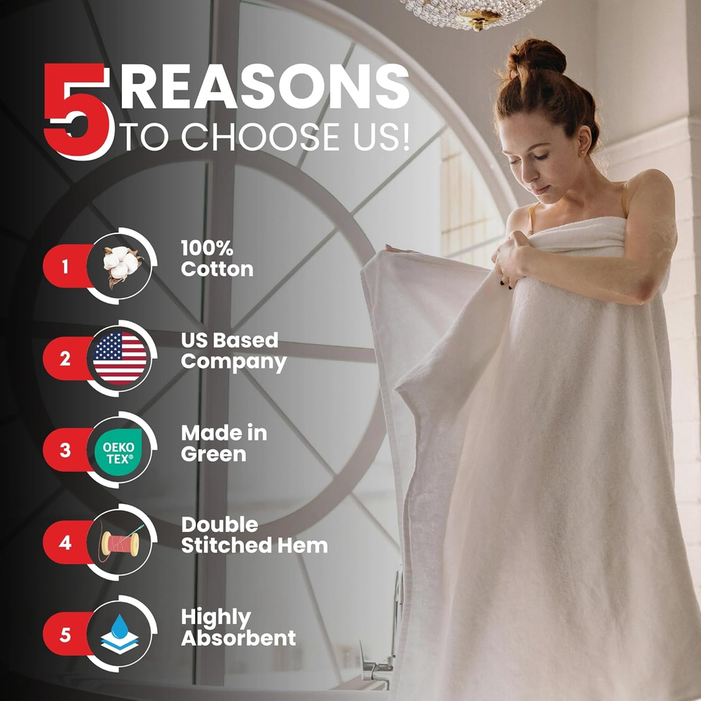 Store New Arrivals Add to Favorite View Feedback Contact – Luxury Bath Sheets Towels – 2 Pack 600 GSM (35X70 Inches)– 100% Ring Spun Cotton Large Bath Towels for Bathroom (Serene Teal, Bath Sheet Pack of 2) Description Item model number BTHTWLWHT Unit Count 2.0 Count Style Modern Product Dimensions 70"L x 35"W Number of Items 2 Color Serene Teal Pattern Solid Material Cotton Country of Origin Pakistan Item Weight 4.09 pounds Theme No Theme Size Bath Sheet Pack of 2 Towel form type Bath Sheet Age Range (Description) All Age Model Name Bath Sheets Special Feature Lint Free Fabric Type Cotton EXTRA-LARGE SIZE: These 2 luxury cotton bath sheets measure 35 x 70 inches, providing generous coverage and comfort. Ideal for any body size, they are perfect for wrapping yourself up after a relaxing bath or shower. PREMIUM QUALITY: Our bath towels are made from 100% ring spun cotton, these towels are incredibly soft and plush. They offer a luxurious feel against your skin, making every bath or shower a spa-like experience. ABSORBENT AND SOFT: Our bathroom towels feel soft and delicate on the skin while the composition enables them to be highly absorbent and durable. DURABLE AND LONG-LASTING: These bath sheets are designed to withstand frequent washing and drying without losing their softness or absorbency. They retain their vibrant color and texture even after several washes. VIBRANT COLORS: Available in a wide range of colors that are fade-resistant, these large bath towel maintain their vibrant hues even after multiple washes. They are also praised for their quality, with many users comparing them to hotel-grade towels. Product Description The video showcases the product in use. The video guides you through product setup. The video compares multiple products. The video shows the product being unpacked. ABOUT US We offer the best prices around on high quality products. Our E-store includes media such as books, movies, music and games while offering electronics, toys, sporting apparel, clothing, tools, general home, garden items and more. SHIPPING We are always working hard to ensure your package arrives as soon as possible. Please understand that some factors like weather, high postal traffic, and the performance of shipping companies are outside of our control. We offer free shipping to the lower 48 states and ship within 2 business days of payment, usually sooner. We do not accept P.O. Boxes. Please provide a physical address. For shipping outside of the continental USA, we only use eBay's Global Shipping Program.The item is shipped to KY and then sent to the rest of the world. International customers are responsible for all duties and taxes. Continue to check out in order to calculate costs for shipping the item to your country. Messages regarding eBay's Global Shipping Program MUST be directed at eBay EXCLUSIVELY. RETURNS We offer a 30-Day Return Policy on items which you are not completely satisfied with. You have the option for a full-refund or an exchange of the item. No returns are available on items shipped outside of the USA. PAYMENT We accept PayPal. CONTACT US This page content is yet to come Please ad us to your favorite seller and visit again later Thank You CUSTOMER SATISFACTION We try our very best to make sure every customer is completely satisfied. If there's a problem, message us! We're happy to help. WE ACCEPT Copyright © 2021 AutoDS. | All Rights Reserved