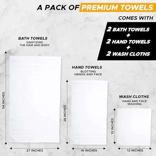 Return Policy Fast Delivery Trusted seller Luxury 100% White Turkish Cotton Towel Set 550 GSM– 6 Piece Bathroom Towels Set Includes 2 Bath Towels, 2 Hand Towels, 2 Washcloths – Soft, Absorbent, Quick Dry for Bathroom, Spa ,gym & Hotel Product Description 100% Cotton for Premium Softness: Made from 100% pure cotton for a soft, plush feel—gentle on skin and perfect for everyday use or luxury spa experiences. 6-Piece Complete Set: Includes 2 bath towels (27"x54"), 2 hand towels (16"x28"), and 2 washcloths (12"x12")—everything you need for a complete bathroom refresh. Highly Absorbent & Quick Drying: Designed to soak up moisture fast while drying quickly, these towels are ideal for busy households and humid climates. Spa & Hotel Quality: Enjoy hotel-level comfort in your own home with durable construction, fade-resistant color, and long-lasting softness—even after multiple washes. OEKO-TEX Certified & Eco-Friendly: These towels are made with your safety and comfort in mind—free from harmful chemicals and safe for the whole family. Shipping Returns Payment Shipping Shipping is FREE to all addresses other than APO/PO boxes in the lower 48 states. All our stock ships from US-based warehouses. Shipped via USPS or UPS (depending on location and package weight) Unless stated otherwise, all orders will ship within 24-72 hours of your payment being processed. Check our feedback to see the great reviews of FAST shipping we offer. Returns Seller does not accept returns Payment We currently accept payment via eBay managed payments only. Once payment is cleared, we will dispatch your shipment within 1-3 business days. Please refer to the "Shipping" tab for more information regarding shipping speed to your destination.