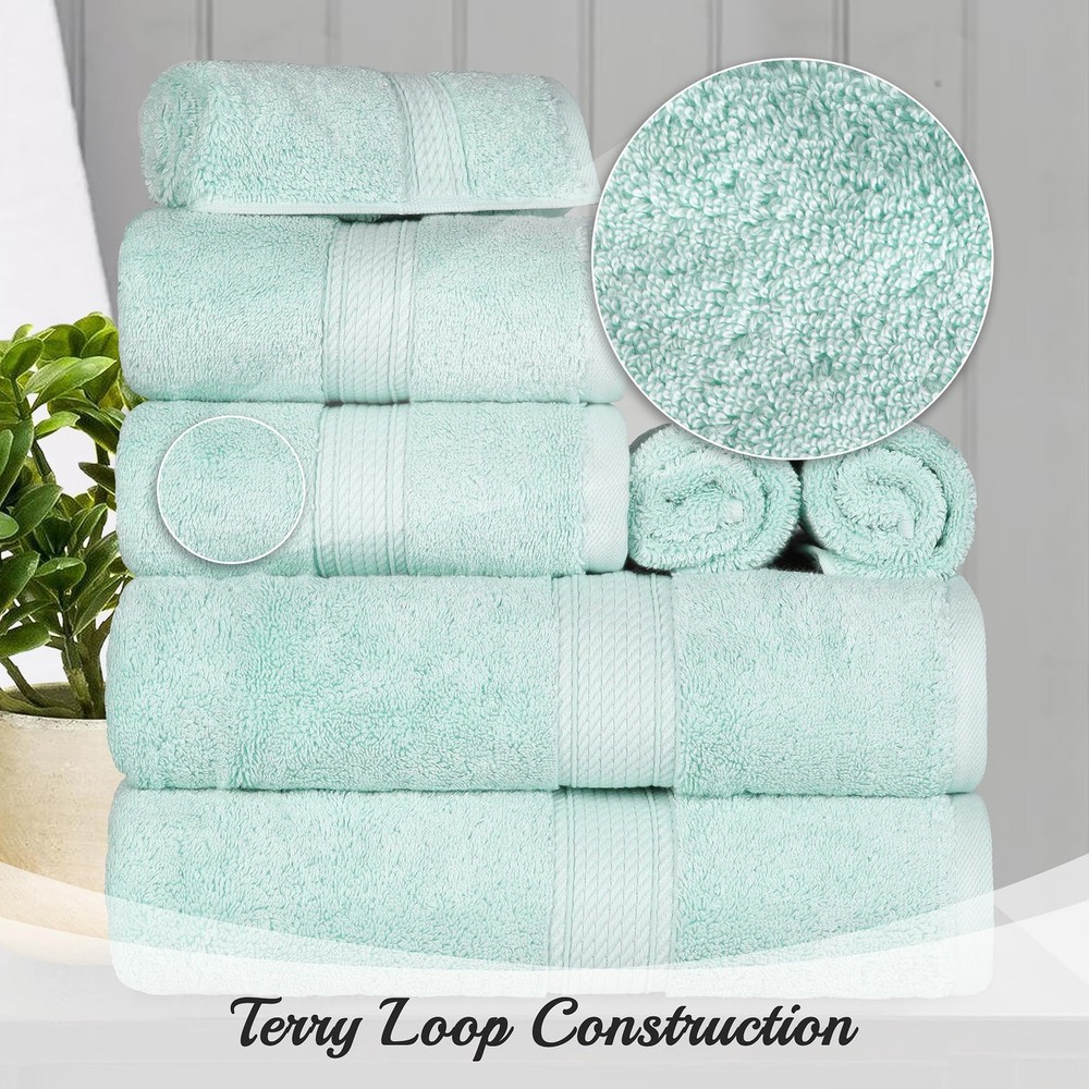 πππππππ ππππ πππ: These towels are crafted from Egyptian Cotton pile fibers that are naturally strong, absorbent, and soft; heavyweight and plush; Set includes: 2 Hand (30"L x 16"W), 2 Bath (55"L x 30"W) and 2 Face Towels/Washcloths (13"L x 13"W) ππππππ ππππππ: State-of-the-art design is fashionable, elegant and classy; rope border for added texture and style; this beautiful bundle is perfect for any master bath, powder room, or guest bathroom; loop for easy hanging and drying ππππππππ ππ ππππππ: Black, Chocolate Dark Brown, Charcoal, Cream, Forest Green, Latte Brown, Light Blue, Navy Blue, Plum, Purple, Red, Orange Rust, Seafoam, Stone Grey, Teal, Toast, Tea Rose Pink, White, Coral, Denim Blue, Silver, and Turquoise ππ π πππππππ ππππ: For the most luxurious results, we recommend to wash with like colors, tumble dry low, and remove promptly from the dryer. Please follow care label instructions for best results πππππππππ πππ π: Our designs match a variety of styles and make great gifts; perfect for friends and family; we're committed to make products safer for you and safer for the world; this product is OEKO-TEX certified for safety and sustainability