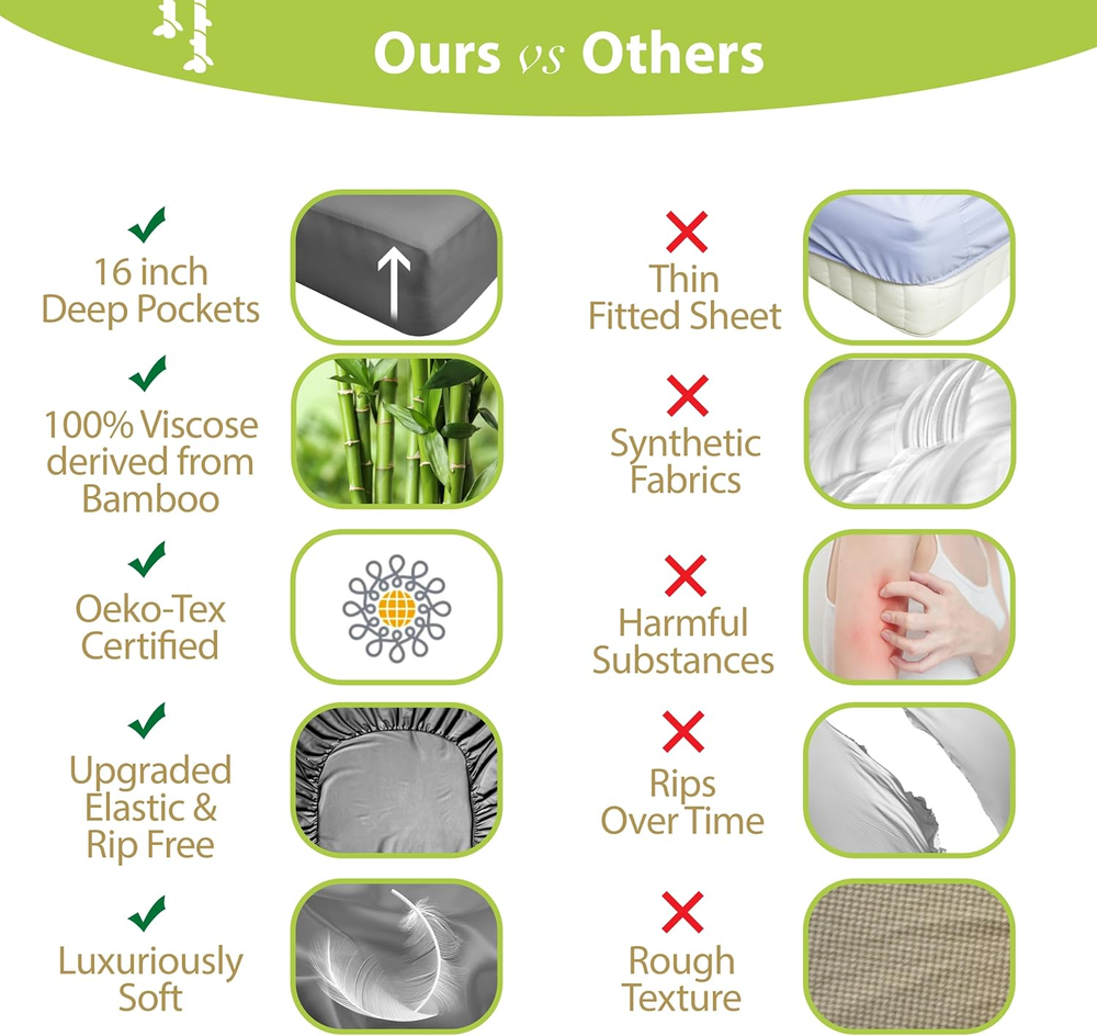 Luxury Series 6 Pcs King Sheet Set - 100% Viscose Derived from Bamboo Sheets King Size - Super Soft Viscose Bamboo Cooling Sheets for Hot Sleepers -Up to 16’’ Deep Pocket King Sheets (C.Gray) Ships from USA | 30-Day Free Returns Product Details: Item model number Bamboo Sheets King Size Style Modern Eco Weave Type Sateen Pattern Solid Country of Origin China Theme Winter Cartoon Character King Number of Pieces 6 Unit Count 1 Count Fitted Sheet Pocket Depth 9.45 Inches Pillowcase Quantity 4 Material Viscose Derived from Bamboo Item Display Dimensions 13.38 x 3.54 x 9.45 inches Age Range (Description) Adult Seasons All Is Discontinued By Manufacturer No Included Components 1 Fitted Sheet, 1 Flat Sheet, 4 Pillowcases Closure Type Envelope Item dimensions L x W x H 13.38 x 3.54 x 9.45 inches Item Weight 6.94 pounds Sham Quantity 2 Special Feature Deep Pocket, Breathable Color Charcoal Gray Product Dimensions 13.38 x 3.54 x 9.45 inches Product Care Instructions Machine Wash Size King - 6 Pieces Set Why Buy From Us: Fast & FREE Shipping on all orders All items ship directly from USA warehouses Easy returns – your satisfaction is our priority 24/7 customer support – we’re here to help Shipping & Handling: Most orders are processed within 1 business day . Tracking will be uploaded as soon as your order ships. Estimated delivery time: 2-5 business days . Returns: If you’re not fully satisfied, return the item within 30 days for a full refund or exchange. Buyer pays return shipping unless the item arrives damaged or defective. Shop with confidence – Thousands of happy customers trust us for quality products and fast service!