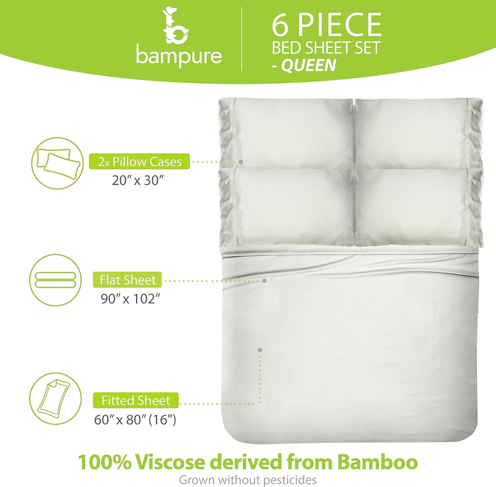 Store New Arrivals Add to Favorite View Feedback Contact Luxury Series 6 Pcs Queen Sheet Set - 100% Pure Viscose Derived from Bamboo Sheets Queen Size - Super Soft Queen Cooling Sheets for Hot Sleepers - up to 16’’ Deep Pocket Queen Sheets (Sglass) Description Item model number 6 Pc Bamboo Sheets Queen Size Style Queen Seaglass Weave Type Sateen Pattern Solid Country of Origin China Theme winter Number of Pieces 6 Unit Count 1 Count Fitted Sheet Pocket Depth 9.44 Inches Pillowcase Quantity 4 Material Viscose from Bamboo Item Display Dimensions 13.38 x 2.75 x 9.44 inches Age Range (Description) Adult Seasons All Is Discontinued By Manufacturer No Included Components 1 Fitted Sheet, 1 Flat Sheet, 4 Pillowcases Closure Type Envelope Item dimensions L x W x H 13.38 x 2.75 x 9.44 inches Item Weight 5.74 pounds Sham Quantity 4 Special Feature Deep Pocket, Wrinkle Resi, Breathable Color Seaglass Thread Count 1800 Product Dimensions 13.38 x 2.75 x 9.44 inches Product Care Instructions Machine Wash, Hand Wash Only Size Queen - 6 Pieces Set PURE 100% VISCOSE DERIVED FROM BAMBOO: Experience the pure luxury of 100% viscose derived from bamboo sheet set. COMPLETE 6-PIECE QUEEN SIZE SHEET SET: Experience a touch of luxury every night with our complete 6-piece queen bed set. This set includes 1 luxuriously soft flat sheet (90"x102"), 1 fully elasticized fitted sheet (60"x80") for a secure fit on mattresses up to 16 inches deep, and 4 envelope-style colling pillow cases (20"x30") with overlapping closures for added comfort. Our queen bed sets are machine washable for easy care and get softer with every wash. ULTIMATE COOLING COMFORT & BREATHABLE BLISS: Experience the unparalleled softness and natural breathability of 100% viscose derived from bamboo cooling sheets. These cooling bed sheets are thermo-regulating, keeping you cool and relaxed all night long, perfect for hot sleepers or those with sensitive skin. The moisture-wicking properties ensure year-round comfort, allowing you to indulge in luxurious softness with every wash. DEEP POCKETS ,SILKY SMOOTH SATEEN WEAVE: Woven in a luxurious sateen weave, these 100% viscose derived from bamboo sheets offer an incredibly soft and smooth feel that gets even softer with every wash. Indulge in hotel-like comfort every night. Our deep pocket queen sheet set features a fully elasticized fitted sheet with a deep pocket (fits mattresses up to 16 inches) for a secure, stay-put fit. OEKO-TEX STANDARD 100 CERTIFIED: Responsibly sourced and Crafted from 100% viscose derived from bamboo bed sheets, a sustainable resource. These OEKO-TEX sheets are free from harmful substances for a healthy sleep environment. Unlike most, our sheets queen size bed set offer a luxurious, sustainable sleep experience you won't find anywhere else. Upgrade your sleep tonight! Product Description One Of A Kind Bamboo Sheets An average person spends around 26 years asleep in a lifetime. That reason only was enough of an inspiration for us to design our game- changing & luxurious Bampure viscose made from bamboo bed sheets that will help you sleep like a baby every single night. Top Of The Line Experience Bampure viscose made from bamboo bed sheet set has been carefully manufactured to bring you next level comfort. No more looking for a "cold spot" on your pillow, no more sweating at night, No more harmful synthetics - just pure relaxation. Corner Strap Included Every Bampure viscose bamboo bed sheet set comes with a fitted sheet. Not just any fitted sheet - ours features corner straps that keep the fitted sheet in place at all times. Available In Multiple Colors Choose between a wide array of colors & decorate your bedroom like never before. 4 Pillowcases Every set comes with 4 envelope style pillowcases that not only look good, but also feel good. There's More To Viscose derived from Bamboo Bed Sheets Than You'd Think Bampure bed sheets are as close to nature as it gets - they're crafted from 100% Viscose made from Bamboo. Viscose bamboo sheets are also softer than any cotton sheets available. Combine all that with durability & breathability - it's a perfect recipe for a truly dreamy experience. Bring Nature To Your Bedroom Being in close touch with nature is beneficial in all areas of life. Then why wouldn't you bring it to the bedroom? The team at Bampure is here to provide our customers natural, organic & comfortable bedding. Discover our selection of nature-driven bedroom accessories! ABOUT US We offer the best prices around on high quality products. Our E-store includes media such as books, movies, music and games while offering electronics, toys, sporting apparel, clothing, tools, general home, garden items and more. SHIPPING We are always working hard to ensure your package arrives as soon as possible. Please understand that some factors like weather, high postal traffic, and the performance of shipping companies are outside of our control. We offer free shipping to the lower 48 states and ship within 2 business days of payment, usually sooner. We do not accept P.O. Boxes. Please provide a physical address. For shipping outside of the continental USA, we only use eBay's Global Shipping Program.The item is shipped to KY and then sent to the rest of the world. International customers are responsible for all duties and taxes. Continue to check out in order to calculate costs for shipping the item to your country. Messages regarding eBay's Global Shipping Program MUST be directed at eBay EXCLUSIVELY. RETURNS We offer a 30-Day Return Policy on items which you are not completely satisfied with. You have the option for a full-refund or an exchange of the item. No returns are available on items shipped outside of the USA. PAYMENT We accept PayPal. CONTACT US This page content is yet to come Please ad us to your favorite seller and visit again later Thank You CUSTOMER SATISFACTION We try our very best to make sure every customer is completely satisfied. If there's a problem, message us! 