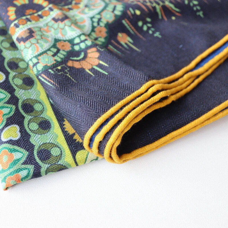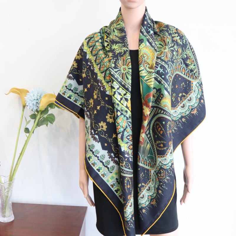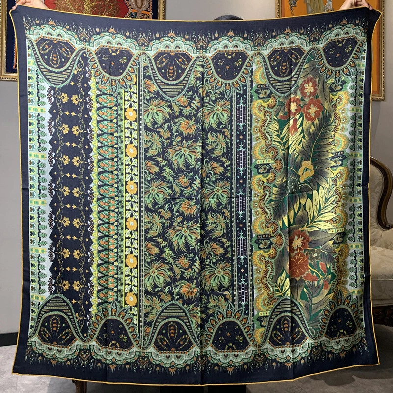 Luxury 70% Cashmere 30% Silk Double-Faced Square Shawl with Floral Print 53x53