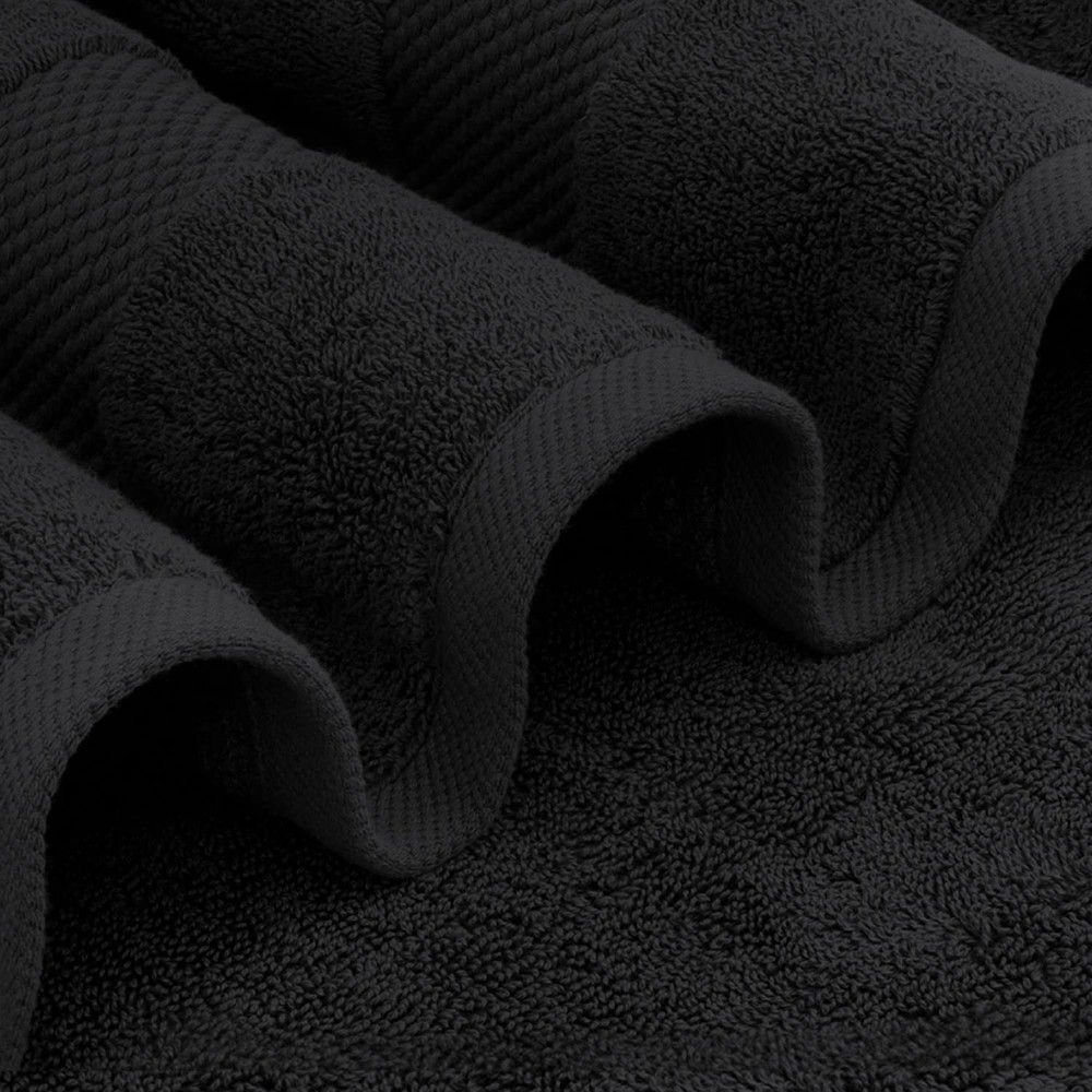 Soft and Absorbent The fluffy towel set is made super soft, plush and extra absorbent. The stylish border gives it a sophisticated and luxurious look. You will feel the softness immediately, and the towels will get softer after each washing. And by using only 100% Combed cotton and double-stitching all the hems the durability is un-equaled. These towels should last you many years! Set Contains 2 Bath Towels: 27-inch x 54-inch 2 Hand Towels: 16-inch x 30-inch 4 Washcloths: 13-inch x 13-inch Easy to UseThese towels are machine washable. Tumble dry low for drying. Always follow care instructions written on label for best results. Hotel Collection - 8-Piece bathroom towel set contains 2 bathroom towels (27 x 54 inches), 2 hand towels (16 x 30 inches), and 4 washcloths (13 x 13 inches); Each towel is spun from 100% turkish cotton - durable, quick-dry, and wonderfully absorbent Wrap Into Blissful Luxury - At the end of a long day, or at the start of a new one, you deserve a little luxury; Transform your bathroom into a mini spa with the help of deliciously soft, comfy elegant bath towels set True Luxury and Super Soft Feel Every Time - The surface is smooth and not easy to shed, adding to our bath towel sets durability; Edges are reinforced with double needle embroidered stitching to prevent fraying from long-term use and laundering Highly Absorbent, Fast Drying, No Lint - Our plush towels and washcloths sets, made from top-grade turkish cotton, boast exceptional absorbency and quick-drying features, complemented by a lint-free experience Easy Maintenance - These cotton towels for bathroom are hassle-free to maintain – simply machine wash them; They fluff up nicely and become even softer after the first wash, with minimal lint release that does not affect their aesthetics, functionality