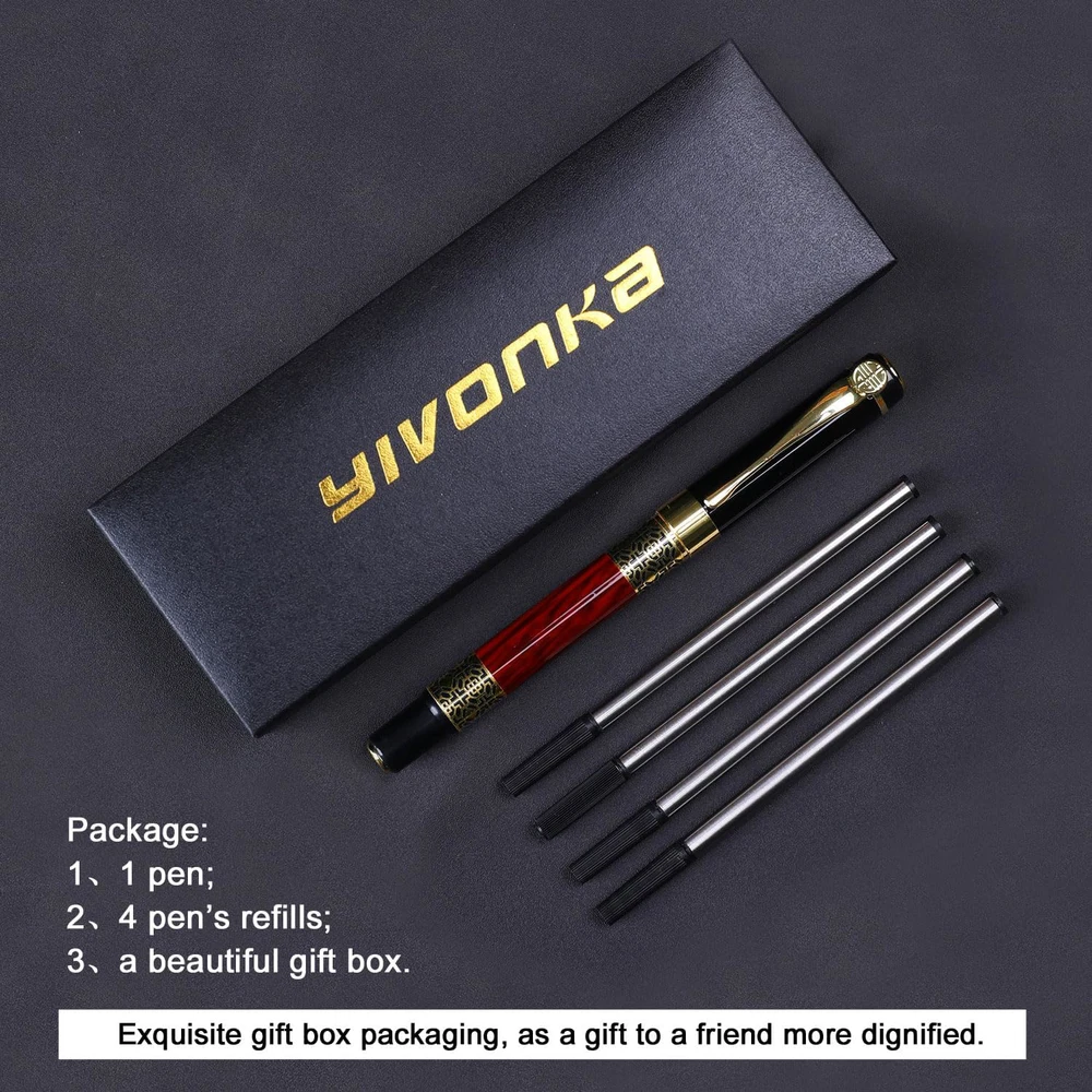 Fast Shipping Great Customer Support Satisfaction Guaranteed DESCRIPTION Shipping Shipping Shipping All domestic packages are shipped for Free (Unless other shipping method was selected during the checkout) Most items ship and arrive much sooner than the estimate delivery date. Usually within 2-3 days from payment. However, we have longer estimates to compensate for the occasional delay or supply chain breakdown. We do not accept P.O. BOXES - PLEASE PROVIDE A PHYSICAL ADDRESS Return Return Return In the event that you would like to return your purchase, we allow returns that are processed within the defined return date (the return date is to be found in the return policy/shipping and handling section) Please contact us for a return authorization and the return shipping address. Payment Payment Payment PayPal is our preferred method of payments it's the quickest, easiest and most secure way to pay for your goods or services online. PayPal offers buyer and seller protection should there be a problem. If you do not have a PayPal account, to get started and buy your first item with us is very easy. Simply click on the 'Buy It Now' button and follow the eBay checkout steps. Select PayPal as the payment method you then will be given the chance to enter your card details in to PayPal's secure checkout in order to pay for your order. Once the payment has been made, you will then be given the opportunity to make your own PayPal account to make paying for your items in the future very easy. Should there be a problem with payment please do let us know. Feedback Feedback Feedback Customer satisfaction is very important to us. If you have any problem with your order,please contact us and we will do our best to make you satisfied, please do not leave a negative feedback before we resolve your problem. We guarantee that your issue will be solved quickly. As long as you are happy with your purchase of , please leave us a positive feedback. Your feedback is very important to us it affects our search placement on eBay. We will leave a positive feedback for you in return automatically once we receive your feedback. Contact Us Contact Us Contact Us If you have any queries, please contact us via ebay. We usually respond within 24 hours on weekdays. Thank you for visiting our ebay store! ★Built to last: Our pen is made with a sturdy steel pipe and multi-layer baking paint, ensuring durability and longevity.nk for smooth, continuous writing that preserves your text for the long term. At 39g and 14.4cm/5.67inch, it's perfectly weighted and sized for comfortable use. ★Smooth writing: With a 0.5mm medium point and high-quality black ink, our pen provides a smooth and continuous writing experience that preserves your text for the long term. ★Classic design: Our pen's classical and retro design exudes charm and sophistication, providing a spiritual enjoyment that's sure to impress. ★Comfortable use: At 39g and 14.4cm/5.67inch, our pen is perfectly weighted and sized for comfortable use, making writing a pleasure. ★Complete Package: Get 1 Red pen, 4 refills, and 1 exquisite gift boxes in one package. ★Versatile: Our pen is perfect for learning and office writing, and makes an exquisite gift for relatives, friends, and business partners. ★Satisfaction guarantee: We stand behind our product with a 100% satisfaction guarantee and provide considerate service to every customer, ensuring you can purchase with confidence. ★Attention:Our store's gift pens are printed with the "YIVONKA" trademark on the gift boxes. After purchasing the gift pen, please make sure to check the product carefully. Thank you! 1、Product Description: ★This exquisite gift box ballpoint pen set is an ideal gift for valuable employees,helpful colleagues or loved ones. ★the design from classical style makes the whole branch full of classical and retro charm, so that the owner has spiritual enjoyment. ★This pen has a textured handle for a strong grip. It has a sense of balance and heavy- weight written on the smooth clean lines of the ball tip. 2、Usage scenario: ★It can be used for writing when students study; ★It can be used for business people to write in office; ★It can be presented as an exquisite gift to relatives, friends or partners. 3、Product information: ★Pen weight: 39g, pen length: 14.4cm/5.67inch, built-in Steel pipe, multi-layer baking paint. Usage: cover pulling type. ★we use high-quality ink,allow your pen to glide smoothly across any type of paper. ★You can replace the ink color with a refill from any local stationery store. ★Package: 1 pen, 4 pen refills and a beautiful gift box, sometimes we will give beautiful gifts; 4、Perfect service: ★we promise 100% return, customer satisfaction is our business purpose, bold and assured purchase, and we will give considerate service to every customer. Luxury Ballpoint Pen Refill - Gift Set for Men & Women - Classy Office Pens Click here to see description Fast Shipping Great Customer Support Satisfaction Guaranteed DESCRIPTION Shipping All domestic packages are shipped for Free (Unless other shipping method was selected during the checkout) We ship within two business days of payment, usually sooner Standard FREE shipping takes between 3-5 business days Expedited shipping takes between 2-3 business days Overnight shipping takes between 1-2 business days We do not accept P.O. BOXES - PLEASE PROVIDE A PHYSICAL ADDRESS We Ship Globally using ebay's GSP, the item is sent to a logistic center in KY and shipped from there to the rest of the world. International customers are responsible for all duties and taxes Contact your local authority for questions related to the amount of duties or taxes you will be responsible for Return In the event that you would like to return your purchase, we allow returns that are processed within the defined return date (the return date is to be found in the return policy/shipping and handling section) Please contact us for a re
