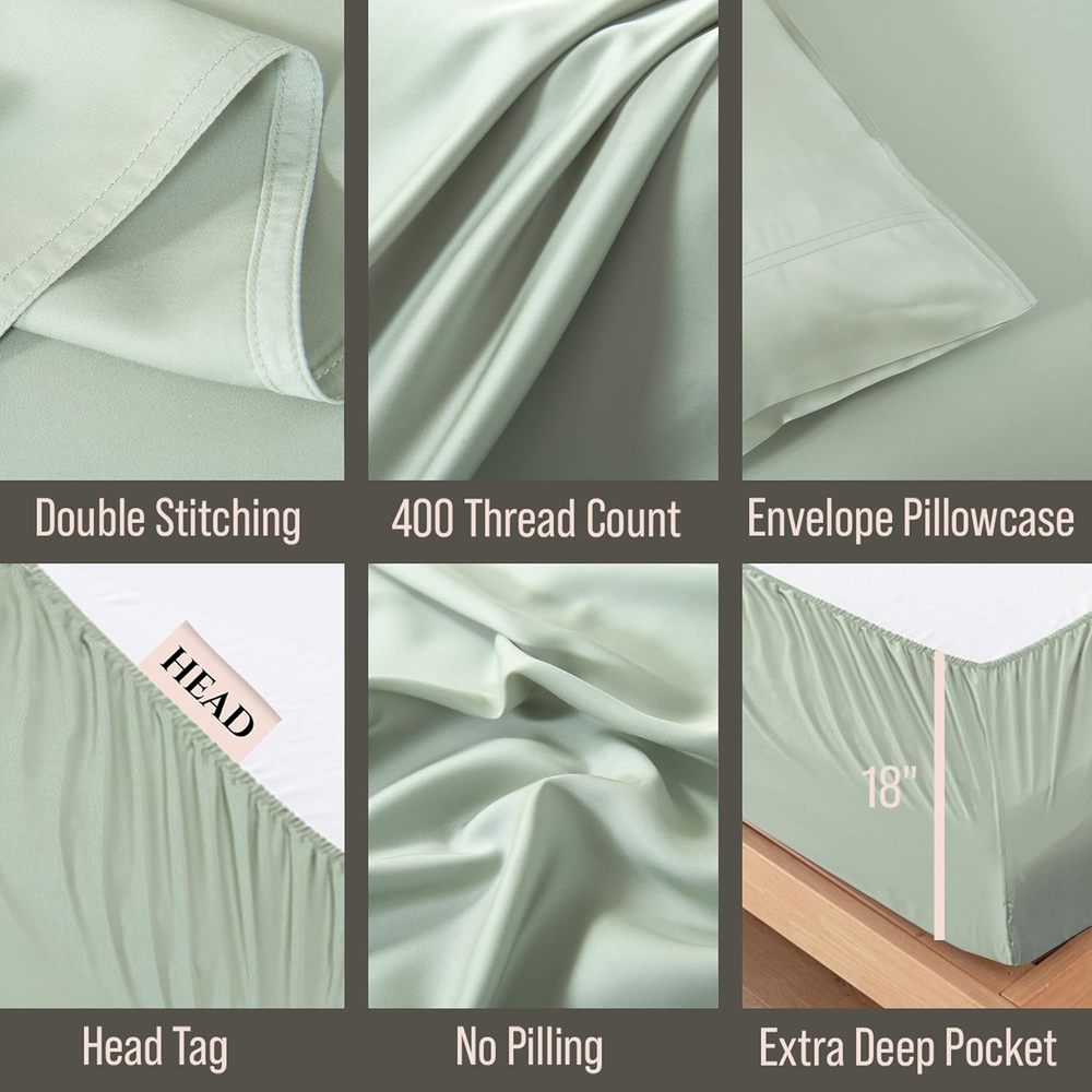 Store New Arrivals Add to Favorite View Feedback Contact Luxury Cal King Bamboo Sheet Set | Organically Grown | Ultra Soft | Cooling for Hot Sleepers | 18" Deep Pocket | Viscose Made from Bamboo [Sea Glass] Product Information Style Luxury Bedding Weave Type Sateen Pattern Solid Country of Origin China Theme summer Number of Pieces 4 Fitted Sheet Pocket Depth 18 Inches Pillowcase Quantity 2 Material Organically Grown | Viscose Made From Bamboo Age Range (Description) Adult Seasons Winter, Summer, Fall, Spring Package Dimensions 13.78 x 10.79 x 3.9 inches Included Components 2 Pillowcases, 18" Extra Deep Pocket Fitted Sheet, Flat Sheet Closure Type Envelope Item Weight 6.14 pounds Sham Quantity 2 Special Feature Cooling, 18" Extra Deep Pocket, Hypoallergenic, Sateen Weave, Moisture Wicking Color Sea Glass Thread Count 400 Product Care Instructions Machine Wash, Tumble Dry Size California King ABOUT US We are proud to be based in the United States, with all of our products shipping directly from within the country. Our selection includes home décor, furniture, sports equipment, tools, pet products, and more. If you have any questions about our products, we’re always happy to help. SHIPPING We are always working hard to ensure your package arrives as soon as possible. Please understand that some factors like weather, high postal traffic, and the performance of shipping companies are outside of our control. We offer free shipping to the lower 48 states and ship within 2 business days of payment, usually sooner. For shipping outside of the continental USA, we only use eBay's Global Shipping Program. The item is shipped to IL and then sent to the rest of the world. RETURNS We offer Free Returns for 30-Days on items which you are not completely satisfied with. You have the option for a full-refund or an exchange of the item. CUSTOMER SATISFACTION We try our very best to make sure every customer is completely satisfied. If there's a problem, message us! We're happy to help.