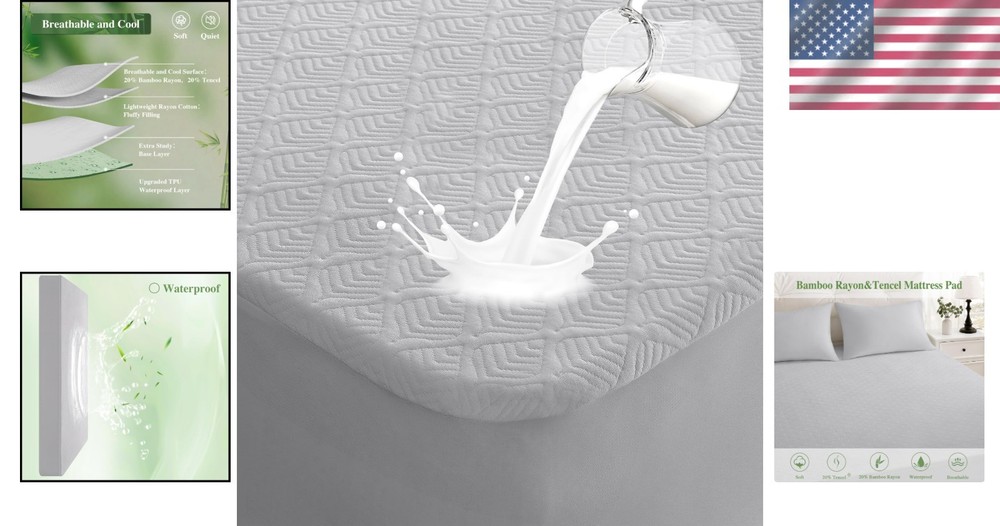 Luxury California King Waterproof Mattress Pad - Breathable & Washable Comfort ‹ › ‹ › ‹ › ‹ › ‹ › ‹ › ‹ › ‹ › ‹ › ‹ › ‹ › Luxury California King Waterproof Mattress Pad Breathable & Washable Comfort Immerse yourself in luxury with our waterproof mattress pad specially designed for a California King bed. Combining functionality with unparalleled comfort, this mattress protector is your ultimate sleep companion. Key Features: 100% Waterproof: Breathable yet utterly waterproof. Shield your mattress from spills, stains, and allergens, ensuring a hygienic sleep environment. Ultra Comfort: A harmonious blend of 20% bamboo rayon and 20% Tencel provides a smooth surface that reduces friction damage against the skin, ensuring skin remains fine and firm. Durable Design: Built to withstand regular washing without losing effectiveness or comfort, thanks to reinforced stitching and resilient fabric. Easy Care: Designed for practical use in everyday life, simply toss it in the washing machine for easy maintenance. Thoughtful Gift: Perfect for new parents, newlyweds, or anyone seeking to enhance their sleep quality, this mattress pad is a considerate choice for any occasion. Excellent Customer Service: Enjoy peace of mind with a 90-day return or replacement guarantee. Why Choose Our Mattress Pad? Say goodbye to uncomfortable nights with our Luxury California King Waterproof Mattress Pad. This exceptional protector not only guards against accidental spills of jams, beverages, and more, but it also enhances the comfort of your mattress through superior materials that breathe seamlessly. Invest in a worry-free sleep solution that combines functionality, durability, and thoughtful gifting, making it an intelligent choice for both yourself and your loved ones. Order now and embrace the luxury of restful sleep! Shipping Free & Fast Shipping - We offer free shipping to most of the USA with a normal delivery time of 3-7 days. However, due to the current situation, additional delivery time (up to 3 weeks) may be required for some items. Alternative Carriers - We may use alternative carriers (e.g. USPS, FedEx, UPS, etc.) to ensure your package arrives safely and on time. Due to the use of multiple carriers, we are unable to provide a tracking number automatically. Handling Time - Orders are processed and shipped within 1-2 business days of receiving cleared payment. Shipping Restrictions - Shipping to Alaska, Hawaii, Puerto Rico, Guam, and other US territories may incur shipping charges or delivery restrictions. Please contact us before ordering, or your order can be refunded/cancelled. State Restrictions - There may be restrictions based on your state of purchase. For example, certain items may not be shipped to California due to state regulations. Contact for Tracking Updates - If you require tracking updates or have any concerns about the delivery of your order, please feel free to contact us, and we will be happy to assist you. Return 30-Day Hassle-Free Returns - We want you to be completely satisfied with your purchase. If you are not, you can return the item within 30 days of receiving it for a full refund or exchange. Easy Return Process - To start a return, simply contact us and we will provide you with a prepaid return shipping label and detailed instructions. Restocking Fee - There are no restocking fees for returns. However, the buyer is responsible for return shipping costs if the return is not due to a seller's error. Refund Processing Time - Refunds will be processed within 5 business days of receiving the returned item in its condition. Payment We accept all major credit cards, PayPal, and Apple Pay for your convenience. Your payment information is secure and encrypted to ensure a safe and seamless transaction. Please complete your payment within 3 days of purchase to avoid any delays in shipping. Feedback Your feedback is extremely important to us. We strive to provide the best products and customer service possible. If you are satisfied with your purchase, please take a moment to leave us a positive review. If you have any concerns or issues with your order, please contact us before leaving negative feedback. We are committed to resolving any problems and ensuring your satisfaction. Contact Us If you have any questions or concerns, please feel free to out to our customer support team. You can contact us through the eBay messaging system. We are available Monday to Friday, 9:00 am to 5:00 pm EST, and we will do our best to respond to your inquiry within 24 hours. Buy it now and enjoy a pleasant shopping experience! Unit Quantity: 3.91 Material: Bamboo,Polyester,Bamboo Rayon,Tencel Features: Cooling,Hypoallergenic,Waterproof,Stain Protection,Washable Care Instructions: Machine Wash Theme: Luxury Department: Adults Room: Bedroom Size: California King Type: Mattress Protector Fill Material: Bamboo Closure Type: No Closure Color: Light Grey Insulation: All Seasons Style: Modern Shape: Rectangular Thread Count: 201-400 GSM (Grams per Square Meter): 301 to 450 Unit Type: lb