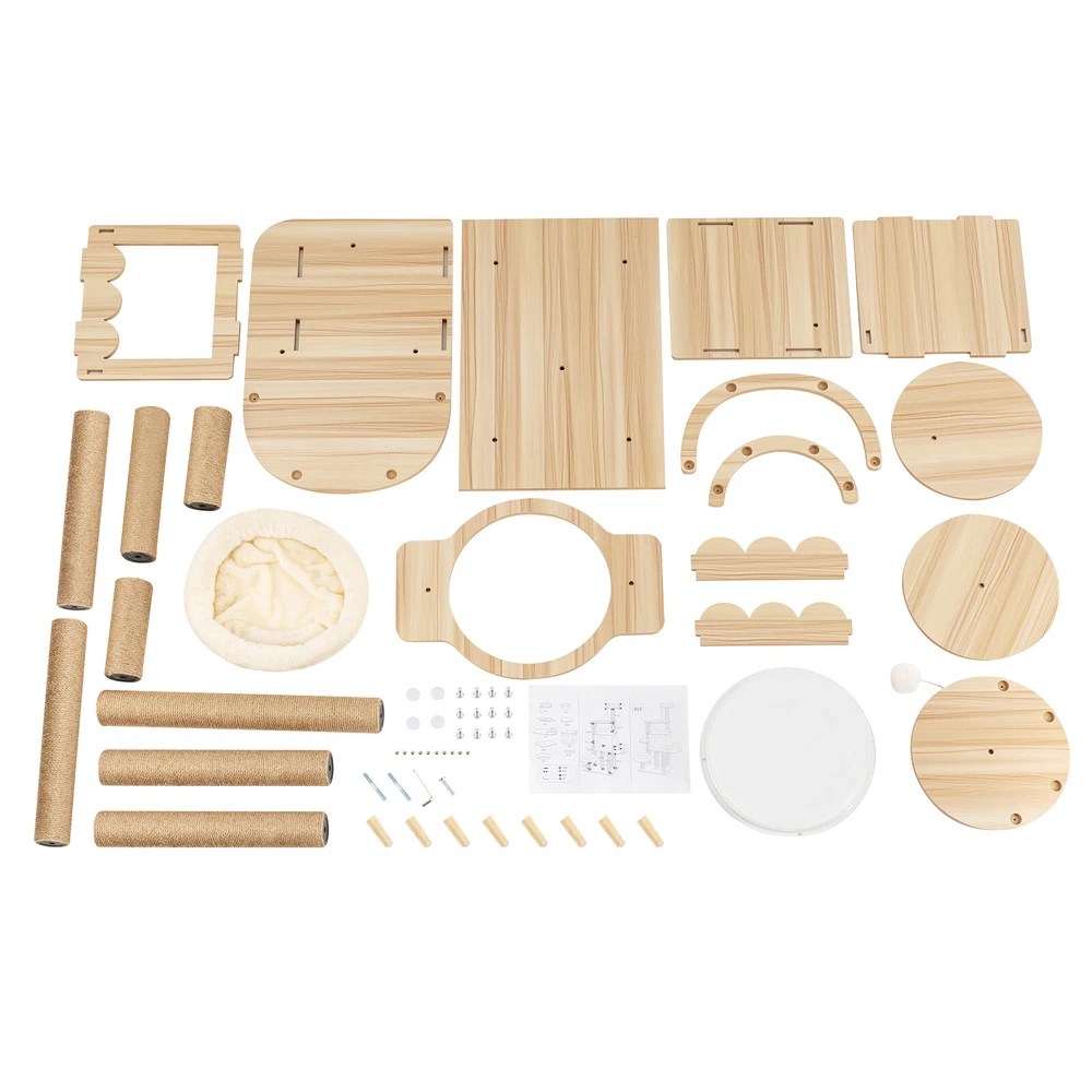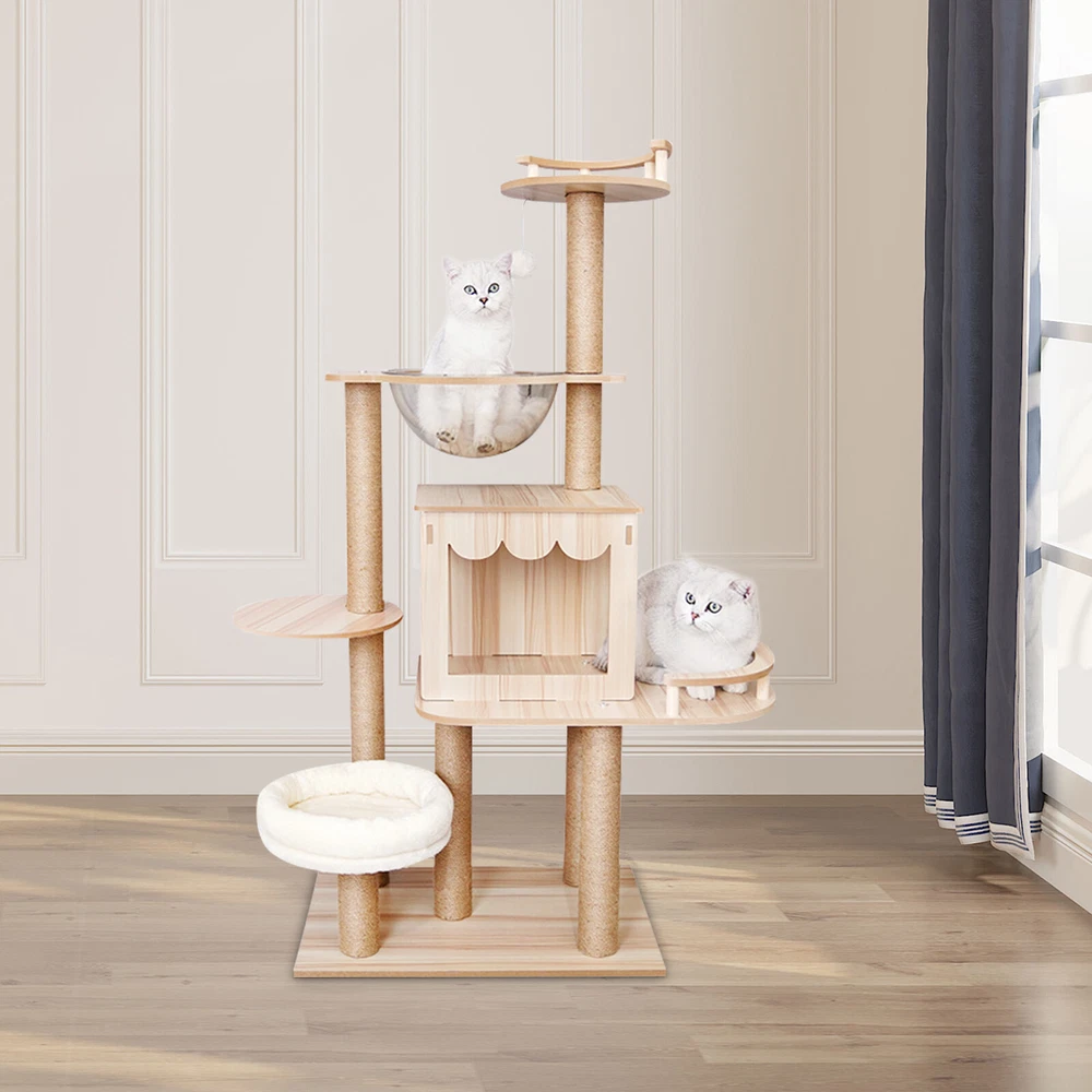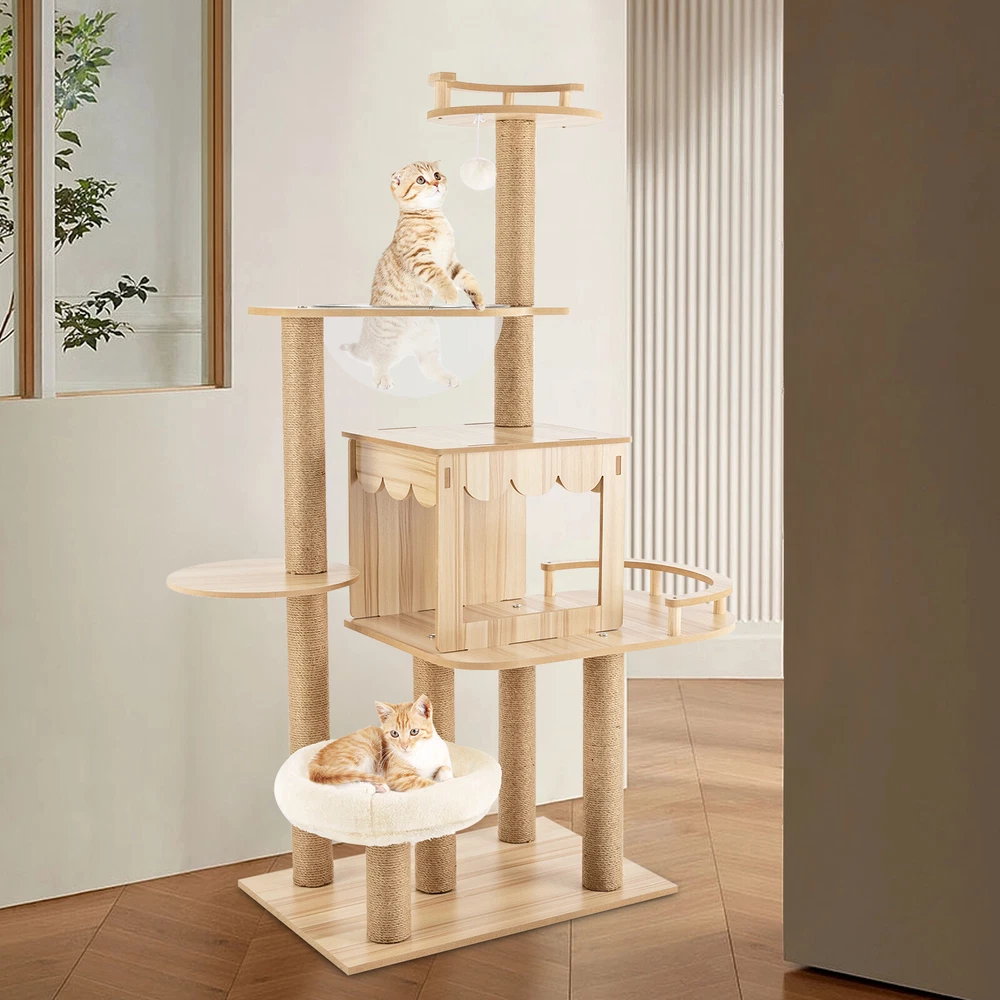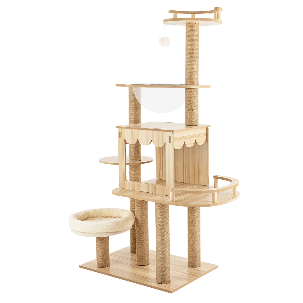 $ 76.835 Tier Modern Wood Cat Tree for Large Cats with Branch Perches