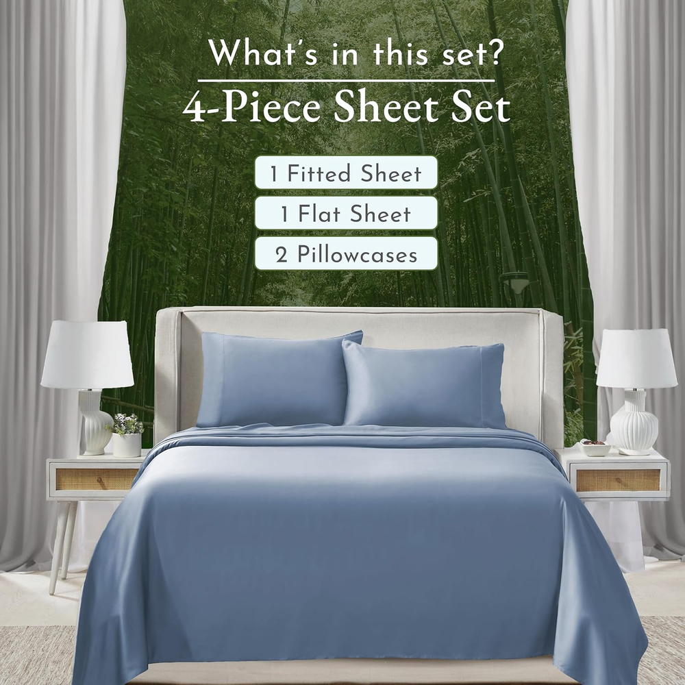 Store New Arrivals Add to Favorite View Feedback Contact Rayon Bamboo Sheets - Luxury Queen Sheets Set with Fitted Deep Pockets - Cooling Blue Hydrangea Description Item model number B0D2KZWZS1 Unit Count 4 Piece Style Modern Weave Type Sateen Color Blue Hydrangea Pattern Solid Product Dimensions 11.2 x 9.2 x 3.5 inches Material Rayon from Bamboo Fabric Type 100% Rayon from Bamboo Item Weight 1.86 pounds Theme Luxury Size Queen Seasons All, Winter, Summer, Fall Included Components 1 Flat Sheet, 1 Fitted Sheet & 2 Pillowcases Special Feature function(f) {var _np=(window.P._namespace("DetailPageProductOverviewTemplatesJava"));if(_np.guardFatal){_np.guardFatal(f)(_np);}else{f(_np);}}(function(P) { P.when('A').execute(function(A){ A.on('a:truncate:po-attribute-truncate-3:updated', function(data) { var isTruncated = !data.truncateInstance.getIfTextFits(); var seeMoreElement = document.getElementById('po-attribute-see-more-id-3'); if(seeMoreElement) { seeMoreElement.style.display = isTruncated ? '' : 'none'; } }) }); })); No-Shrink, No-Fade, All-Around Elastic, Soft Silky Sateen, Cooling, Deep Pocket, Head/Foot Side Indicator Tags See more Product Care Instructions Machine Wash, Tumble Dry Cool Comfort for Restful Sleep: Experience our luxuriously soft and silky 100% rayon from bamboo queen bed sheets set. This bedding set regulates temperature and wicks away moisture, keeping you cool and comfortable year round, with the luxurious feel of real silk bed sheets but without the luxury markup. Perfect Fit: Our 4 piece queen bed set includes a flat sheet (90"W x 102" L), a fitted sheet (60"W x 80" L), and 2 standard/queen pillowcases (20" W x 30" L). The fitted sheet features deep pockets and an all around premium elastic for a snug fit on mattresses up to 16 inches deep. A smart head side/ foot side tag ensures effortless, perfectly made beds every time. Durable & Easy to Care: This rayon from bamboo cooling sheets queen size set is crafted to withstand shrinkage, fading, and pilling. It maintains its luxurious softness and smooth drape even after countless washes. It is easy to care for this queen sheet set blue. Toss it in the washer and dryer, and enjoy the feeling of freshly laundered luxury every day. Certified Safe Premium Quality: Made from the finest 100% Rayon derived from Bamboo, our sheets are Oeko Tex certified and free from harmful substances. Rest easy knowing your bedding is safe, sustainable, and gentle on your skin. Sustainable Comfort: Crafted with care, our sheets embody the perfect blend of luxury and responsibility. We’ve donated over 22,000 bedding pieces to local US charities and package our products sustainably without plastic. Experience exceptional support from our dedicated customer care team with every purchase. Product Description Bed Sheet Set Range from California Design Den Add to Cart Add to Cart Add to Cart Add to Cart Add to Cart Add to Cart Customer Reviews 4.4 out of 5 stars 5,903 4.4 out of 5 stars 3,635 4.5 out of 5 stars 5,480 4.4 out of 5 stars 29,551 4.5 out of 5 stars 12,891 4.5 out of 5 stars 82,337 4.4 out of 5 stars 3,120 Price $64.99 $ 64 . 99 $109.99 $ 109 . 99 $87.99 $ 87 . 99 $64.99 $ 64 . 99 — $42.99 $ 42 . 99 $42.99 $ 42 . 99 Thread Count Bamboo Rayon 1000 Sateen 800 Sateen 600 Sateen 500 Sateen 400 Sateen Organic Percale Experience the Feel Silky Soft Luxuriously Smooth & Plush Soft & Buttery Smooth Soft & Crisp Soft & Silky Soft & Comfortable Crisp & Cool Weight Light Substantial Substantial Optimum Light Medium Light Cost guide 🪙🪙 🪙🪙🪙🪙 🪙🪙🪙🪙 🪙🪙🪙 🪙🪙🪙 🪙🪙 🪙🪙 Color Range 6+ Solid Colors 5+ Solid Colors 5+ Solid Colors 15+ Solid Colors & Prints 16+ Striped & Solid Colors 30+ Solid, Stripes, Prints 6+ Solid Colors Bed Sizes Available All: T, F, Q, K, CK, SK Queen & Above: Q, K, CK, SK All: T, F, Q, K, CK, SK All: T, T-XL, F, Q, K, CK, SK All: T, T-XL, F, Q, K, CK, SK All: T, T-XL, F, Q, K, CK, SK All: T, T-XL, F, Q, K, CK Extra Pillow Cases Available ✔️ ✔️ ✔️ ✔️ ✔️ ✔️ ✔️ Easy Machine Wash & Dry ✔️ ✔️ ✔️ ✔️ ✔️ ✔️ ✔️ 100% Inspected & Certified ✔️ ✔️ ✔️ ✔️ ✔️ ✔️ ✔️ Easy Returns & Refunds ✔️ ✔️ ✔️ ✔️ ✔️ ✔️ ✔️ ABOUT US We offer the best prices around on high quality products. Our E-store includes media such as books, movies, music and games while offering electronics, toys, sporting apparel, clothing, tools, general home, garden items and more. SHIPPING We are always working hard to ensure your package arrives as soon as possible. Please understand that some factors like weather, high postal traffic, and the performance of shipping companies are outside of our control. We offer free shipping to the lower 48 states and ship within 2 business days of payment, usually sooner. We do not accept P.O. Boxes. Please provide a physical address. For shipping outside of the continental USA, we only use eBay's Global Shipping Program.The item is shipped to KY and then sent to the rest of the world. International customers are responsible for all duties and taxes. Continue to check out in order to calculate costs for shipping the item to your country. Messages regarding eBay's Global Shipping Program MUST be directed at eBay EXCLUSIVELY. RETURNS We offer a 30-Day Return Policy on items which you are not completely satisfied with. You have the option for a full-refund or an exchange of the item. No returns are available on items shipped outside of the USA. PAYMENT We accept PayPal. CONTACT US This page content is yet to come Please ad us to your favorite seller and visit again later Thank You CUSTOMER SATISFACTION We try our very best to make sure every customer is completely satisfied. If there's a problem, message us! We're happy to help.