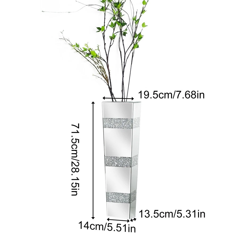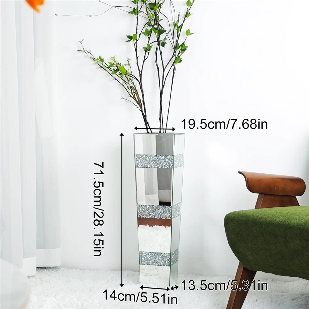 The vase features crystal diamonds and glass intricately inlaid into its surface, creating a dazzling and sparkling appearance that far surpasses the elegance of traditional glass vases, not only enhances the overall aesthetic appeal but also exuding opulence and luxury, with silver glass and diamonds reflecting light in mesmerizing effect, reflecting your refined taste in interior decoration Luxury Crushed Diamond Floor Vase Silver Large Vases Wedding Decor Living Room US SELLER, FAST ARRIVAL! Features: This flower vase boasts crushed diamonds inlaid the surface with silver glasses, adding more eye-catching sparkle and glamour to its overall design, making it stand out from traditional piece,great for holding large sized pampas grass or artificial flowers, instantly boost the living spaces Specifications: Style: Contemporary Type: Flower Vase Features: With Diamonds Materials: 60% MDF + 40% Glass Color: Silver Small for Tabletop- Occasion: Dining Table, Side Table, Entryway Table, Shelves Net Weight: 1.5kg/ 3.31 lbs Product Dimension: L * W * H total 7.5x10x30cm/ 2.95x3.94x11.81 inch Large for Floor- Net Weight: 7.85kg/ 17.31 lbs Product Dimension: L * W * H total 14x13.5x71.5cm/ 5.51x5.31x28.15 inch Package Includes: 1 x Crushed Diamond Flower Vase 1 x Instruction Guide Payment Terms of Sales Shipping Details Contact us About us Payment 1.We accept payment by credit card, paypal, Payoneer. 2.Upon on payment, please confirm your shipping address. Terms of Sales 1. We ship out all of our products brand new. 2. All products have passed quality inspection before shipment. Shipping Details 1.We are located in NJ, CA ,all the items will be shipped via USPS, UPS Ground, Fedex Ground with tracking number provided. 2. We cannot ship to Alaska, Hawaii & Puerto Rico Addresses. Contact us 1. If you are satisfied with the transaction pls remember to leave us a positive feedback 5-star will be much appreciated. 2. Normally your email would get replied within 24 hours (Business Hours) and your issue will be followed up carefully till we 've reached an agreement. 3. Please contact us first if you have any question or suggestion before opening a case or dispute, leaving any neutral or negative feedback. About us We are professional supplier of Home, garden and household products, such as plant stand, bahroom mirrors, TV Mount, Pet Bed, Pet Supplies, Coat racks, Home Furniture etc. Hope you can buy your favorite products in our store. We are manufacturer of bathroom mirrors for decades, our mirrors well received from over 130 countries. The first class factory and skilled technique, pls feel free to contact us if you want drop ship or large procurement. Brand UNHO Style Contemporary Type Floor Vase Material 60% MDF + 40% Glass Shape in the picture Theme Art Department Adults MPN GD599ELS513 Color Silver Origin Vienna