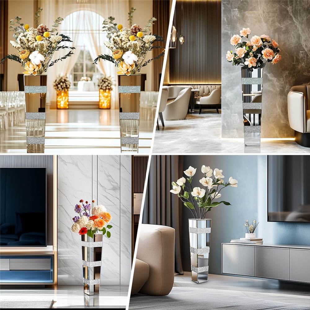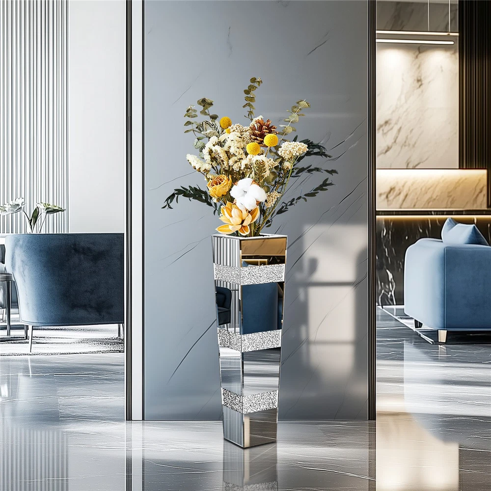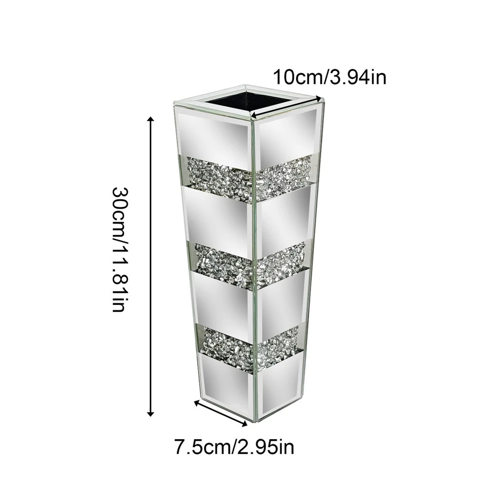$ 64.02Crushed Diamond Mirrored Flower Vase Crystal Silver Glass for Decor Floor/Table