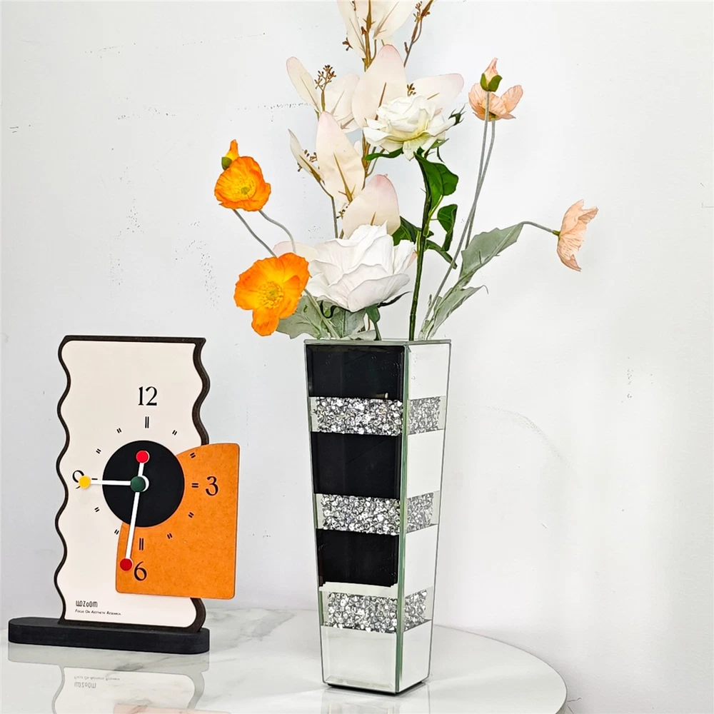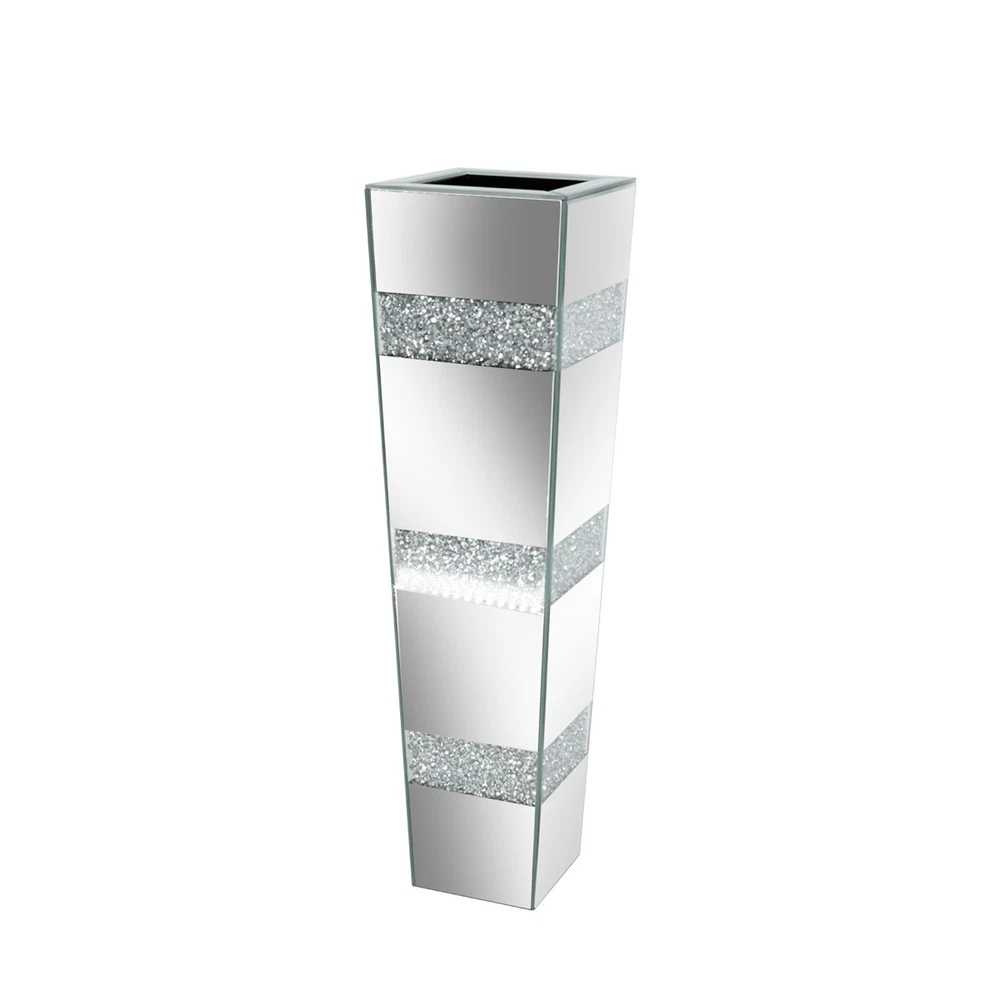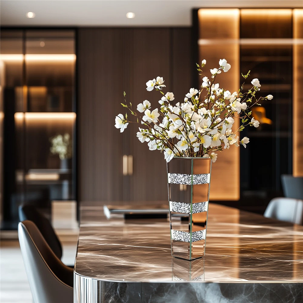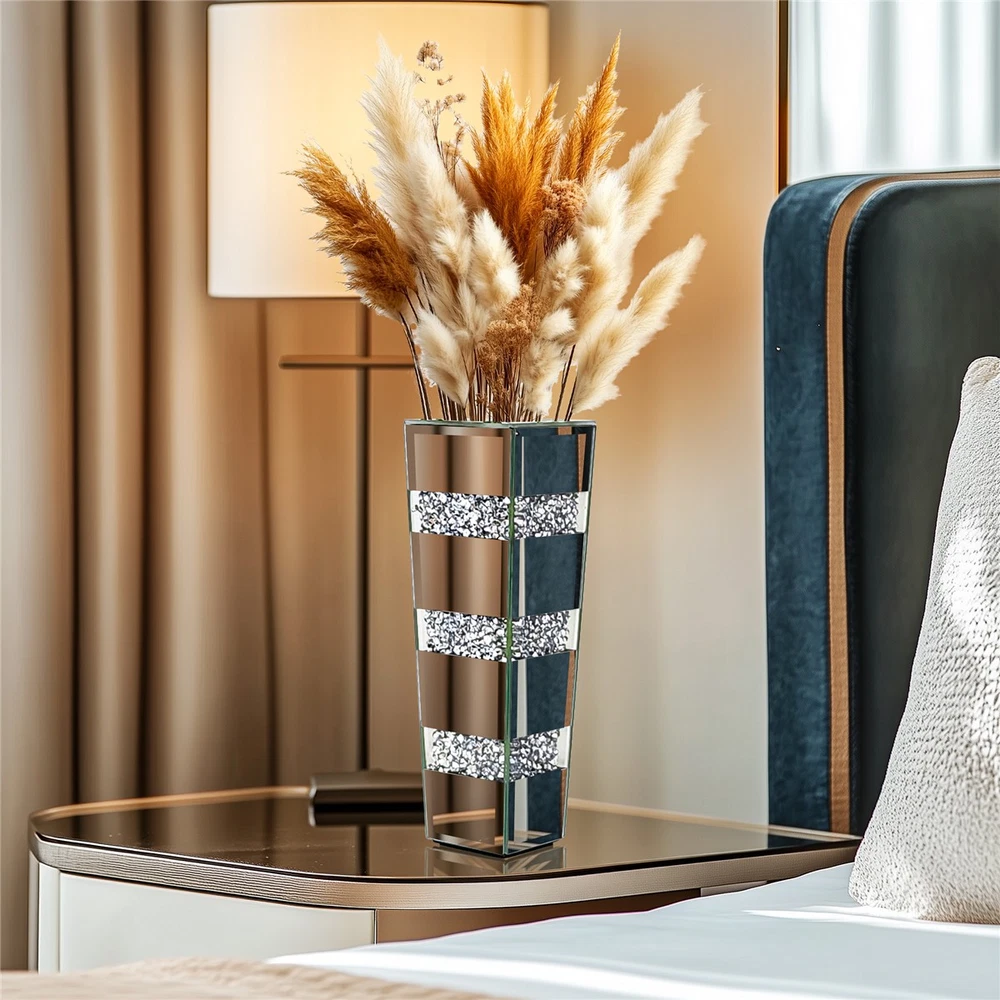 $ 64.02Crushed Diamond Mirrored Flower Vase Crystal Silver Glass for Decor Floor/Table
