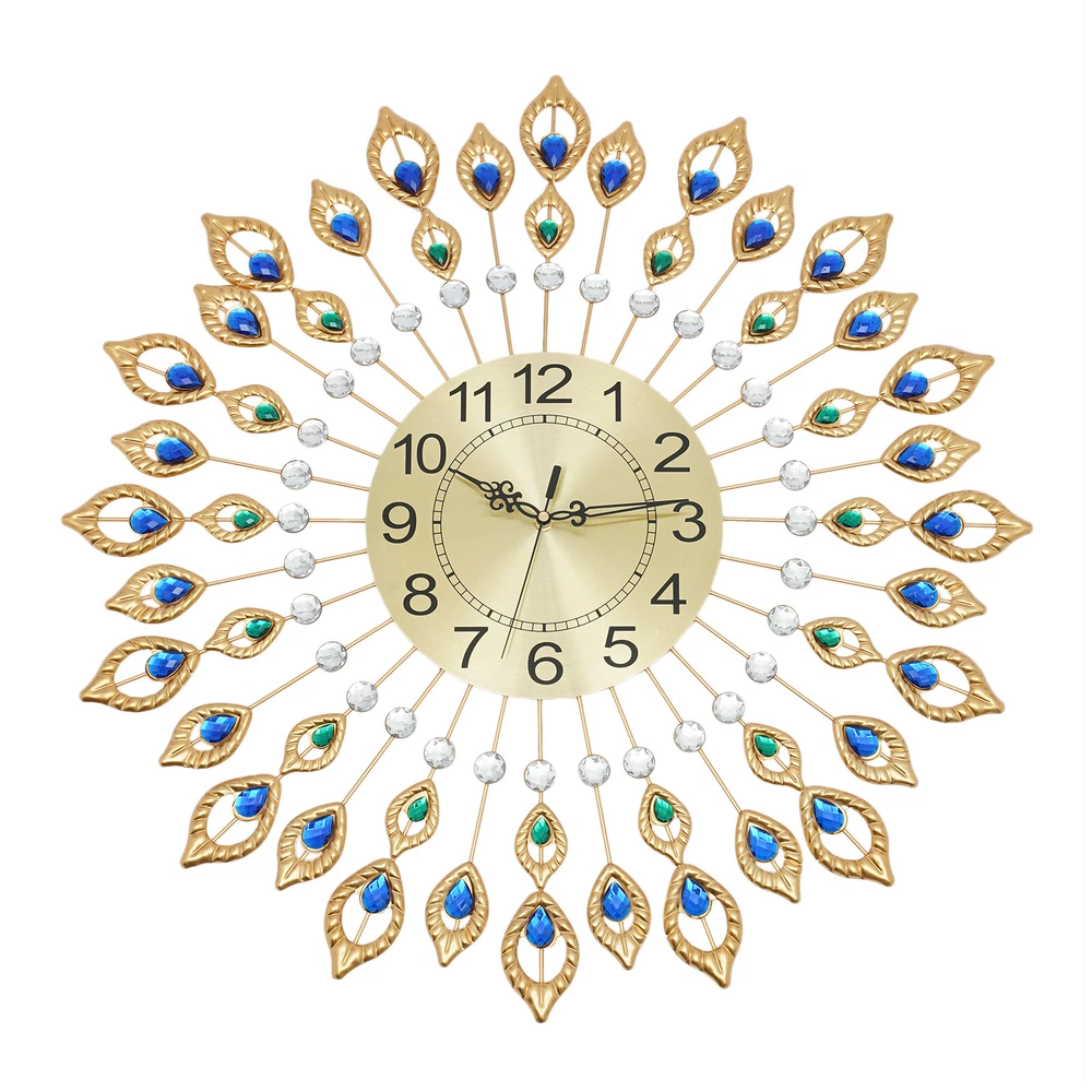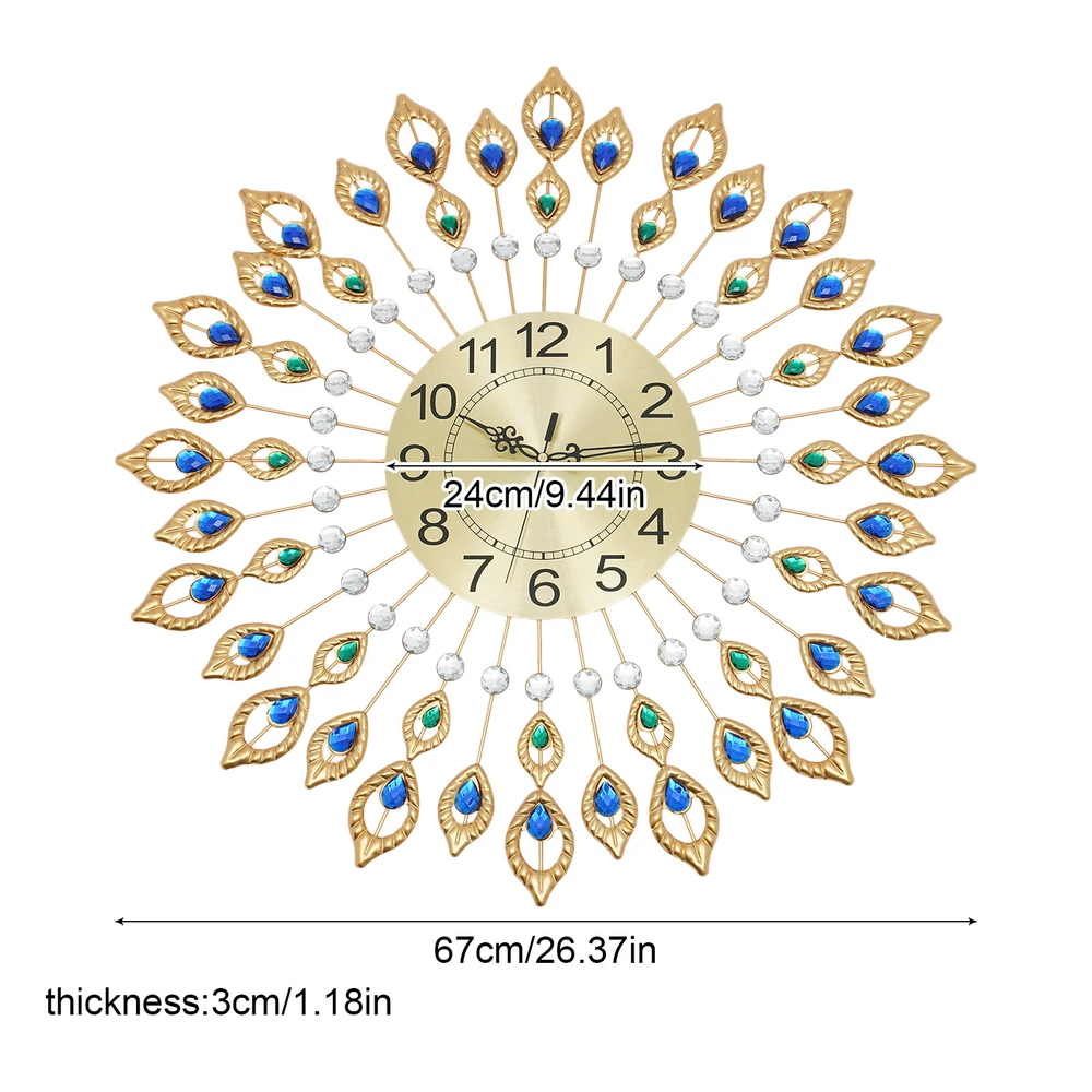 Luxury Crystal Peacock Large Wall Clock Metal Wall Watch Living Room Decor Gift.