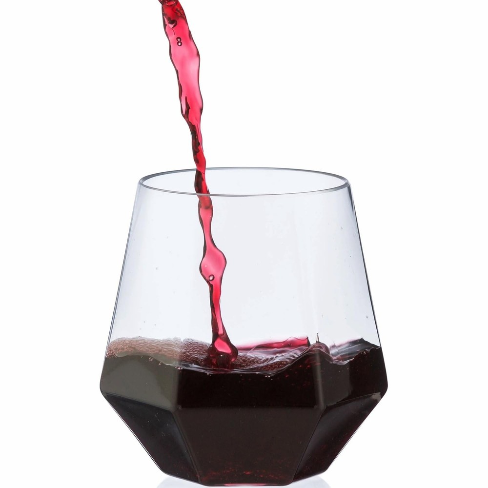 These elegant and practical wine goblets are a must-have for the frequent party hostess! Use it for Whiskey Glasses, Scotch, Bourbon Glasses, wine cups, champagne cups, cocktail cups, juice cups, dessert cups, and more. ELEGANT CRYSTAL GLASSWARE: Enjoy a luxurious wine-drinking experience with these premium, lead-free crystal stemless wine goblets that add a touch of sophistication to your table setting DURABLE GLASSWARE: Invest in high-quality, sturdy wine goblets that withstand the test of time, featuring a solid base for enhanced stability and an ergonomic grip for comfortable sipping PREMIUM DIAMOND-CUT DESIGN: Impress your guests with the exquisite diamond-cut pattern adorning these stemless wine goblets, reflecting light beautifully and elevating the look and feel of any occasion TASTEFUL TABLESCAPES ENHANCER: Achieve a picture-perfect tablescape with these gorgeous crystal wine goblets, perfect for dinner parties, romantic evenings, or quiet nights in, complementing any décor or theme IDEAL GIFT FOR WINE ENTHUSIASTS: Treat the wine lovers in your life to a set of six stunning, 12 oz diamond-cut stemless wine goblets, making for a memorable and thoughtful gift for birthdays, weddings, anniversaries, or housewarmings