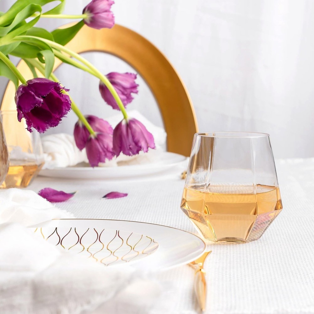 These stemless wine goblets are stunning and versatile—perfect for wine, cocktails, or even desserts. The diamond-cut design adds elegance, and the durable lead-free crystal feels premium without being fragile. Great for entertaining or everyday use, they elevate any drink while being practical enough for regular handling. A fantastic value for a set of six!