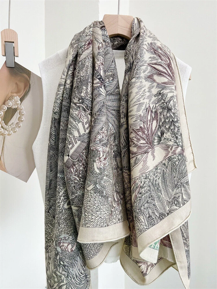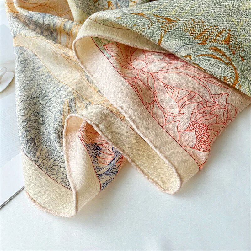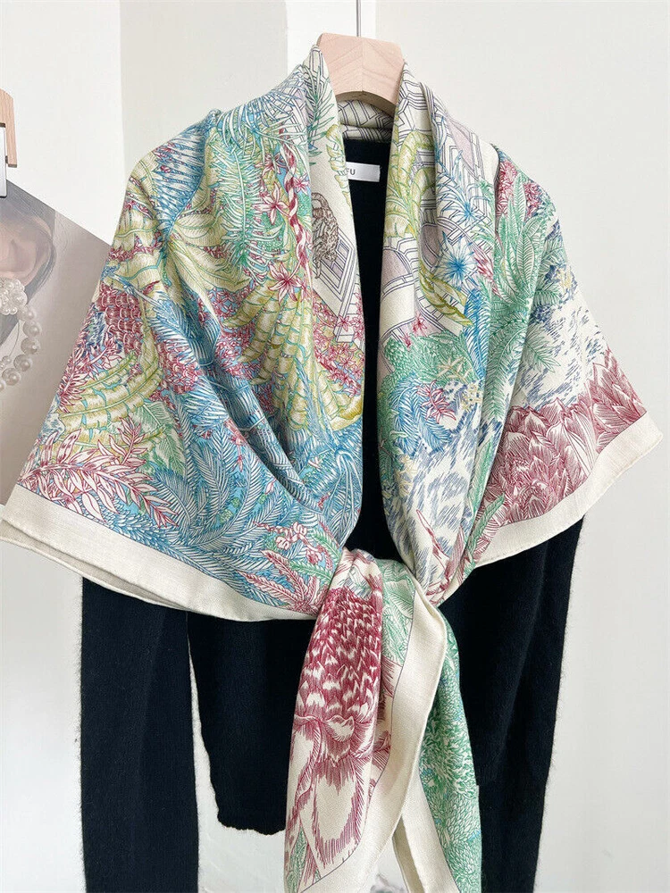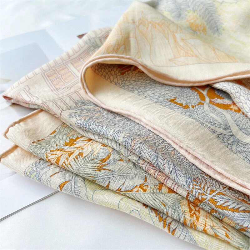Luxury 70% Cashmere 30% Silk Double-Sided Square Shawl 135cm Wrap Scarf