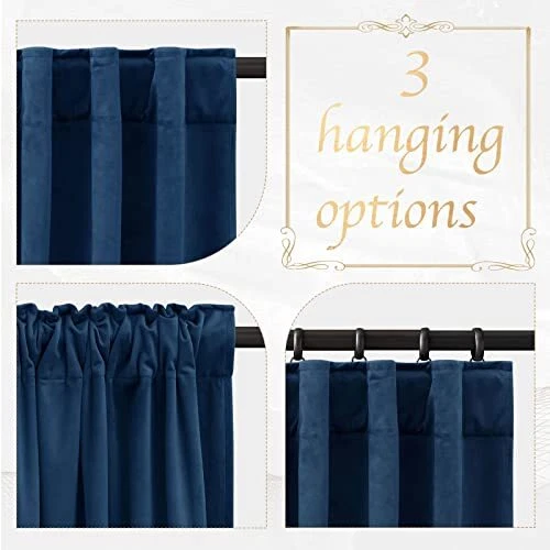 Return Policy Fast Delivery Trusted seller Luxury Elegant Navy Blue Velvet Curtains, Back Tab Rod Pocket Window Treatment for Living Room/Bedroom/Home Theatre (1 Pair, 108 inches Long) Product Description Velvet Imported WELL MADE: Sold as 2 panels velvet curtains, each panel is 52" width x 108" length(from top edge of curtain to bottom). Both back loop and rod pocket style per panel each with 3.3 inch inner diameter create different looks easily. LUXURY LOOK: Made from a brush fabric with a soft plush pile and a subtle sheen, Plush, lustrous velvet with a vintage feel, elegantly accents your home's windows. LIGHT DIMMING: Show off Selection creates you a disturb free theater like space by impeding most light that comes from outside and helps insulate windows. Add a blackout liner(ASIN: B01KX0LVRC) to block unwanted light, making it ideal for a nursery or bedroom. SOUND DAMPENING: Plush velvety fabric helps you decrease few outside noise and can get the reflected sound be absorbed. Hang curtains in the bedroom, living room, office, children's room and other different spaces according to your needs. EASY CARE: Good quality finishing will withstand years of use. Machine washable and Wash the water temperature below 86℉. Mild detergent no bleaching. Quick ironing when needed. Please be free to contact us if you have any question with our products. Shipping Returns Payment Shipping Shipping is FREE to all addresses other than APO/PO boxes in the lower 48 states. All our stock ships from US-based warehouses. Shipped via USPS or UPS (depending on location and package weight) Unless stated otherwise, all orders will ship within 24-72 hours of your payment being processed. Check our feedback to see the great reviews of FAST shipping we offer. Returns Seller does not accept returns Payment We currently accept payment via eBay managed payments only. Once payment is cleared, we will dispatch your shipment within 1-3 business days. Please refer to the "Shipping" tab for more information regarding shipping speed to your destination.