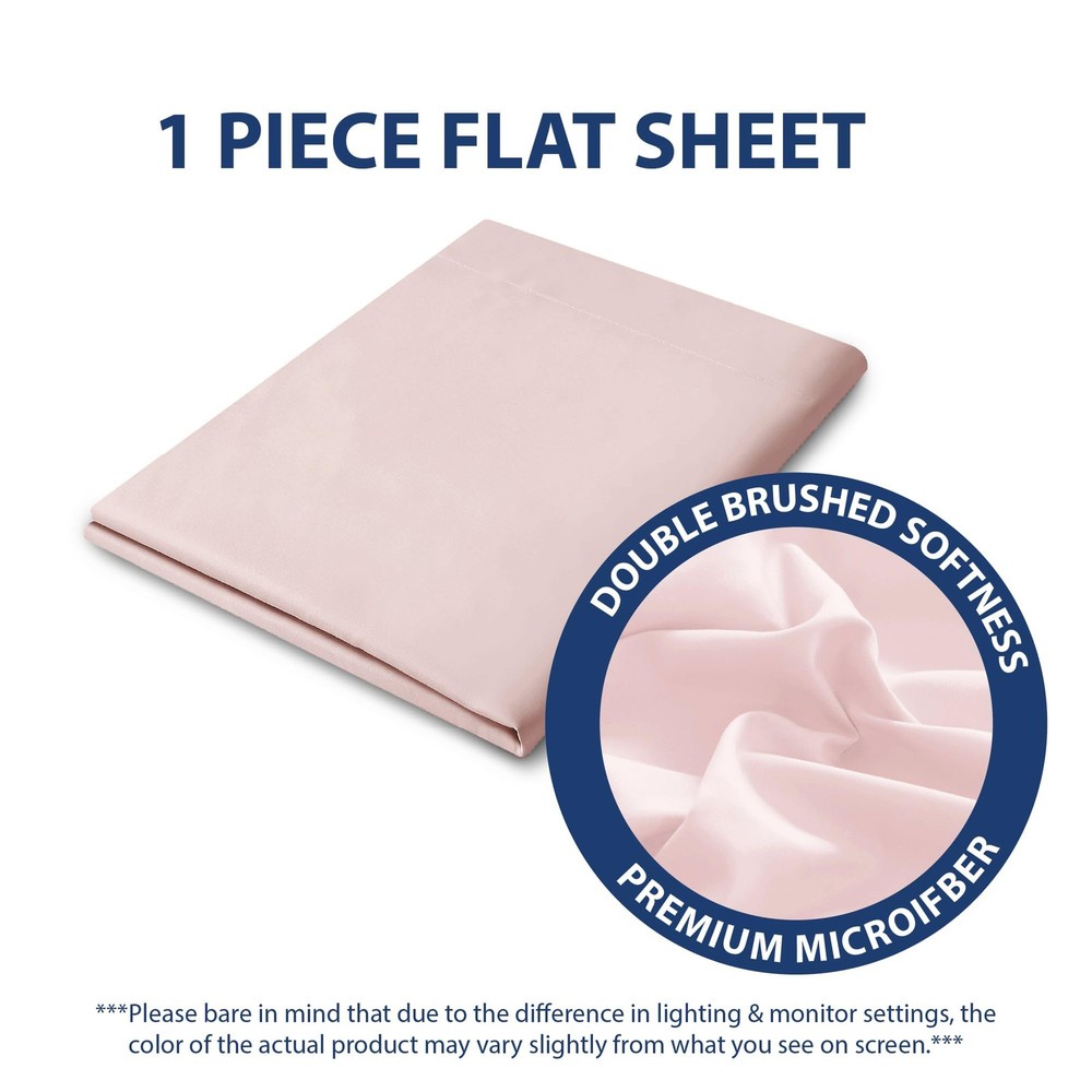 A good night's sleep starts with the right bedding, and sometimes, you find yourself in need of replacing only part of that bedding. Why pay for a whole new set when only piece is ripped, stained, or simply worn out ? With this great deal on a single flat sheet, you don't have to ! The super-soft and silky-smooth feel microfiber fabric is hypoallergenic, and its array of solid colors allows you to match the rest of your existing bedding or shake things up with a coordinating hue. WHAT’S INCLUDED - King size: 1 Flat Sheet 102" x 105". IRRESISTIBLE BEDDING - This beautiful flat sheet will enhance the comfort of your bed and the style of your bedroom. Made of 100% double brushed microfiber, it is lightweight, durable, and buttery soft. *Microfiber is an umbrella term for ultra-fine synthetic fibers that are commonly made from polyester and polyamide. HOME ESSENTIALS - Available in a wide assortment of vivid color options ranging from neutral to bold, this flat sheet, suits any style. *Please bare in mind that due to the difference in lighting and monitor settings, the color of the actual product may vary slightly from wht you see on screen. EASY CARE - They are also machine washable and quick drying for easy care. OEKO-TEX CERTIFIED - Tested and certified to be free from harmful chemicals, the sheets meet high safety standards.