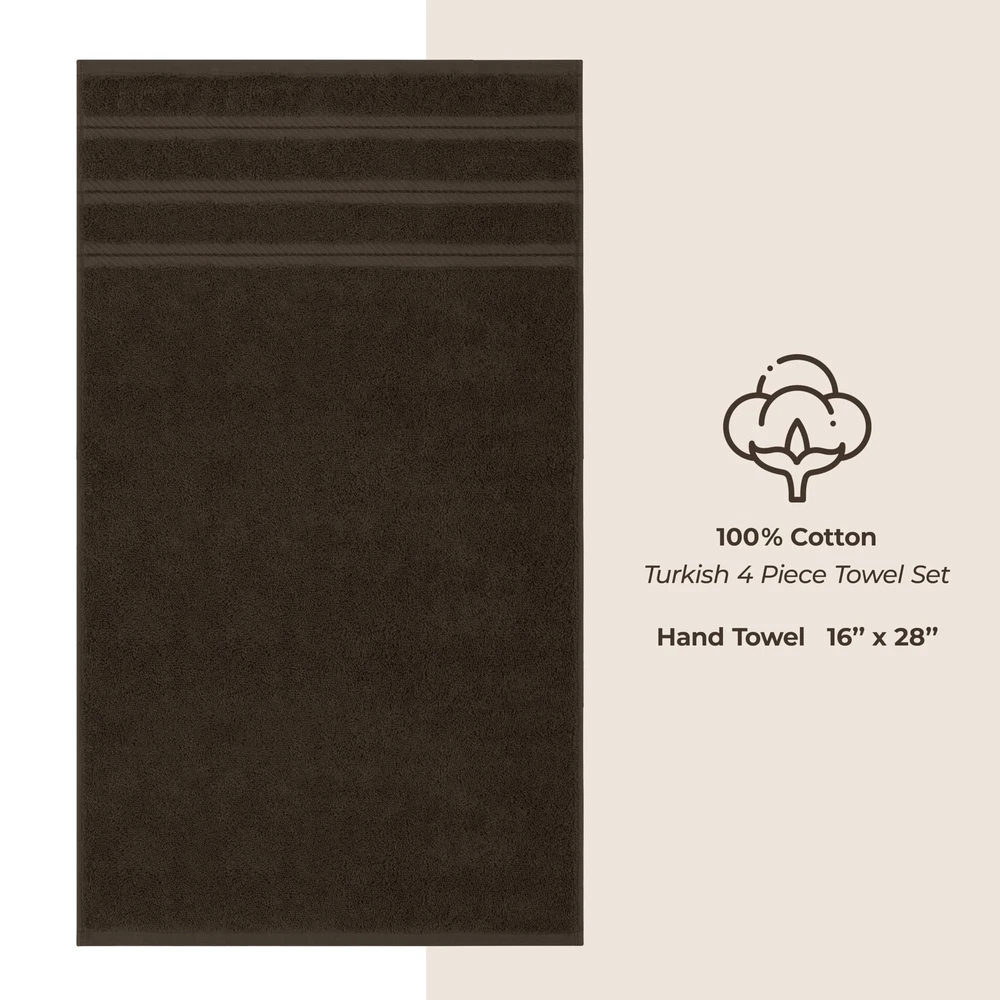 Brand: American Soft Linen Weight: 1.57 Pounds Size: Hand Towel Set of 4 Color: Chocolate Brown Package Dimensions LxWxH: 9.57x8.46x4.17 Inches gtin13: Does not apply Material: Does not apply UPC: Does not apply Type: Does not apply