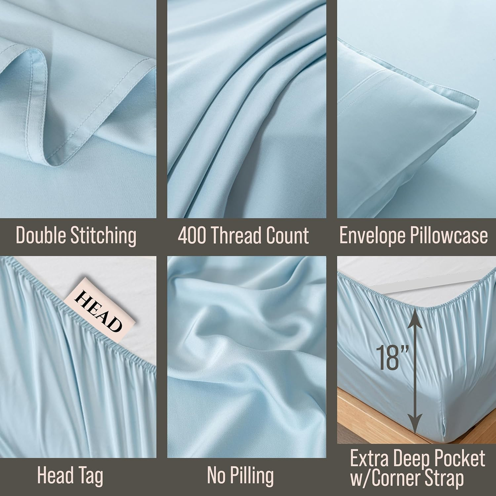 Store New Arrivals Add to Favorite View Feedback Contact Luxury King Sheet Set | Organically Grown | 100% Viscose Made from Bamboo | Ultra Soft | Cooling for Hot Sleepers | 18" Deep Pocket [Coastal Blue] Description Age Range Description Adult Weave Type Sateen Pattern Solid Material Type Organically Grown | Viscose Made From Bamboo Theme Coastal Unit Count 1 Count Fitted Sheet Pocket Depth 18 Inches Pillowcase Quantity 2 Material Organically Grown | Viscose Made From Bamboo Seasons Winter, Summer, Fall, Spring Additional Features Cooling, 18" Extra Deep Pocket, Hypoallergenic, Sateen Weave, Moisture Wicking Included Components 2 Pillowcases, 18" Extra Deep Pocket Fitted Sheet, Flat Sheet Closure Type Envelope Occasion Everyday/Casual Sham Quantity 2 Color Coastal Blue Thread Count 400 Global Trade Identification Number 00850020822300 Style Name Luxury Bedding Product Care Instructions Machine Wash, Tumble Dry Size King RECHARGE YOUR SOUL- Embrace yourself in the luxury of 100% viscose made from bamboo sheets and you will wake up feeling renewed and refreshed. Lightweight and silky, hypoallergenic and moisture-wicking, these sheets keep you cool in summer and warm in winter. REDEFINE YOUR LIFESTYLE- With a 400 thread count, the superior quality of these viscose derived from bamboo sheets are a dream to sleep on, getting softer with every wash. The 18" extra deep pocket fitted sheet will fit even the most plush pillow top mattresses. RENEW YOUR SLEEP - You can rest well in luxury bedding knowing that your sheets have been tested and certified to be free of over 100 harmful chemicals with the OEKO-TEX 100 certification. REINVIGORATE YOUR RELATIONSHIP - Enhance every part of your relationship as you cozy up with your loved one and enjoy the silky, soft, woven bliss of viscose made from bamboo. ADD TO CART WITH CONFIDENCE in our 100% Customer Satisfaction Guarantee! Product Description The BELLA COTERIE Difference · EASY TO CARE FOR- Simply wash and dry. · ULTRA SOFT- As soft as silk; softer than all types of cotton. · COOLING- Greatly reduces and can even eliminate night sweats. · MOISTURE WICKING- Naturally wicks moisture away, keeping the sheets dry and free of allergens. · BREATHABLE- Light and airy to make sure your skin can breathe. · HYPOALLERGENIC- Perfect for those with sensitive skin. What does the label mean? If a textile article carries the STANDARD 100 label, you can be certain that every component of this article, i.e. every thread has been tested for harmful substances and that the article therefore is harmless for human health. The test is conducted by independent OEKO-TEX partner institutes. In the test they take into account numerous regulated and non-regulated substances, which may be harmful to human health. OEKO-TEX Certification Number BJ025 164353 TESTEX Certification Granted: 12/24/2023 Certification Expires: 01/31/2025 FEATURES OF BELLA COTERIE SHEETS DOUBLE STITCHING- Ensures that your sheets are durable and will last. 400 THREAD COUNT- The highest thread count available in viscose, derived from bamboo, materials to give you the softest sheets on the planet. ENVELOPE PILLOWCASE- Designed to ensure that your pillow remains where it is supposed to, inside the case. HEAD TAG- We have thought of every detail. No longer will you have to wonder which way your fitted sheet goes. NO PILLING- We use extra long threads so that your sheets will not pill. 18" EXTRA DEEP POCKET- Your sheets will finally stay on the bed without the corners coming up. AMAZING, LUXURIOUS, DESIGNER COLORS CHAMPAGNE WHITE GREY MIST TWILIGHT BLUE COASTAL BLUE IVORY DUNE SEA GLASS SLIP INTO LUXURIOUS COMFORT WITH 100% VISCOSE, MADE FROM BAMBOO, BED SHEETS BELLA COTERIE Bed Sheets envelope you in elegance and comfort so you can drift off to sleep with ease. 100% viscose sheets from organically grown bamboo are silky-smooth, with a beautiful drape and soft sheen. Featuring a 400 Thread Count, the highest available in viscose, made from bamboo, our sateen weave pure viscose sheets boast a silky-softness reminiscent of a 5-star resort. PAMPER YOURSELF WITH THE ULTIMATE SHEET EXPEREINCE Few would argue there is any greater pleasure than sliding into a comfortable bed outfitted with soft, smooth sheets that pamper your skin after a long, hard day. This sheet set includes everything you need to sleep in the lap of luxury. A BETTER SLEEP EXPERIENCE These super-soft sheets are designed to naturally regulate temperature by wicking sweat away, keeping you cool and comfortable as you sleep. Viscose, derived from bamboo, is very light and airy, providing a cooler sleep experience than many microfiber, silk, or combed cotton alternatives. Certified to be free of the harmful chemicals found in many sheets, this luxury bedding promotes a deep, natural, and healthy sleep. The high-end construction and details deliver a perfect, lasting fit and feel. These sheets are perfect for those with sensitive skin. PERFECT FOR ANY ROOM AND EVERY BED Pure, premium viscose sheets are ideal for every bedroom, including the master bedroom, guest room, or kids’ room — they also make a luxurious addition to an RV or vacation home. Our chic and stylish colors are on trend, yet also complimentary for a more traditional look. We know that you love your extra-large, pillow-top mattress, which is why we’ve designed our sheets to fit conveniently and easily around it. Each sheet set comes with 18" extra deep pockets, so you no longer have to worry about the corners coming up. GIVE THE PERFECT GIFT Show someone how much you love them when you give the gift of luxurious comfort for Valentine’s Day, Mother’s Day, Father’s Day, or Christmas. BELLA COTERIE sheets make the perfect wedding registry gift for newlyweds. ABOUT US We offer the best prices around on high quality products. Our E-store includes media such as books, movies, music and games while offering electronics, toys, sporting apparel, clothing, tools, general home, 