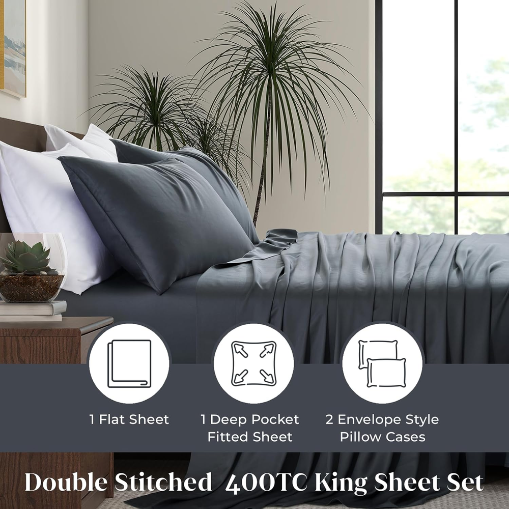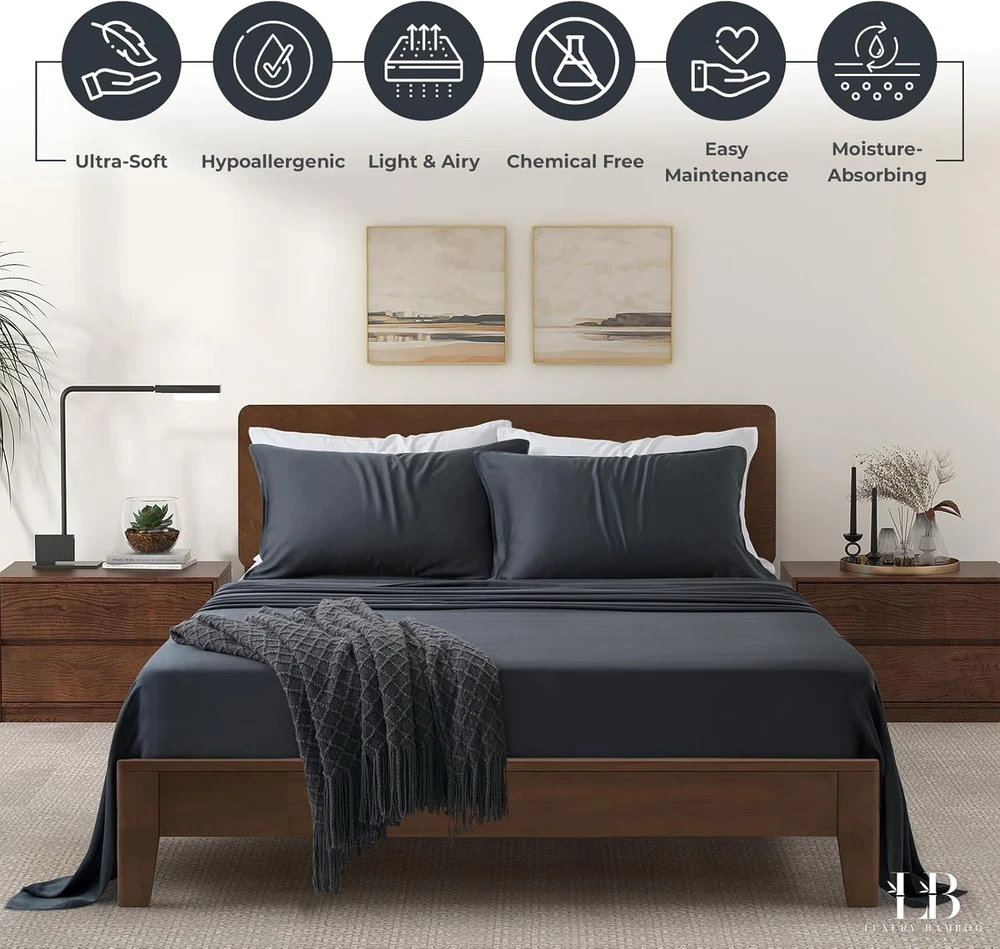 Store New Arrivals Add to Favorite View Feedback Contact Luxury Bamboo Market | King Size Bed Sheet Set | 100% Viscose Made from Bamboo | Organically Grown | Ultra Soft | Cooling Sheets for Hot Sleepers | 17" Deep Pocket [Charcoal Grey] Description Closure Type Envelope Weave Type Sateen Unit Count 4.0 Count Age Range Description Adult Color Charcoal Grey Pattern Solid Material Organically Grown Bamboo Viscose Material Type Organically Grown Bamboo Viscose Theme Solid Style Name Luxury Thread Count 400 Seasons Winter, Summer, Fall, Spring Included Components 17" Deep Pocket Fitted Sheet, 2 Envelope Pillowcases, Flat Sheet Additional Features Cooling, Deep Pocket, Sateen Weave, Wrinkle Resistant Pillowcase Quantity 2 Product Care Instructions Machine Wash, Remove Promptly, Tumble Dry Low Size King Sustainable Luxury: Delight in the thoughtfully crafted comfort of our sheets, made from 100% viscose made from bamboo. Organically grown and harvested, our premium 400-thread-count luxury sheets provide a resort-style look and feel. Unrivaled Softness and Cooling Comfort: Our silky sateen weave sheets provide extra smooth, touchable softness and temperature-regulating properties, perfect as cooling sheets for hot sleepers, ensuring a serene and restful night's sleep. Certified Health-Conscious Comfort: Rest assured with our OEKO-TEX certified 100% viscose made from bamboo sheets, which meet high safety and environmental standards. They're hypoallergenic and ultra-soft, catering to your skin with the gentlest touch. Crafted for Longevity and Ease: Double-stitched for enhanced durability and designed to resist pilling, our 100% viscose made from bamboo sheets maintain their pristine condition over time. They're easy to care for, getting softer with each wash, and offer moisture-wicking capabilities for lasting freshness. Tailored Fit and Elegant Design: Our envelope pillowcases add a sophisticated touch to your bedding ensemble. The combination of double stitching, envelope style and durable design ensures your pillow stays in place all night long. Product Description 1 Gentle on Skin 2 Hypoallergenic 3 Designer Colors Why choose Luxury Bamboo Market sheets over cotton, synthetic, or other bamboo blends? Our luxury bamboo sheets offer unmatched softness, breathability, and moisture control compared to cotton, synthetics, and other bamboo blends. Crafted from Moso bamboo fiber, they ensure long-lasting, year-round comfort for all What sets our 100% Organic Bamboo sheet sets made exclusively from Mao Zhu (Moso) bamboo apart for quality and comfort? Crafted from premium organically grown Moso bamboo viscose, our sheet sets boast single-ply yarn, 400 thread count, and double stitching for durability. Experience supreme softness, moisture-wicking, and temperature regulation for the ultimate sleep. How should I care for Luxury Bamboo Market sheets to maintain their quality and durability? Simply machine wash in cool water with mild detergent, select gentle cycle w/ low spin during rinse. Tumble dry low, and promptly remove from the dryer to avoid wrinkles. Avoid bleach, and opt for smaller loads to ensure even drying and minimize wear How do Luxury Bamboo Market's sheets reflect our commitment to sustainability? LBM sheets are crafted with durability and quality in mind, using 100% Moso Bamboo—a resource known for its renewability. This reflects our commitment to providing premium bedding while maintaining high standards of product integrity. How can customers trust the safety of our sheets? Rest assured, all of our products are OEKO-TEX 100 certified (certificate BJ025164353 valid until 01/31/2025). OEKO-TEX certification assures they're free from harmful substances, meeting rigorous safety standards, ensuring ultimate peace of mind. ABOUT US We offer the best prices around on high quality products. Our E-store includes media such as books, movies, music and games while offering electronics, toys, sporting apparel, clothing, tools, general home, garden items and more. SHIPPING We are always working hard to ensure your package arrives as soon as possible. Please understand that some factors like weather, high postal traffic, and the performance of shipping companies are outside of our control. We offer free shipping to the lower 48 states and ship within 2 business days of payment, usually sooner. We do not accept P.O. Boxes. Please provide a physical address. For shipping outside of the continental USA, we only use eBay's Global Shipping Program.The item is shipped to KY and then sent to the rest of the world. International customers are responsible for all duties and taxes. Continue to check out in order to calculate costs for shipping the item to your country. Messages regarding eBay's Global Shipping Program MUST be directed at eBay EXCLUSIVELY. RETURNS We offer a 30-Day Return Policy on items which you are not completely satisfied with. You have the option for a full-refund or an exchange of the item. No returns are available on items shipped outside of the USA. PAYMENT We accept PayPal. CONTACT US This page content is yet to come Please ad us to your favorite seller and visit again later Thank You CUSTOMER SATISFACTION We try our very best to make sure every customer is completely satisfied. If there's a problem, message us! We're happy to help.