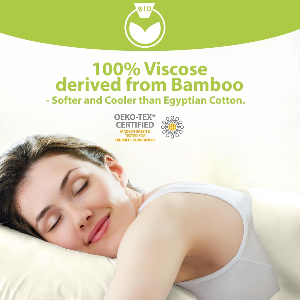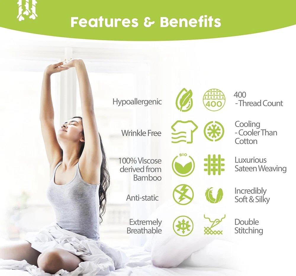 Store New Arrivals Add to Favorite View Feedback Contact Luxury Series King Sheet Set - 100% Viscose Derived from Bamboo Sheets King Size - Super Soft Viscose Bamboo Cooling Sheets for Hot Sleepers -Up to 16’’ Deep Pocket King Sheet Set (Ivory) Description Item model number Bamboo Sheets King Size Style King Ivory Pillowcase Width 2E+1 Inches Weave Type Sateen Pattern Solid Country of Origin China Theme Winter Cartoon Character King Number of Pieces 4 Unit Count 1 Count Pillowcase Quantity 2 Material Viscose from Bamboo Item Display Dimensions 13.38 x 3.54 x 9.45 inches Age Range (Description) Adult Seasons All Is Discontinued By Manufacturer No Included Components 1 Fitted Sheet, 2 Pillowcases, 1 Flat Sheet Closure Type Envelope Item dimensions L x W x H 13.38 x 3.54 x 9.45 inches Item Weight 6.01 pounds Fitted Sheet Pocket Depth 9.45 Inches Special Feature 100% viscose derived from bamboo material, moisture-wicking, thermo-regulating, deep pockets for mattresses up to 16 inches deep Color Ivory Thread Count 400 Global Trade Identification Number 05060499021653 Product Dimensions 13.38 x 3.54 x 9.45 inches Product Care Instructions Machine Wash, Hand Wash Only Size King - 4 Pieces Set PURE 100% VISCOSE DERIVED FROM BAMBOO: Experience the pure luxury of 100% viscose derived from bamboo king size sheets set. COMPLETE 4-PIECE KING SHEETS: Experience a touch of luxury every night with our complete 4-piece king bed sheets. This set includes 1 luxuriously soft flat sheet (102"x105"), 1 fully elasticized fitted sheet (78"x80") for a secure fit on mattresses up to 16 inches deep, and 2 envelope-style colling pillow cases (20"x40") with overlapping closures for added comfort. Our king bed set is machine washable for easy care and gets softer with every wash. ULTIMATE COOLING COMFORT & BREATHABLE BLISS: Experience the unparalleled softness and natural breathability of 100% viscose derived from bamboo cooling sheets king size. These cooling bed sheets are thermo-regulating, keeping you cool and relaxed all night long, perfect for hot sleepers or those with sensitive skin. The moisture-wicking properties ensure year-round comfort, allowing you to indulge in luxurious softness with every wash. DEEP POCKETS ,SILKY SMOOTH SATEEN WEAVE: Woven in a luxurious sateen weave, these 100% viscose derived from bamboo sheets offer an incredibly soft and smooth feel that gets even softer with every wash. Indulge in hotel-like comfort every night. Our deep pocket Twin size bed sheets features a fully elasticized fitted sheet with a deep pocket (fits mattresses up to 16 inches) for a secure, stay-put fit. OEKO-TEX STANDARD 100 CERTIFIED: Responsibly sourced and Crafted from 100% viscose derived from bamboo bed sheets, a sustainable resource. These OEKO-TEX sheets are free from harmful substances for a healthy sleep environment. Unlike most, our bed sheets Twin size offer a luxurious, sustainable sleep experience you won't find anywhere else. Upgrade your sleep tonight! Product Description One Of A Kind Bamboo Sheets An average person spends around 26 years asleep in a lifetime. That reason only was enough of an inspiration for us to design our game- changing & luxurious Bampure bamboo bed sheets that will help you sleep like a baby every single night. Top Of The Line Experience Bampure bamboo bed sheet set has been carefully manufactured to bring you next level comfort. No more looking for a "cold spot" on your pillow, no more sweating at night, No more harmful synthetics - just pure relaxation. Corner Strap Included Every Bampure bamboo bed sheet set comes with a fitted sheet. Not just any fitted sheet - ours features corner straps that keep the fitted sheet in place at all times. Available In Multiple Colors Choose between a wide array of colors & decorate your bedroom like never before. 2 Pillowcases Every set comes with 2 envelope style pillowcases that not only look good, but also feel good. There's More To Bamboo Bed Sheets Than You'd Think Bampure bed sheets are as close to nature as it gets - they're crafted from 100% organic bamboo viscose. Bamboo sheets are also softer than any cotton sheets available. Combine all that with durability & breathability - it's a perfect recipe for a truly dreamy experience. Bring Nature To Your Bedroom Being in close touch with nature is beneficial in all areas of life. Then why wouldn't you bring it to the bedroom? The team at Bampure is here to provide our customers natural, organic & comfortable bedding. Discover our selection of nature-driven bedroom accessories! ABOUT US We offer the best prices around on high quality products. Our E-store includes media such as books, movies, music and games while offering electronics, toys, sporting apparel, clothing, tools, general home, garden items and more. SHIPPING We are always working hard to ensure your package arrives as soon as possible. Please understand that some factors like weather, high postal traffic, and the performance of shipping companies are outside of our control. We offer free shipping to the lower 48 states and ship within 2 business days of payment, usually sooner. We do not accept P.O. Boxes. Please provide a physical address. For shipping outside of the continental USA, we only use eBay's Global Shipping Program.The item is shipped to KY and then sent to the rest of the world. International customers are responsible for all duties and taxes. Continue to check out in order to calculate costs for shipping the item to your country. Messages regarding eBay's Global Shipping Program MUST be directed at eBay EXCLUSIVELY. RETURNS We offer a 30-Day Return Policy on items which you are not completely satisfied with. You have the option for a full-refund or an exchange of the item. No returns are available on items shipped outside of the USA. PAYMENT We accept PayPal. CONTACT US This page content is yet to come Please ad us to your favorite seller and visit again later Thank You CUSTOMER SATISFACTION We try our v