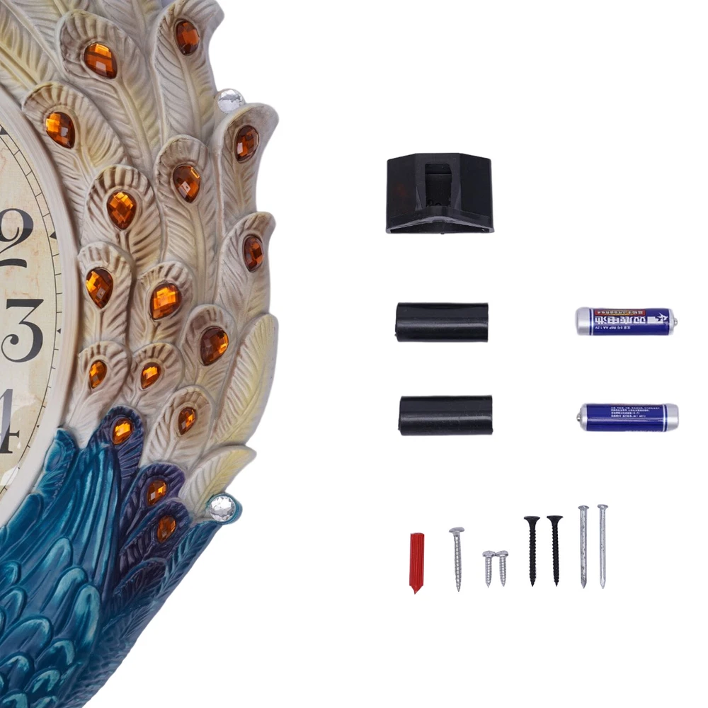 Luxury Large Wall Clock Peacock Wall Watch Living Room Home Decor Retro European
