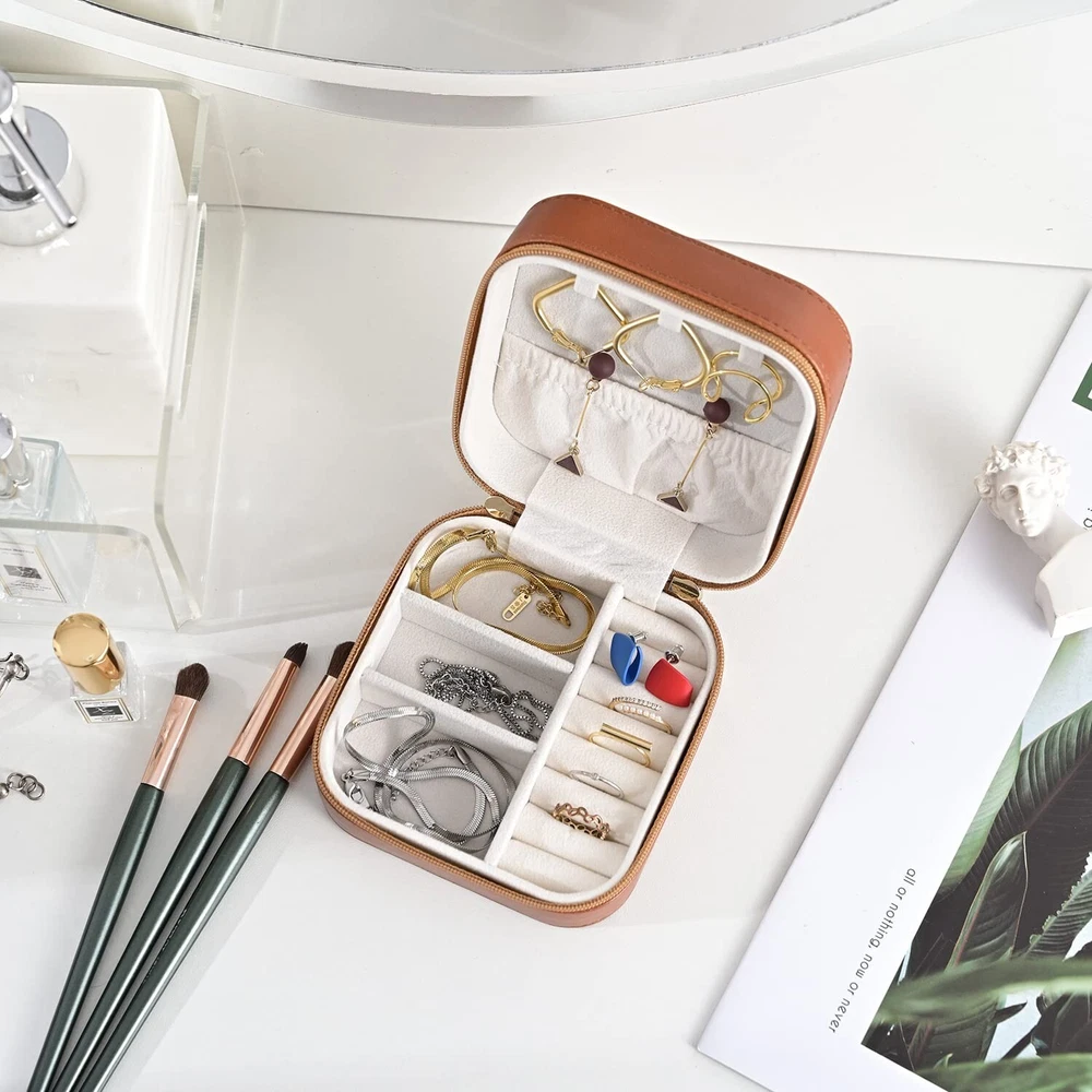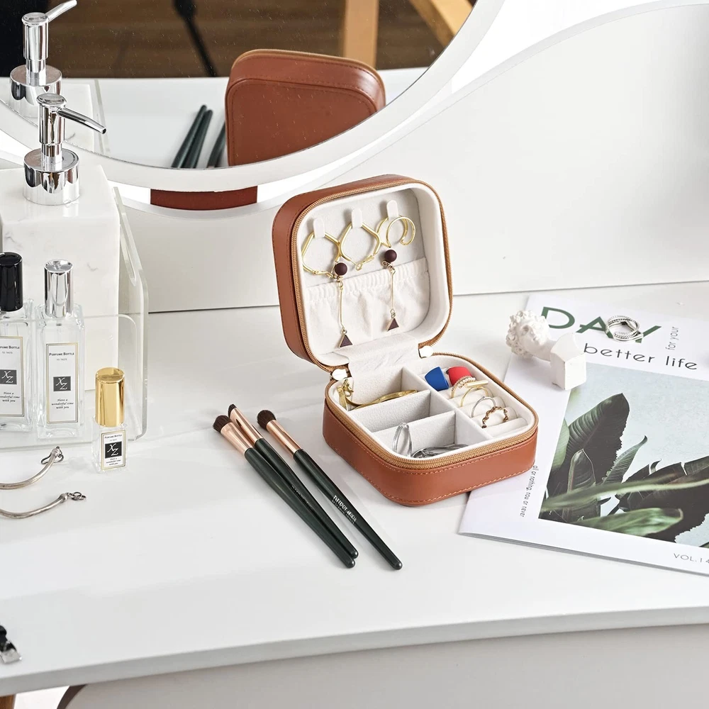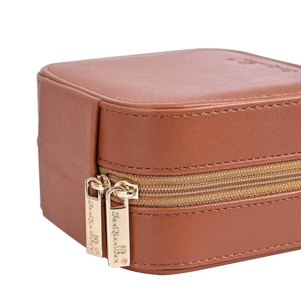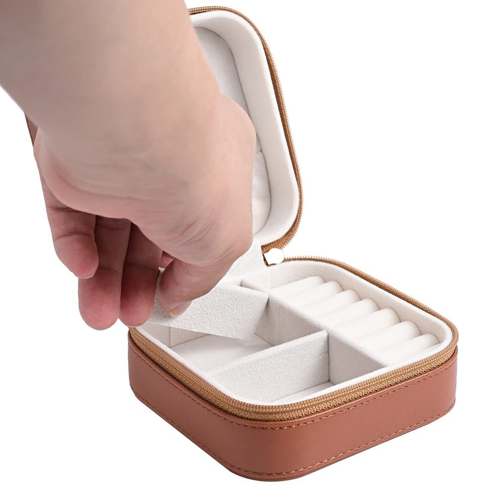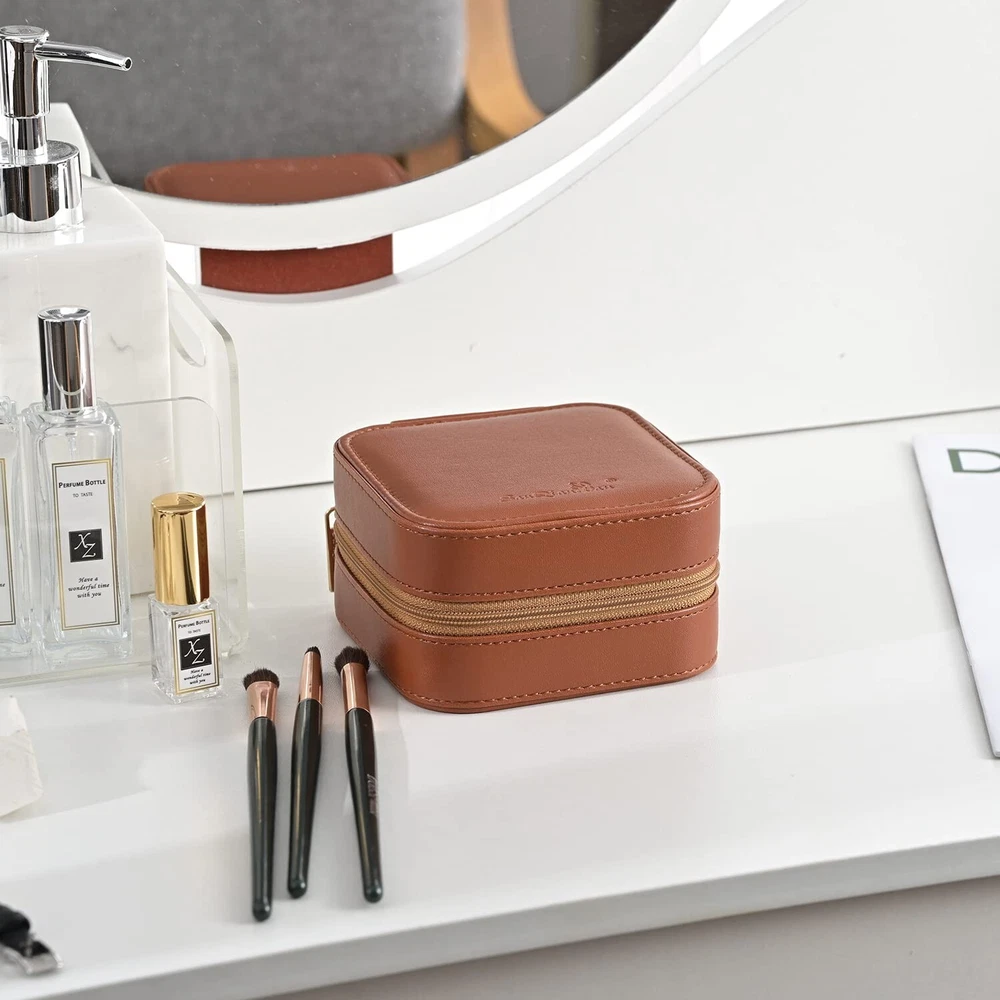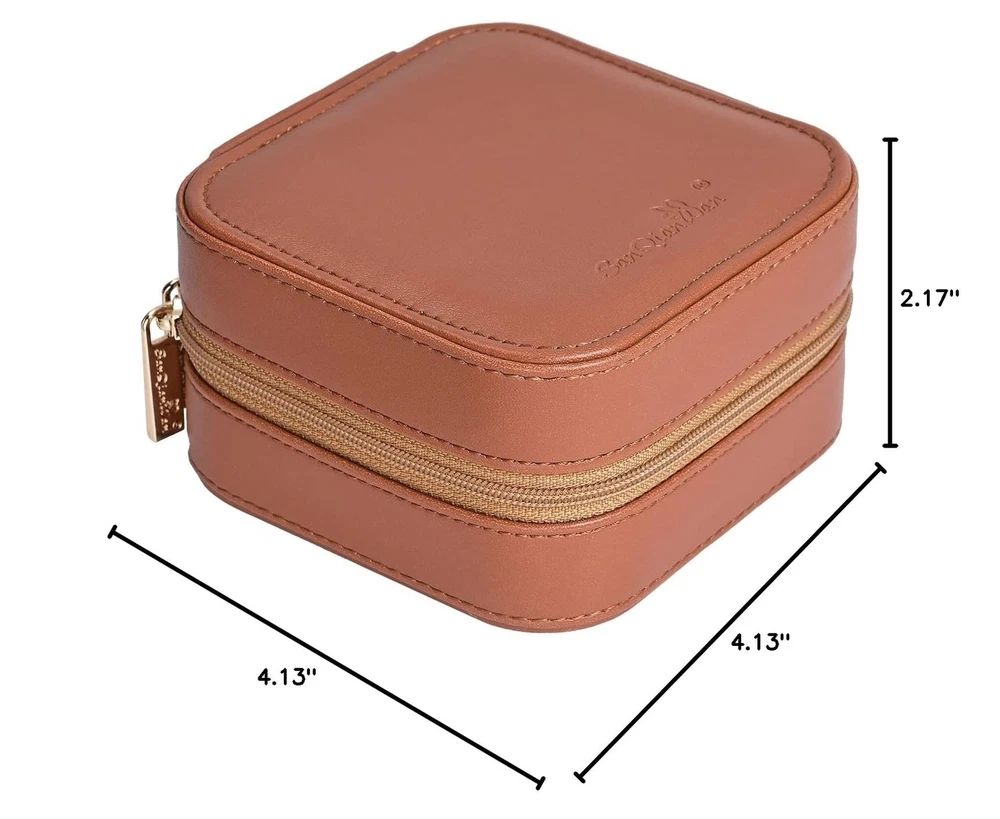 Luxury Leather Travel Jewelry Box for Women Mini Organizer Small Jewelry Portable Travel Case for Rings Earrings Necklace Multifunctional Storage Mother's Day Gift Women Wife Daughter Gift (BROWN) - Buy Now with Fast Shipping! Luxury Leather Travel Jewelry Box for Women Mini Organizer Small Jewelry Portable Travel Case for Rings Earrings Necklace Multifunctional Storage Mother's Day Gift Women Wife Daughter Gift (BROWN) Product Details Color: BROWN Brand: SANQIANWAN Material: PU Leather, Degradable Plastic Style: Elegant Special Feature: Durable,Portable Recommended Uses For Product: Ring Product Dimensions: 4.13"D x 4.13"W x 2.17"H Target Audience: Women Shape: Rectangular Finish Type: Glossy Color: ‎BROWN Brand: ‎SANQIANWAN Material: ‎PU Leather, Degradable Plastic Style: ‎Elegant Special Feature: ‎Durable,Portable Recommended Uses For Product: ‎Ring Product Dimensions: ‎4.13"D x 4.13"W x 2.17"H Target Audience: ‎Women Shape: ‎Rectangular Finish Type: ‎Glossy Inner Material: ‎Plastic Number of Drawers: ‎1 Item Weight: ‎10.5 Ounces Number of Compartments: ‎4 Jewelry Storage Type: ‎Jewelry Box Number of Items: ‎1 UPC: ‎735626991134 Manufacturer: ‎SANQIANWAN Occasion: ‎Mother's Day, Wedding, Birthday, Valentine's Day Mounting Type: ‎Table Top Closure Type: ‎Zipper Item Weight: ‎10.5 ounces Country of Origin: ‎China Item model number: ‎WL31722 Finish: ‎Glossy Number Of Pieces: ‎1 Special Features: ‎Durable,Portable Included Components: ‎NO Batteries Included?: ‎No Batteries Required?: ‎No Date First Available: September 23, 2021 Key Features ✅ Travel Size:4.134.132.17 inches,10.5 ounces.Although our size is slightly larger than similar products, under the premise of portability, our products can hold more rings, avoiding the embarrassment of needing to carry multiple jewelry boxes. A small iron piece is specially added, which will not make you feel heavy, but greatly improve the stability of the jewelry box, even if you only put a small amount of jewelry, it will not make the box fall over. ✅ Excellent Material:Jewelry storage box is made of high-quality PU leather on the outside.Different from the cheap ones,the inner material of our jewelry box is made of more durable degradable plastic,not cardboard.Effectively protects your precious jewels. ✅ More robust:The jewelry storage box is equipped with different storage areas, The inner support is made of degradable plastic, which provides stronger support and facilitates the recycling of materials. ✅ Stylish:Simple and elegant appearance, suitable for all styles.A variety of colors, from bright and lively to calm and dignified, each color can perfectly match your temperament, outfit, and even mood. ✅ Perfect Gift:It's an amazing gift for Valentine's Day, Birthday, Mother's Day. Whether it is for wife, girlfriend, daughter, or mother, it is very suitable. Product Description