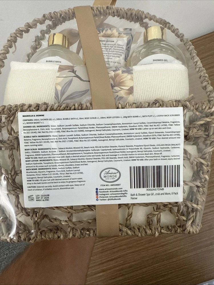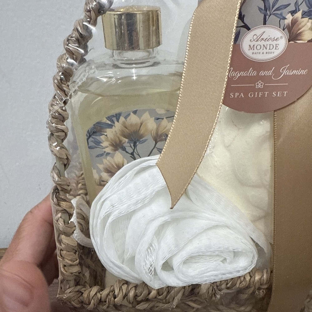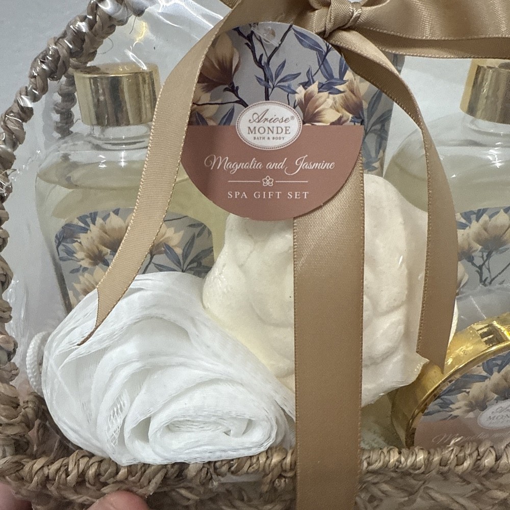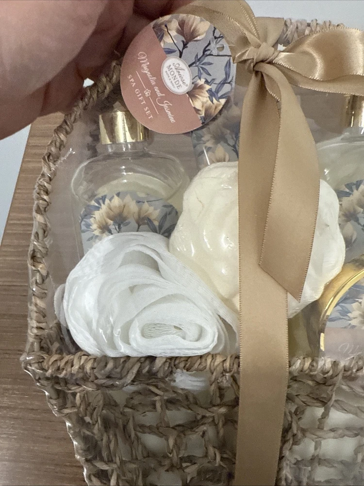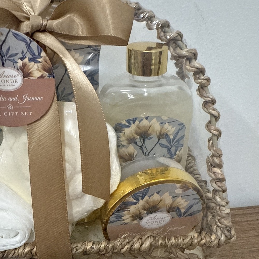 Spa Gift Basket with Magnolia Jasmine Bath Set for Women 6 Items.