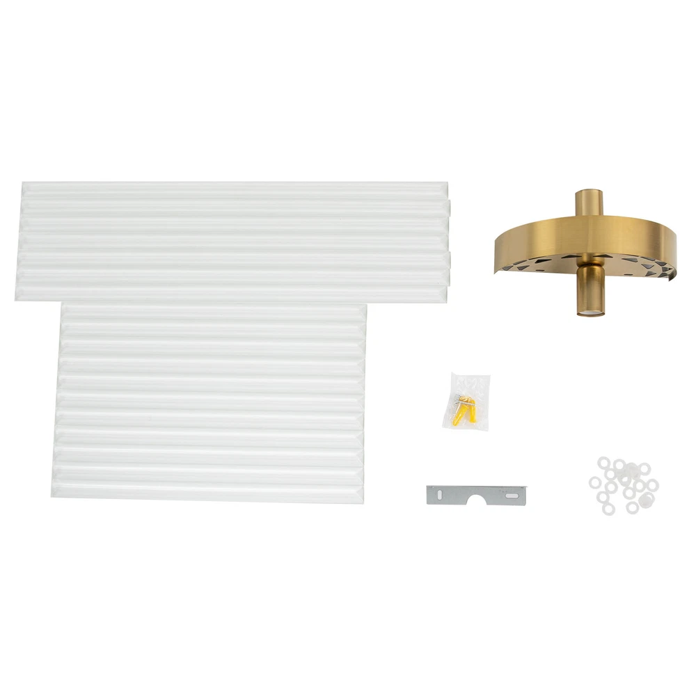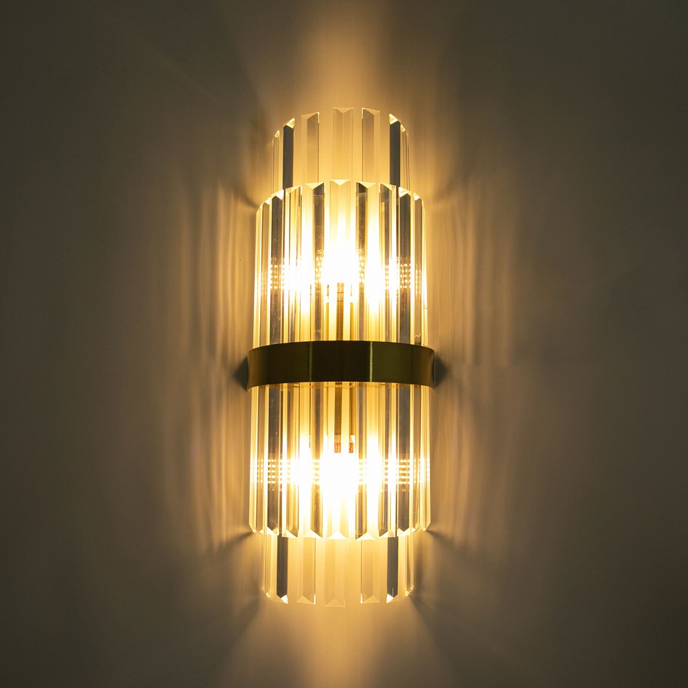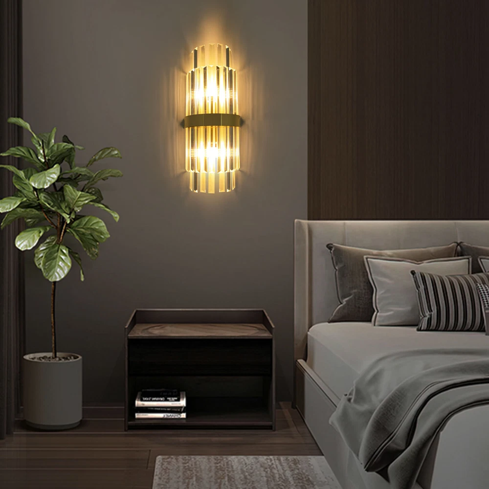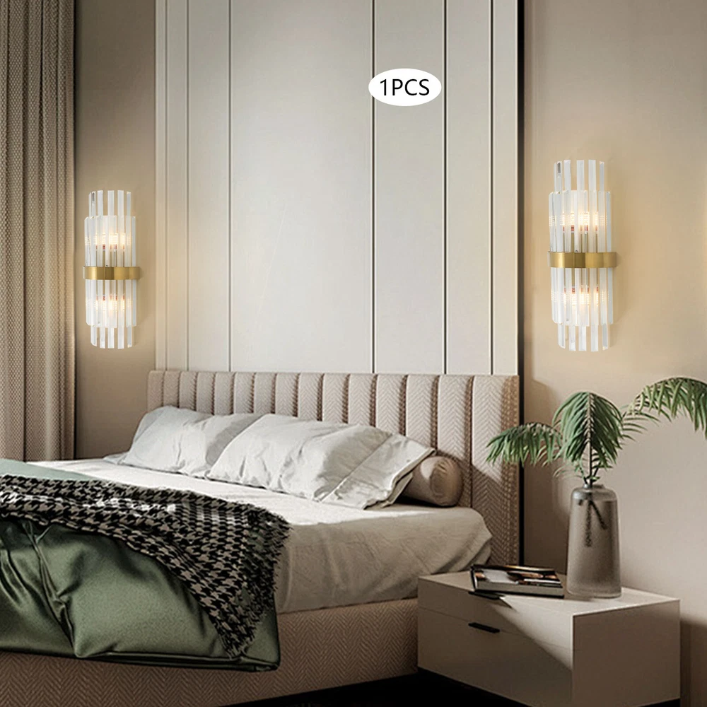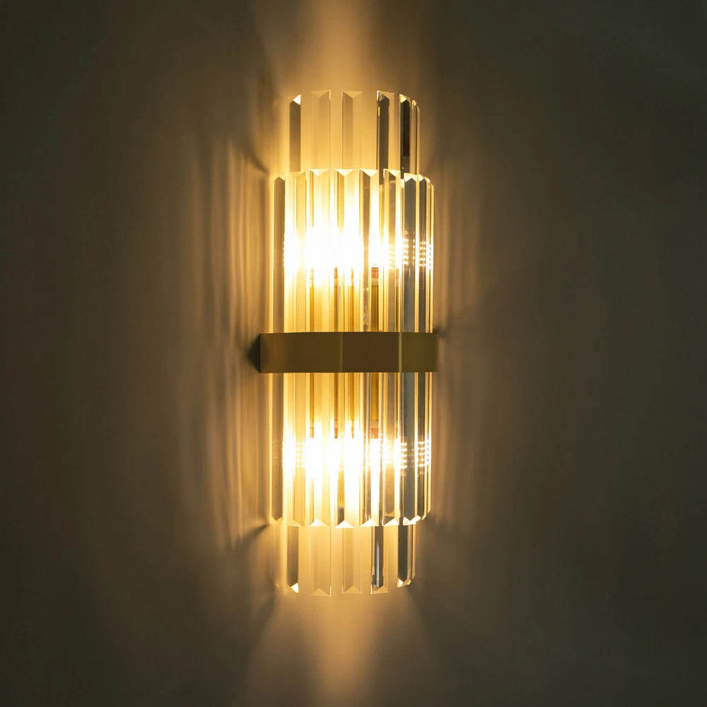 Modern Crystal Wall Sconce Golden Wall Light, Luxury Indoor Hallway Wall Lamp Description The gold wall lamp with its gorgeous colors and unique irregular design is not only an excellent tool to light up your room but also embellish your room with unique and beautiful elements. With exquisite workmanship and durable materials, it is not easy to fade. You can install two E14 bulbs yourself such as incandescent and LED bulbs to create different lighting atmospheres and express your unique taste. Key Features Build to Last: This product is made of high-quality iron and glass with the electroplating and polishing processes, which is corrosion-resistant, and wear-resistant, and can be used for a long time without frequent replacement. Eye-catching Appearance: Highly clear glass rods of varying lengths with an outer gold fixing ring add a touch of sophistication to the fixture. When the light is on, the colorful light reflected from the exquisite rods casts a fascinating glow on the wall, bringing you an extremely beautiful visual enjoyment. Comfortable Bedtime: Installing it in your bedroom, the lamp can fill your heart with warmth and emotion, making your monotonous life and room more vivid, and enhancing your sense of happiness in life, especially when you come home from a hard day's work. High Safety: The multiple heat dissipation holes and wide voltage (85-265V) design can effectively ensure safety and extend product life, so you can use it with confidence. Effortless Cleaning: The smooth surface, simple structure, and removable glass rods allow you to easily clean it with a dry towel. Assembly in a Breeze: Complete accessories, a clear installation diagram, and a simple structure allow you to easily install this product on the wall and start to use it in a short time. Ideal Gift: This product is so stylish and high-quality that you can choose it as a housewarming, birthday, or holiday gift for parents, friends, and loved ones. Protective Package: To prevent the product from being damaged during transportation, we packed it with foam to protect your products to the maximum extent possible. Guaranteed Customer Service: Our friendly customer service team would be happy to solve your issues with our table lamp. If you have any issues, feel free to contact us. Details Smooth Edges: The smooth and burr-free edges enhance the beauty of the product and better care for your skin when installing and cleaning it. Standard E14 Base: The standard E14 lamp holder can support the use of LEDs, Halogens, etc., making it very convenient for you to purchase and replace. Application Its applicable area is 86-107.6ft². It is suitable for almost all kinds of places, such as bedrooms, living rooms, kitchens, bedsides, bathrooms, dining rooms, corridors, staircases, studies, lofts, cafes, craft rooms, and bars. Specifications Material: Iron, Glass Process: Electroplating, Polishing Color: Gold, Clear Style: Modern Light Source Type:‎2* E14 Bulbs(Not Included) Assembly Required: Yes Indoor/Outdoor Usage: Indoor Light Fixture Form: ‎Wall Lamp Mount Type: ‎Wall-mounted Voltage: 85-265V Efficiency: E EU Energy Label Efficiency Labeling Class: A++to E Max. Single Bulb Power: 40W Applicable Area: 8-10m²/86-107.6ft ² Product Size(L*H): 20*50cm/7.87*19.68in Package Included 1* Gold Wall Lamp 1* English Installation Diagram All Accessories for Installation Notes This package does not include E14 bulbs, and you need to buy two yourself. Please do not install the lamp in a wet place or use it outdoors. Please do not install the light next to the high-temperature object such as the exhaust pipe to avoid damage. Please cut off the power supply when the lamp is abnormal. Please wear electric insulation gloves (not included) and avoid scratching the surface of the lamp and the electric wire when installing. Please make sure that the power supply has been cut off before installation, and conduct a power test before installation. Please install it by a licensed electrician if necessary. Please use the lamp within the applicable voltage range and clean it regularly. Please cut off the power supply when you clean the light. Please wipe with a soft and dry cloth, it is not suitable to clean with cleaning agents and water. Normally, the expansion screw will blow up after the force is applied. Please allow the slight color difference caused by the shooting light and 1-3cm error due to manual measurement, and make sure you do not mind before you order. Payment Delivery details Terms of sales About us Contact us Payment We accept ebay payment 。 Fees such as import duties, taxes are not included in the item price or shipping costs. These charges are the buyer's responsibility. Delivery details Shipping: 2-9 working days to: USA Terms of sales We maintain high standards of excellence and strive for hundred percent customer satisfaction. Feedback is very important to us. We hope that you contact us immediately before you give neutral or negative feedback, so that we can address your concerns. It is impossible to address issues if we do not know about them! About us Your satis faction is our ultimate goal. We work hard to earn your trust and future business. Our certified technicians have tested each item before shipping. The unit comes with 1 year limited warranty on all manufacturing defects. a) If you receive a defective item, you may return it or ask for a discount. Please contact us within 14 days after you receive the package. b) What you returned must be intact and in its original packaging as re? u. Customer is responsible for shipping costs of the returned item. c) We will cover the cost of shipping back t with the shipping rate indicated in the registration page. We will send you a new unit or refund the full payment you paid. Thank you. Contact us Business Hour Business Hour: Monday To Friday: 8:30 AM to 5:00 PM (Beijing China time) Due to time zones, our reply to your questions may not be immediately. But within abo