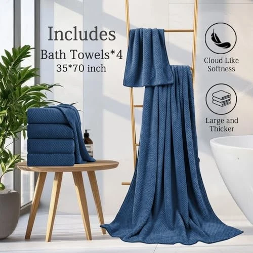 Return Policy Fast Delivery Trusted seller Navy Bath Towels Set 35x70 Inches - Luxury 600 GSM Oversized Bath Sheet Towel,Extra Large Microfiber - Quick Dry,Highly Absorbent,Super Soft Shower Towels Spa Hotel Bathroom Towel Set (4-Pack) Product Description SET OF 4- Bath sheet towel set collections contains four 600 GSM oversized bath towels(35 inch x 70 inch).These truly luxurious towels come in a variety of beautiful colors to complement with any home,dorm or hotel bathroom.Enjoy the spa experience with our luxurious soft absorbent towel set. BETTER WATER ABSORPTION:The bath sheet are ultra-absorbent and fast drying,feel soft and cozy.Soft warm hotel plush towels giving you a comfy experience after bathing,and bath towels can quickly absorb the moisture on your body,drying your hands or cleaning your face.perfect durable microfiber ensure optimum softness,fluffiness and wonderful absorbency. SOFT TOUCH AND DURABLE:600 GSM bath towels have a reinforced double stitched hem and natural weave s durability and strength.luxury bath sheet towel are made up of 100% microfiber and soft fleece plush material which allows them to be extremely absorbent,soft and fluffy.The soft touch of these luxurious and remarkably plush towels allows you to feel spa grandeur in the comfort of your own home. OVERSIZED MULTIFUNCTIONAL BATH TOWEL:High quality fabric bath towels,skin-friendly,with strong moisture absorption,breathable,children can also use it at ease.Oversize bathroom towels is thick and large,can completely wrap your body.You will enjoy the experience of softness,moisture absorption,luxury,lightness.Perfect for poolside,bathroom,Beach,salon,college dorm room essentials,spa,hotels or gym use. CARE TIPS: Machine washable towels.We recommend washing in cold water before your first use and give the towels better absorbency.Tumble dry on low heat or hang them to dry. After the first wash, these towels will fluff up beautifully, feel fresh and soft. Please don’t use fabric softener,bleach. Shipping Returns Payment Shipping Shipping is FREE to all addresses other than APO/PO boxes in the lower 48 states. All our stock ships from US-based warehouses. Shipped via USPS or UPS (depending on location and package weight) Unless stated otherwise, all orders will ship within 24-72 hours of your payment being processed. Check our feedback to see the great reviews of FAST shipping we offer. Returns Seller does not accept returns Payment We currently accept payment via eBay managed payments only. Once payment is cleared, we will dispatch your shipment within 1-3 business days. Please refer to the "Shipping" tab for more information regarding shipping speed to your destination.