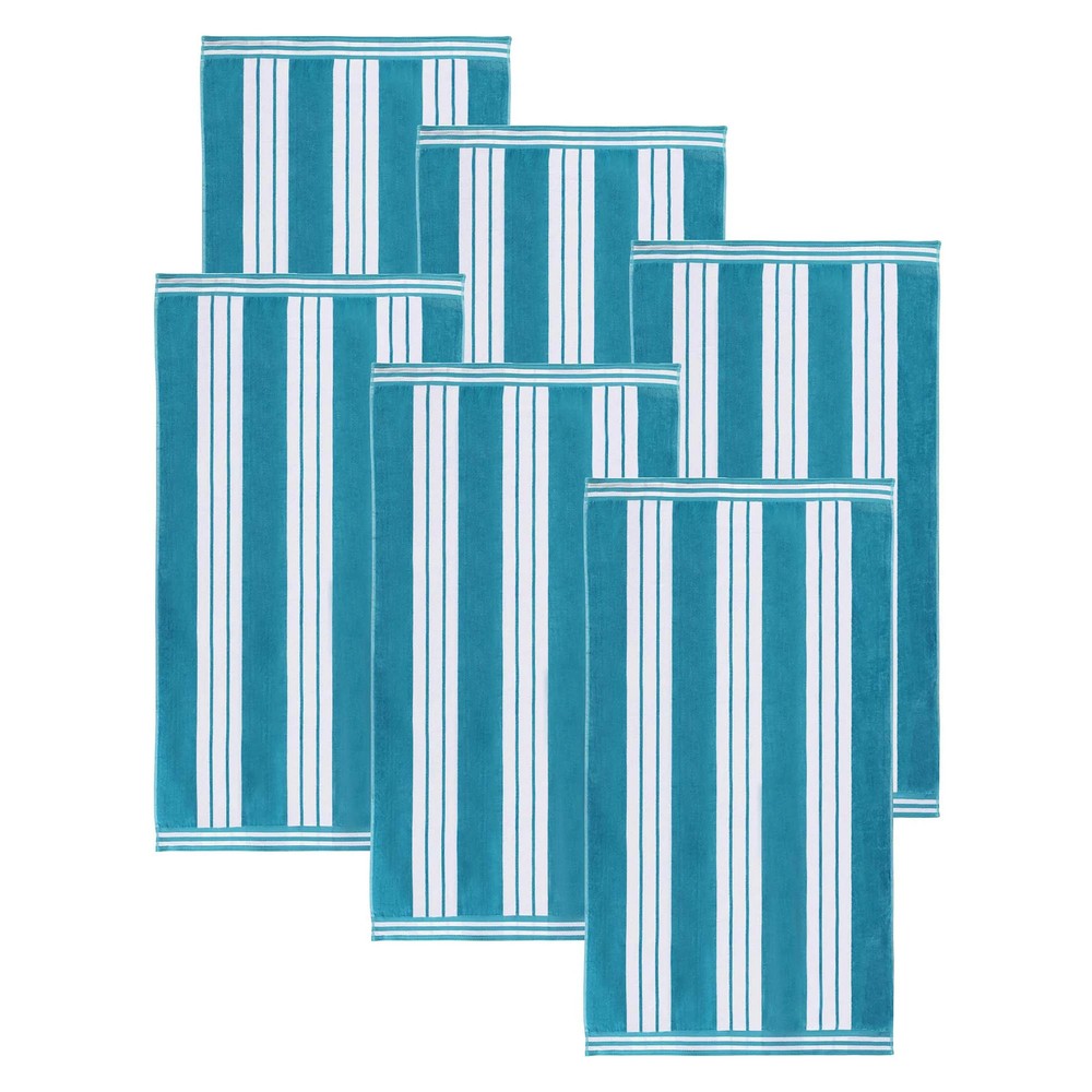 The Superior Striped Cotton Beach Towel makes a great addition to your poolside festivities. This cozy, oversized beach towel features premium cotton material with an energizing striped pattern available in a variety of stylish colors. The design reverses from a soft velour side to an absorbent terry loop side, keeping you warm and drying you off quickly. Ideal for travel, you can carry this towel to the beach, keep it poolside, or decorate your bathroom in style. Relax in comfort with this must-have summer accessory.Features: Set Includes: Six (6) Beach Towels Material: 100% Cotton Striped pattern Colors: Available in Blue, Charcoal, Coral, Dark Green, Light Grey, Mint, Orange, Red, Taupe and Turquoise color options From poolside to beachside, the quick dry material of this towel is Free Shipping Over $49.99* Details Superior Striped Large Oversized Cotton Beach Towel - Set of 6 Product Description: The Superior Striped Cotton Beach Towel makes a great addition to your poolside festivities. This cozy, oversized beach towel features premium cotton material with an energizing striped pattern available in a variety of stylish colors. The design reverses from a soft velour side to an absorbent terry loop side, keeping you warm and drying you off quickly. Ideal for travel, you can carry this towel to the beach, keep it poolside, or decorate your bathroom in style. Relax in comfort with this must-have summer accessory. Features: Set IncludesSix (6) Beach Towels Material100% Cotton Striped pattern ColorsAvailable in Blue, Charcoal, Coral, Dark Green, Light Grey, Mint, Orange, Red, Taupe and Turquoise color options From poolside to beachside, the quick dry material of this towel is cozy, durable, and highly absorbent Medium weight terry loop and soft velour; finished with hemmed edges Generously sized towel measures 34" x 64" Conveniently folds to fit into any beach bag or suitcase; perfect as bathroom decor, going to the pool, at the spa, or beachside in the sun CertificatesWe're committed to make products safer for you and safer for the world; STANDARD 100 by OEKO-TEX certified; Every component of this product has been tested and verified free of harmful substances and produced sustainably CareMachine washable. For the most luxurious results, we recommend to wash with like colors. Remove promptly from dryer. Please follow care label instructions for best results 34" x 64"Each towel measures 34 inches wide by 64 inches long