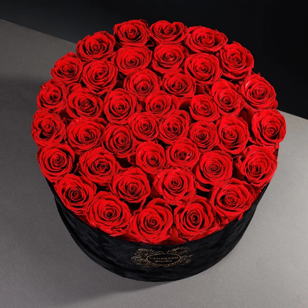 Luxury Preserved Roses in Suede Box - Flower Roses Gifts for Women, Valentines Day Flowers Mothers Day Roses - Birthday Flowers for Delivery Prime - 40 Pieces (Red) Product Details Color: Red Brand: UFOREVER ROSES MPN: 40MT-1 UPC: Does not apply EAN: Does not apply Package Dimensions: 13.07 x 13.07 x 7.17 inches Item Weight: 4.16 pounds Manufacturer: UFOREVER ROSES Country of Origin: China Item model number: 40MT-1 Batteries required: No Real Rose: Our preserved roses are made of natural roses and are carefully selected, treated, and preserved to maintain their beauty for an extended period. Suede Box: The rose is presented in a beautiful suede box, making it an elegant and sophisticated gift for any occasion. Long-Lasting: The preserved roses can last for up to 3 years without watering or maintenance, making them a durable and long-lasting gift. Perfect Gifts for Women: Whether it's for Valentine's Day, Mother's Day, a birthday, or any other special occasion, our preserved roses are a beautiful and heartfelt gift that will be cherished for years to come. Unique Design: The rose is carefully arranged in the suede box, creating a stunning and unique design that is sure to impress.
