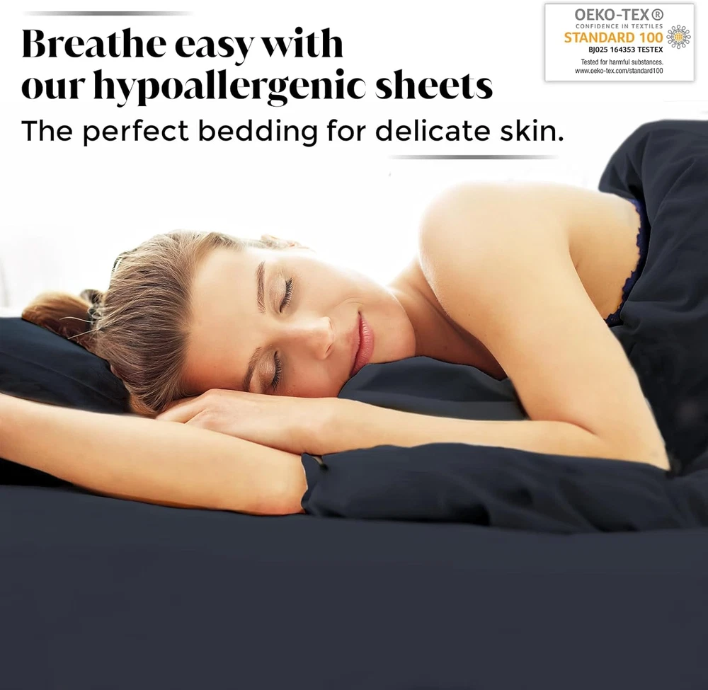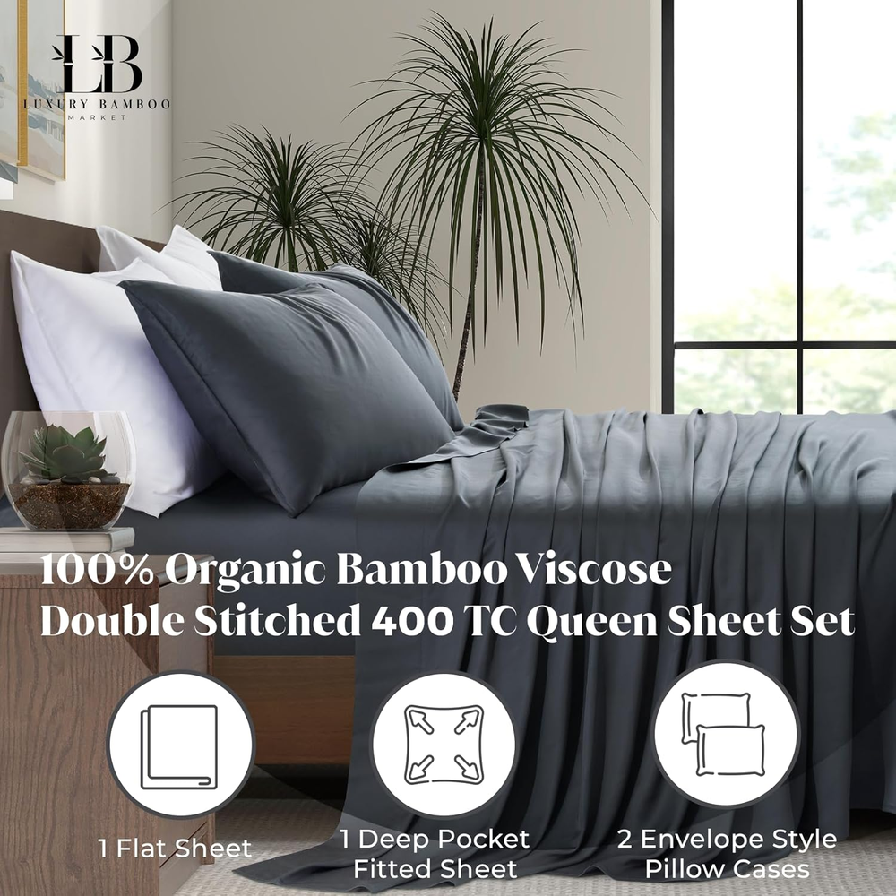 Store New Arrivals Add to Favorite View Feedback Contact Luxury Bamboo Market | Queen Size Bed Sheet Set | 100% Viscose Made from Bamboo | Organically Grown | Ultra Soft | Cooling Sheets for Hot Sleepers | 17" Deep Pocket [Charcoal Grey] Description Style Luxury Weave Type Sateen Pattern Solid Country of Origin China Theme Solid Number of Pieces 4 Unit Count 1.0 Count Pillowcase Quantity 2 Material Organically Grown Bamboo Viscose Age Range (Description) Adult Seasons Winter, Summer, Fall, Spring Package Dimensions 16.93 x 13.43 x 3.19 inches Closure Type Envelope Item Weight 6.56 pounds Special Feature Cooling, Deep Pocket, Sateen Weave, Wrinkle Resistant Color Charcoal Grey Thread Count 400 Included Components 17" Deep Pocket Fitted Sheet, 2 Envelope Pillowcases, Flat Sheet Product Care Instructions Machine Wash, Remove Promptly, Tumble Dry Low Size Queen Sustainable Luxury: Delight in the thoughtfully crafted comfort of our sheets, made from 100% viscose made from bamboo. Organically grown and harvested, our premium 400-thread-count luxury sheets provide a resort-style look and feel. Unrivaled Softness and Cooling Comfort: Our silky sateen weave sheets provide extra smooth, touchable softness and temperature-regulating properties, perfect as cooling sheets for hot sleepers, ensuring a serene and restful night's sleep. Certified Health-Conscious Comfort: Rest assured with our OEKO-TEX certified 100% viscose made from bamboo sheets, which meet high safety and environmental standards. They're hypoallergenic and ultra-soft, catering to your skin with the gentlest touch. Crafted for Longevity and Ease: Double-stitched for enhanced durability and designed to resist pilling, our 100% viscose made from bamboo sheets maintain their pristine condition over time. They're easy to care for, getting softer with each wash, and offer moisture-wicking capabilities for lasting freshness. Tailored Fit and Elegant Design: Our envelope pillowcases add a sophisticated touch to your bedding ensemble. The combination of double stitching, envelope style and durable design ensures your pillow stays in place all night long. Product Description 1 Gentle on Skin 2 Hypoallergenic 3 Designer Colors Why choose Luxury Bamboo Market sheets over cotton, synthetic, or other bamboo blends? Our luxury bamboo sheets offer unmatched softness, breathability, and moisture control compared to cotton, synthetics, and other bamboo blends. Crafted from Moso bamboo fiber, they ensure long-lasting, year-round comfort for all What sets our 100% Organic Bamboo sheet sets made exclusively from Mao Zhu (Moso) bamboo apart for quality and comfort? Crafted from premium organically grown Moso bamboo viscose, our sheet sets boast single-ply yarn, 400 thread count, and double stitching for durability. Experience supreme softness, moisture-wicking, and temperature regulation for the ultimate sleep. How should I care for Luxury Bamboo Market sheets to maintain their quality and durability? Simply machine wash in cool water with mild detergent, select gentle cycle w/ low spin during rinse. Tumble dry low, and promptly remove from the dryer to avoid wrinkles. Avoid bleach, and opt for smaller loads to ensure even drying and minimize wear How do Luxury Bamboo Market's sheets reflect our commitment to sustainability? LBM sheets are crafted with durability and quality in mind, using 100% Moso Bamboo—a resource known for its renewability. This reflects our commitment to providing premium bedding while maintaining high standards of product integrity. How can customers trust the safety of our sheets? Rest assured, all of our products are OEKO-TEX 100 certified (certificate BJ025164353 valid until 01/31/2025). OEKO-TEX certification assures they're free from harmful substances, meeting rigorous safety standards, ensuring ultimate peace of mind. ABOUT US We offer the best prices around on high quality products. Our E-store includes media such as books, movies, music and games while offering electronics, toys, sporting apparel, clothing, tools, general home, garden items and more. SHIPPING We are always working hard to ensure your package arrives as soon as possible. Please understand that some factors like weather, high postal traffic, and the performance of shipping companies are outside of our control. We offer free shipping to the lower 48 states and ship within 2 business days of payment, usually sooner. We do not accept P.O. Boxes. Please provide a physical address. For shipping outside of the continental USA, we only use eBay's Global Shipping Program.The item is shipped to KY and then sent to the rest of the world. International customers are responsible for all duties and taxes. Continue to check out in order to calculate costs for shipping the item to your country. Messages regarding eBay's Global Shipping Program MUST be directed at eBay EXCLUSIVELY. RETURNS We offer a 30-Day Return Policy on items which you are not completely satisfied with. You have the option for a full-refund or an exchange of the item. No returns are available on items shipped outside of the USA. PAYMENT We accept PayPal. CONTACT US This page content is yet to come Please ad us to your favorite seller and visit again later Thank You CUSTOMER SATISFACTION We try our very best to make sure every customer is completely satisfied. If there's a problem, message us! We're happy to help.