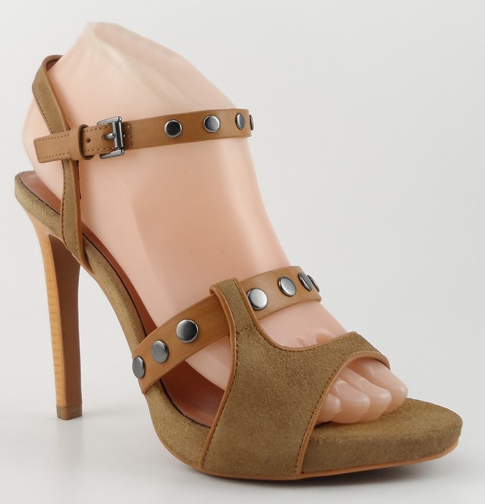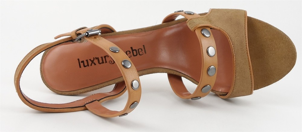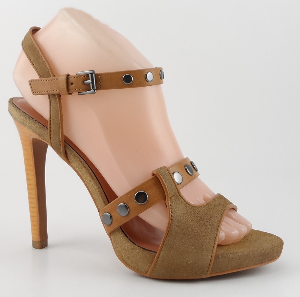 DSB sku: G3289 US Shoe Size: 8.5 Material: Suede/ Man-made Brand Style: ANDE Toe Shape: Open Toe Accents: Studded Heel Type: Stiletto Width: Medium (B, M) Toe Style: Round Main Color: Caramel/ Camel Style: Slingback Size Chart: Women's Shoes EU Heel Height: Ultra High (4 in & Higher) Fastening: Buckle Shoe Width: M Upper Material: Suede Closure: Buckle UPC: 886688615176 Brand: Luxury Rebel Type: Heel Department: Women US Shoe Size (Women's): 8.5 Sub Style: Sandal gtin13: 886688615176 Color: Caramel/ Camel Season: Summer Heel Style: Stiletto Occasion: Casual, Party/Cocktail Exact Heel Height: 4 3/4 in. Size Type: Medium