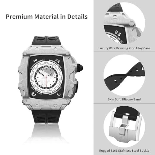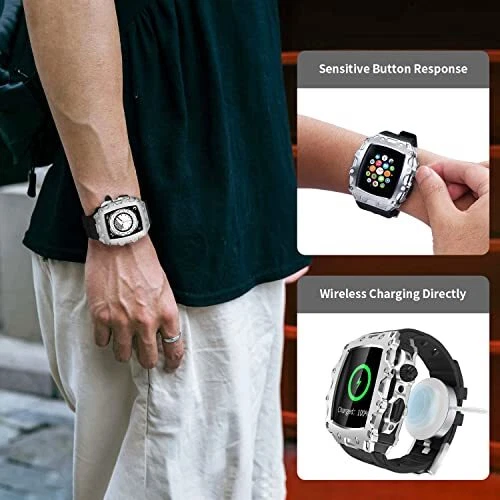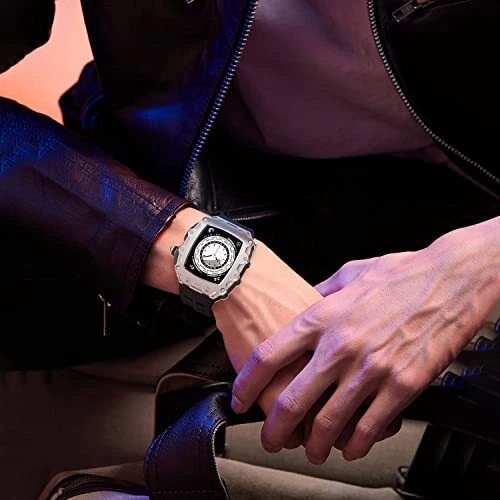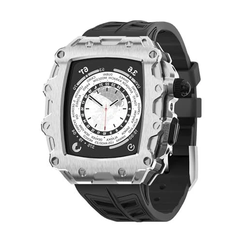 Luxury Rugged Case with Band Compatible for Apple Watch Series 9 8 Silver Black