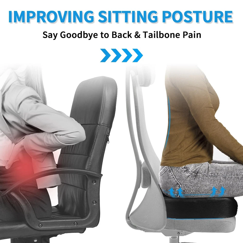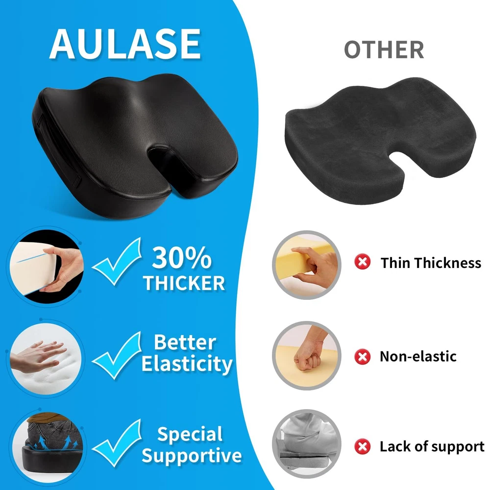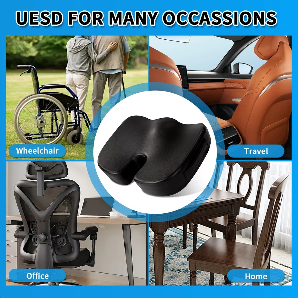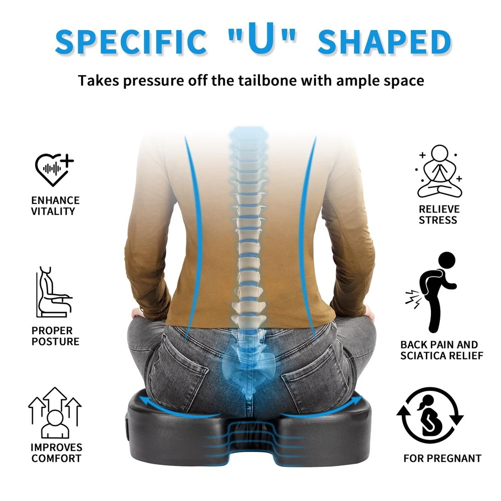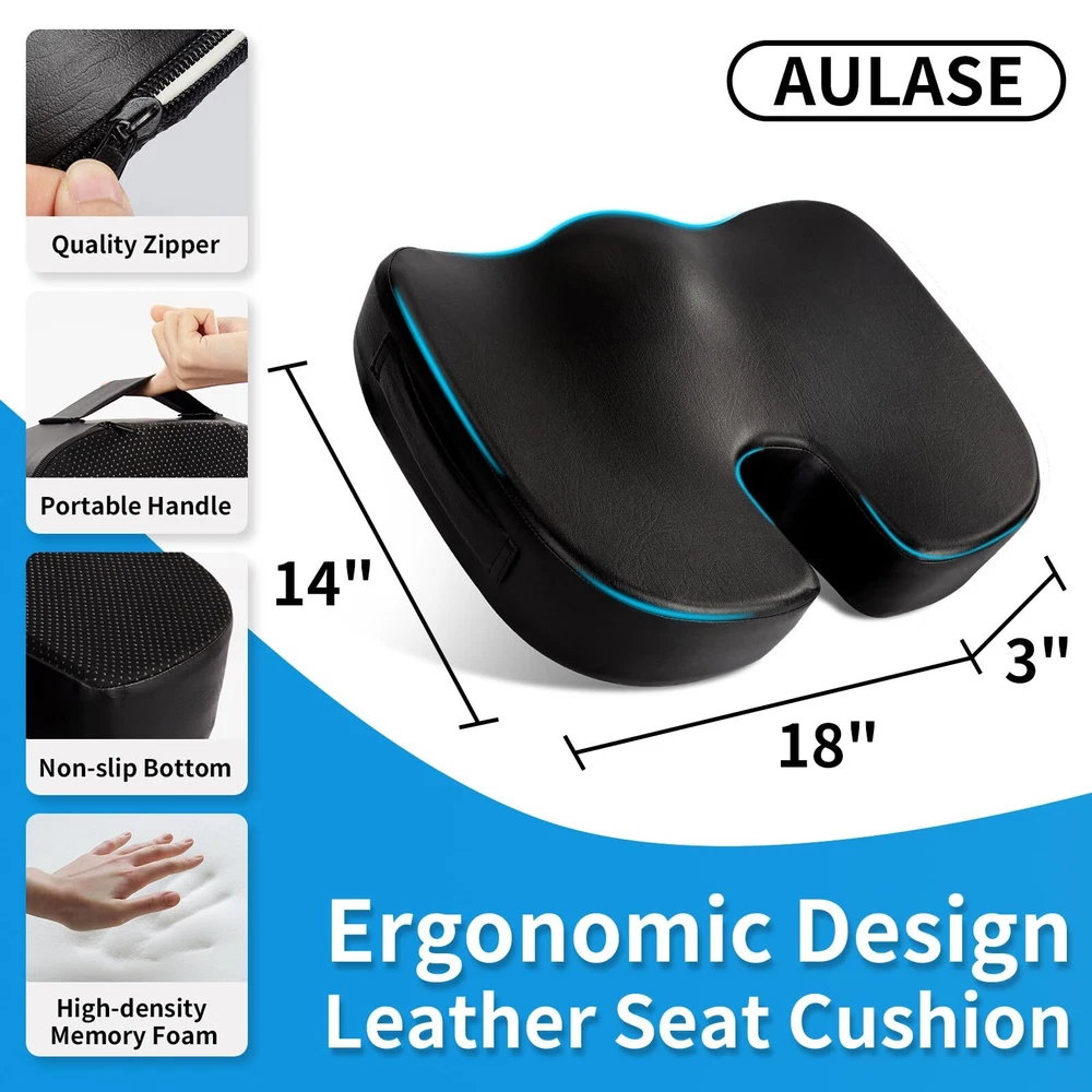 [Luxurious 3-Inch Thick Seat Cushion]: Our seat cushion measures 18"x14"x3" and is filled with high-quality memory foam. The cover is made of eco-friendly faux leather. It not only has an elegant appearance but is also easy to clean. The perfect thickness provides a soft and comfortable feel, allowing you to forget the discomfort of prolonged sitting. [Ergonomic Design and Comfortable Foam]: The U-shaped design of our seat cushion is ergonomically engineered to perfectly contour to the curves of your buttocks, improving blood circulation. It effectively alleviates problems such as back pain, lower back pain, and sciatica caused by prolonged sitting. The 3-inch thickness of the memory foam provides ample support, reducing pressure on your buttocks and lower back. Furthermore, it offers a soft and comfortable seating experience, ensuring that the cushion retains its shape even after long periods of sitting. [Durable Cover and Non-slip Bottom]: The leather cover adds versatility to the seat cushion. The high-quality faux leather is more durable and visually appealing than ordinary mesh fabric, allowing the cushion to complement the interior of your office, dining room, study, etc. The silicone particles on the bottom of the cushion provide excellent non-slip performance, keeping the cushion in place on the chair at all times. [Suitable for Various Occasions]: The cushion features a side handle design and weighs approximately 1.8 pounds, making it lightweight and portable. It can be used indoors on various seats such as office chairs, desk chairs, gaming chairs, and car seats. It can also be taken outdoors, making it a great idea for travel, sports events, and fishing trips. [Care Instructions]: The cushion cover can be spot cleaned using a damp cloth and mild detergent, then air dried. Avoid prolonged exposure to sunlight. If there are any product issues, we will promptly address them within 24 hours, ensuring 100% customer satisfaction with our after-sales service.