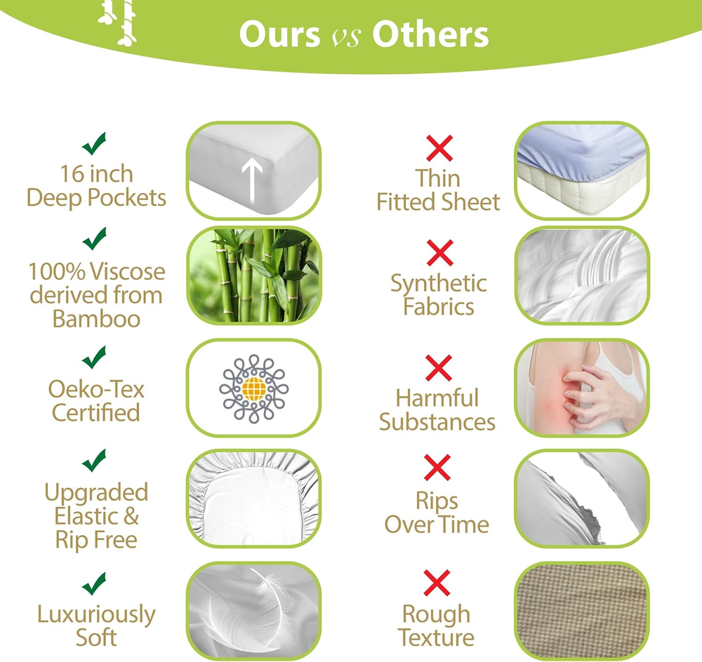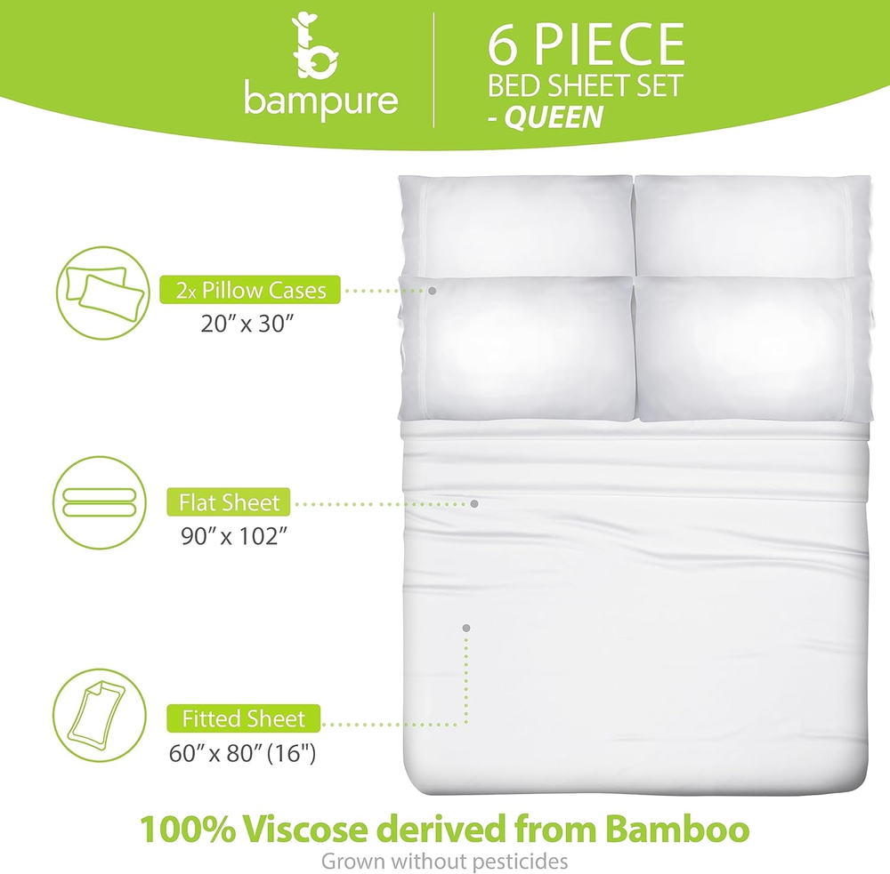 Store New Arrivals Add to Favorite View Feedback Contact Luxury Series 6 Pcs Queen Sheet Set - 100% Pure Viscose Derived from Bamboo Sheets Queen Size - Super Soft Queen Cooling Sheets for Hot Sleepers - up to 16’’ Deep Pocket Queen Sheets (White) Product Information Item model number 6 Pc Bamboo Sheets Queen Size Style Queen White Weave Type Sateen Pattern Solid Country of Origin China Theme Winter Number of Pieces 6 Unit Count 1 Count Pillowcase Quantity 4 Material Viscose Derived from Bamboo Item Display Dimensions 13.38 x 1 x 2.75 x 9.44 inches Age Range (Description) Adult Seasons All Is Discontinued By Manufacturer No Included Components 1 Fitted Sheet, 1 Flat Sheet, 4 Pillowcases Closure Type Envelope Item dimensions L x W x H 13.38 x 2.75 x 9.44 inches Item Weight 6.09 pounds Pillowcase Length 3E+1 Inches Fitted Sheet Pocket Depth 9.44 Inches Special Feature Breathable, Moisture Wicking Color White Thread Count 1800 Product Dimensions 13.38 x 2.75 x 9.44 inches Product Care Instructions Machine Wash, Hand Wash Only Size Queen - 6 Pieces Set ABOUT US We are proud to be based in the United States, with all of our products shipping directly from within the country. Our selection includes home décor, furniture, sports equipment, tools, pet products, and more. If you have any questions about our products, we’re always happy to help. SHIPPING We are always working hard to ensure your package arrives as soon as possible. Please understand that some factors like weather, high postal traffic, and the performance of shipping companies are outside of our control. We offer free shipping to the lower 48 states and ship within 2 business days of payment, usually sooner. For shipping outside of the continental USA, we only use eBay's Global Shipping Program. The item is shipped to IL and then sent to the rest of the world. RETURNS We offer Free Returns for 30-Days on items which you are not completely satisfied with. You have the option for a full-refund or an exchange of the item. CUSTOMER SATISFACTION We try our very best to make sure every customer is completely satisfied. If there's a problem, message us! We're happy to help.