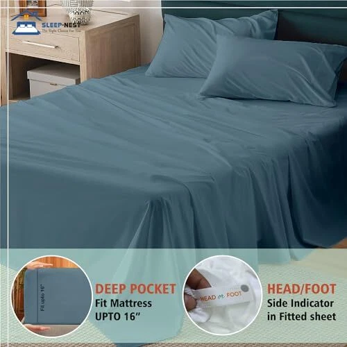 Return Policy Fast Delivery Trusted seller Luxury Queen Sheets Set 4 Piece Comfy Breathable 600 Thread Count 100% Pure Cotton Sheets for Queen 60"x80" Size Bedding Sheet Deep Pockets Fits Mattress Upto 16" Easy-Fit, Medium Blue Product Description This 4 Piece Queen Size Sheet Set includes : A deep pocket with durable elastic all around, A fitted sheet fits mattresses up to 16 inches deep. One flat sheet (90” W x 102” L), one fitted sheet (60” W x 80” L + 16), and two pillowcases (21"W x 32"L) are included in the queen size sheet set. The 4" Z-hem stitch design on the pillowcases and flat sheet, gives you a posh and elegant appearance. Head/Foot Side Indicators & Z Hem Features : Our bottom fitted sheet has an all-round elastic and a "head/foot indicator" for easy bed making. Head/foot side indicators make bed-making a breeze. The 4" Z-hem stitch design on the pillowcases and flat sheet gives you a posh and elegant appearance. Simply Use 100% Cotton Sheets and Say No To Microfiber : The 600 thread count sheets are made from 100% Egyptian pure Long satple cotton fabric. We use only natural and safe dyes. The sheets are unquestionably of superior quality. These Sateen Weave Cotton Sheets have a silky smooth feel, and a comfortable weight that hugs your body. Cool, comfortable and very soft, all while maintaining a bit of crispness. Brand with ISO Certification - Sustainability : Your sheets Set are meticulously inspected to the highest level of comfort and safety. Our fabric satisfies all of the product's high performance requirements. Sustainability is ensured by thorough product inspections and continuous audits. We check every item one by one to make sure it is perfect before packaging. Our ISO certification and Quality Management System are in place. Easy to Wash : Machine wash in cold water. Gentle cycle wash separately. Wash dark color separately. Tumble dry at low. Do not bleach. Needs to be steamed/pressed. Easy to use and fit. Shipping Returns Payment Shipping Shipping is FREE to all addresses other than APO/PO boxes in the lower 48 states. All our stock ships from US-based warehouses. Shipped via USPS or UPS (depending on location and package weight) Unless stated otherwise, all orders will ship within 24-72 hours of your payment being processed. Check our feedback to see the great reviews of FAST shipping we offer. Returns Seller does not accept returns Payment We currently accept payment via eBay managed payments only. Once payment is cleared, we will dispatch your shipment within 1-3 business days. Please refer to the "Shipping" tab for more information regarding shipping speed to your destination.