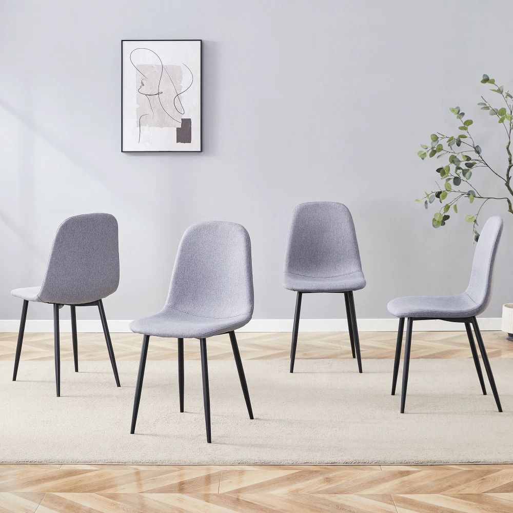 ✨ Key Features That Stand Out Premium Linen-Cotton Upholstery : Light gray linen-cotton fabric offers natural breathability and a soft, luxurious touch. It’s not only comfortable for long seating sessions but also easy to clean and maintain—keeping your chairs looking fresh for years. Sturdy Integrated Metal Legs : Full integrated metal leg structure (no excessive splicing) ensures maximum stability and durability. The sleek black metallic finish adds a touch of sophistication and creates a striking contrast with the light gray upholstery. Reinforced Stability Design : One-piece backrest and seat cushion for a smooth, minimalist look while enhancing structural stability. Cross-reinforced under-seat structure boosts load-bearing capacity, making each chair sturdy and reliable. Adjustable Anti-Slip Feet : Equipped with adjustable anti-slip foot pads to keep chairs stable on any floor surface—preventing scratches and ensuring safety for your family and floors. Versatile Style : Timeless light gray and black color combination complements modern, contemporary, industrial, or even traditional decor. Perfect for dining rooms, kitchens, breakfast nooks, or even as extra seating in living areas. Easy 15-20 Minute Assembly : Each chair comes with a detailed instruction manual and all necessary hardware. No professional tools needed—most people can assemble a chair in just 15-20 minutes. Eco-Friendly & Healthy : Natural linen-cotton material is non-toxic and eco-friendly, providing a healthy seating environment for your family. 📐 Product Specifications Specification Details Assembled Dimensions (L x W x H) 17.00" x 15.30" x 34.50" Individual Chair Weight 8.38 lbs Package Dimensions (L x W x H) 29.53" x 25.20" x 18.70" Package Weight 44.09 lbs Color Options Black, Light Gray Material Linen-Cotton Upholstery, Metal Legs 🛡️ Our Commitment to You 1 YEAR QUALITY WARRANTY: We stand behind the quality of our chairs. Enjoy a 1-year warranty against manufacturing defects. 30-DAY FREE RETURN & EXCHANGE: Not satisfied with your purchase? Return or exchange it for free within 30 days—no questions asked! 📝 Important Note Due to differences in monitor displays and lighting conditions, the actual color of the product may slightly differ from the images shown. This is a normal phenomenon and not a quality defect. Transform your space with chairs that combine style, comfort, and durability—backed by our unbeatable after-sales service. Add to cart today and experience the difference!