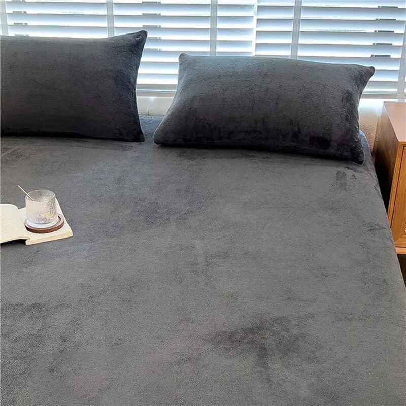 This plush fitted sheet is a game-changer for cold nights! The ultra-soft coral fleece feels luxurious against the skin and stays perfectly in place thanks to the deep elastic edges. It transforms my bed into a cozy winter retreat while protecting the mattress—so warm I don’t even need extra blankets. The quality is impressive for the price, and the rich color adds a touch of elegance. Washes well without losing softness. Perfect upgrade from regular sheets!